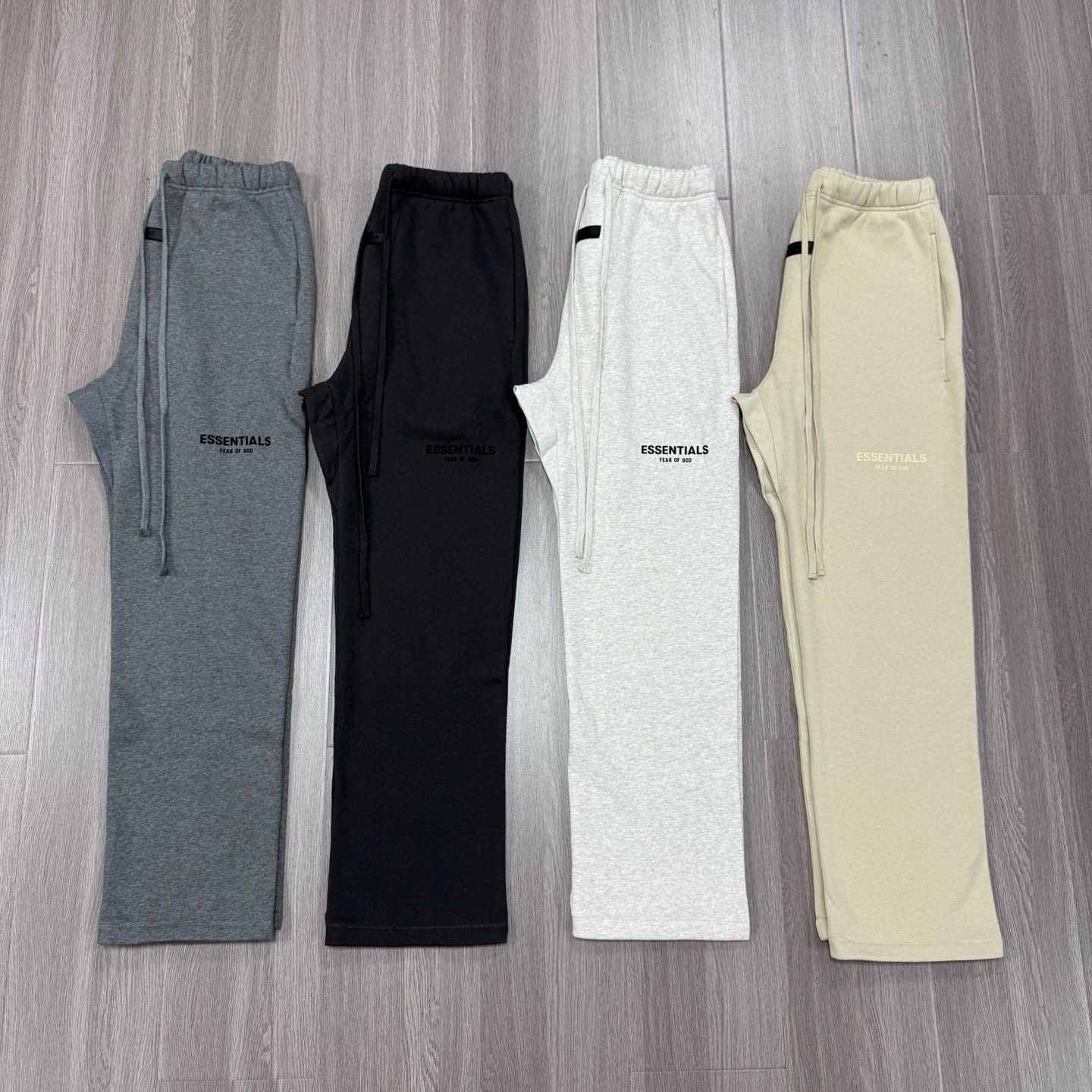 Essentials Czfog Double-Row Flocked Logo Pants Autumn and Winter Fleece-Lined Couple's Straight-Leg Casual Sweatpants for Men