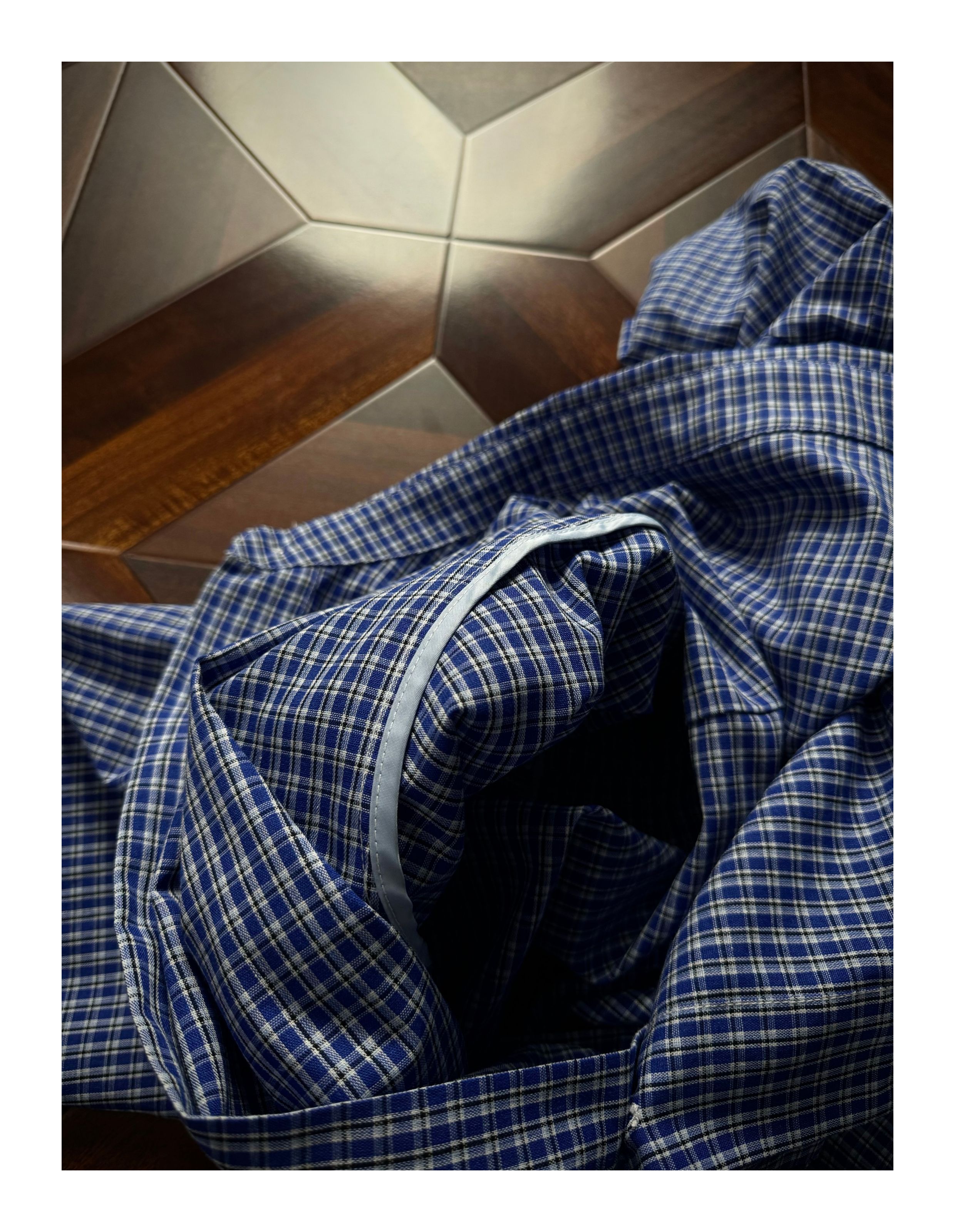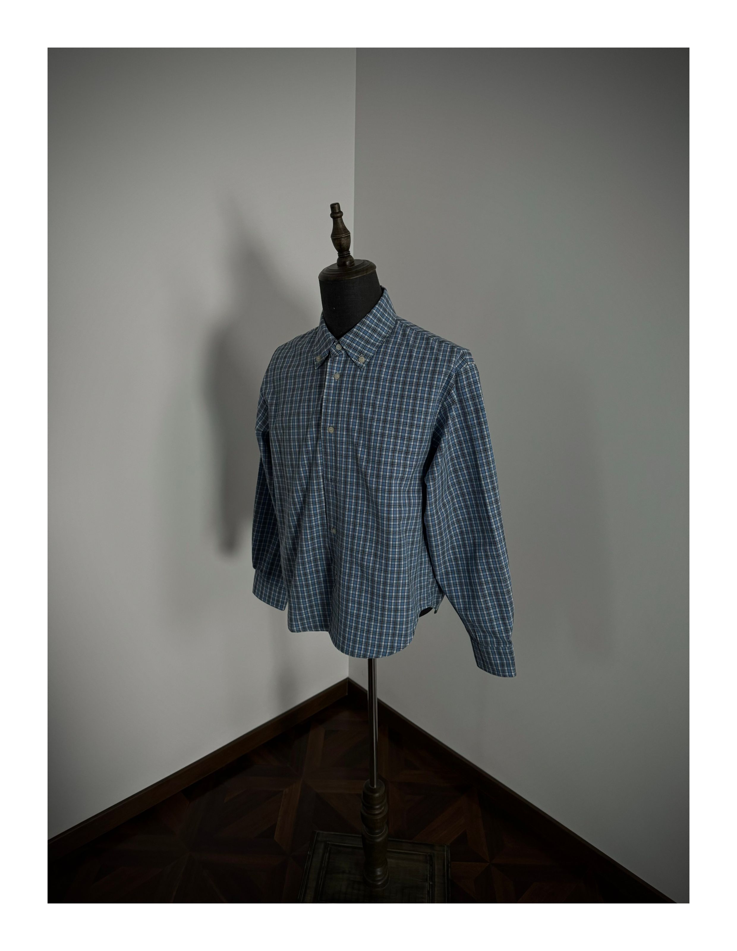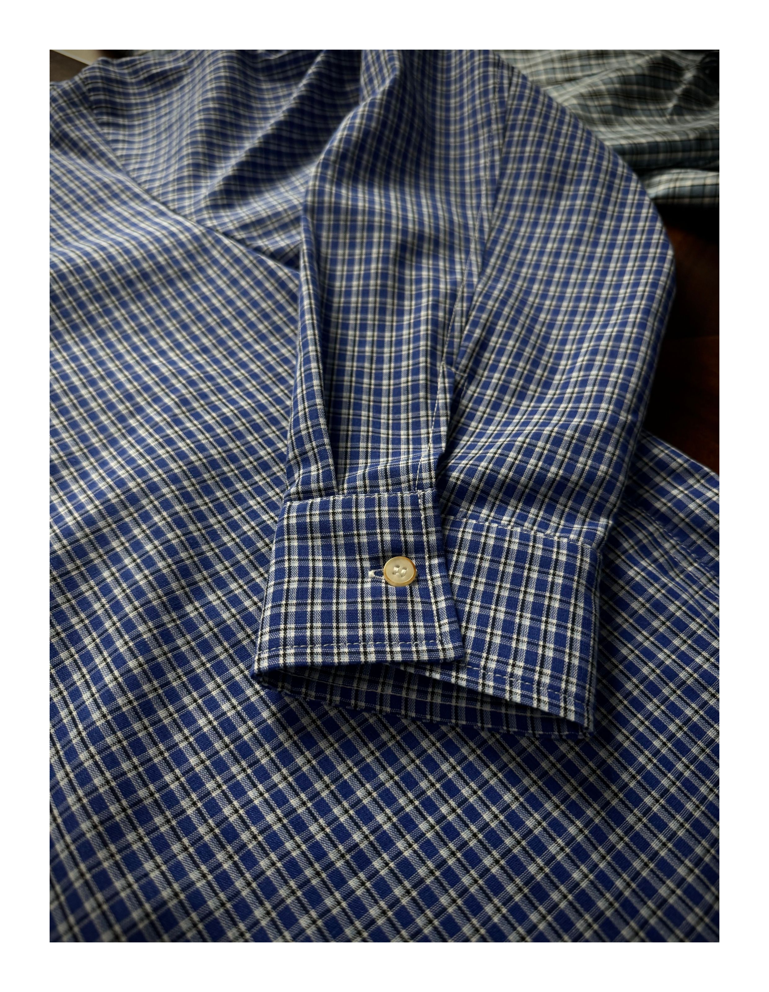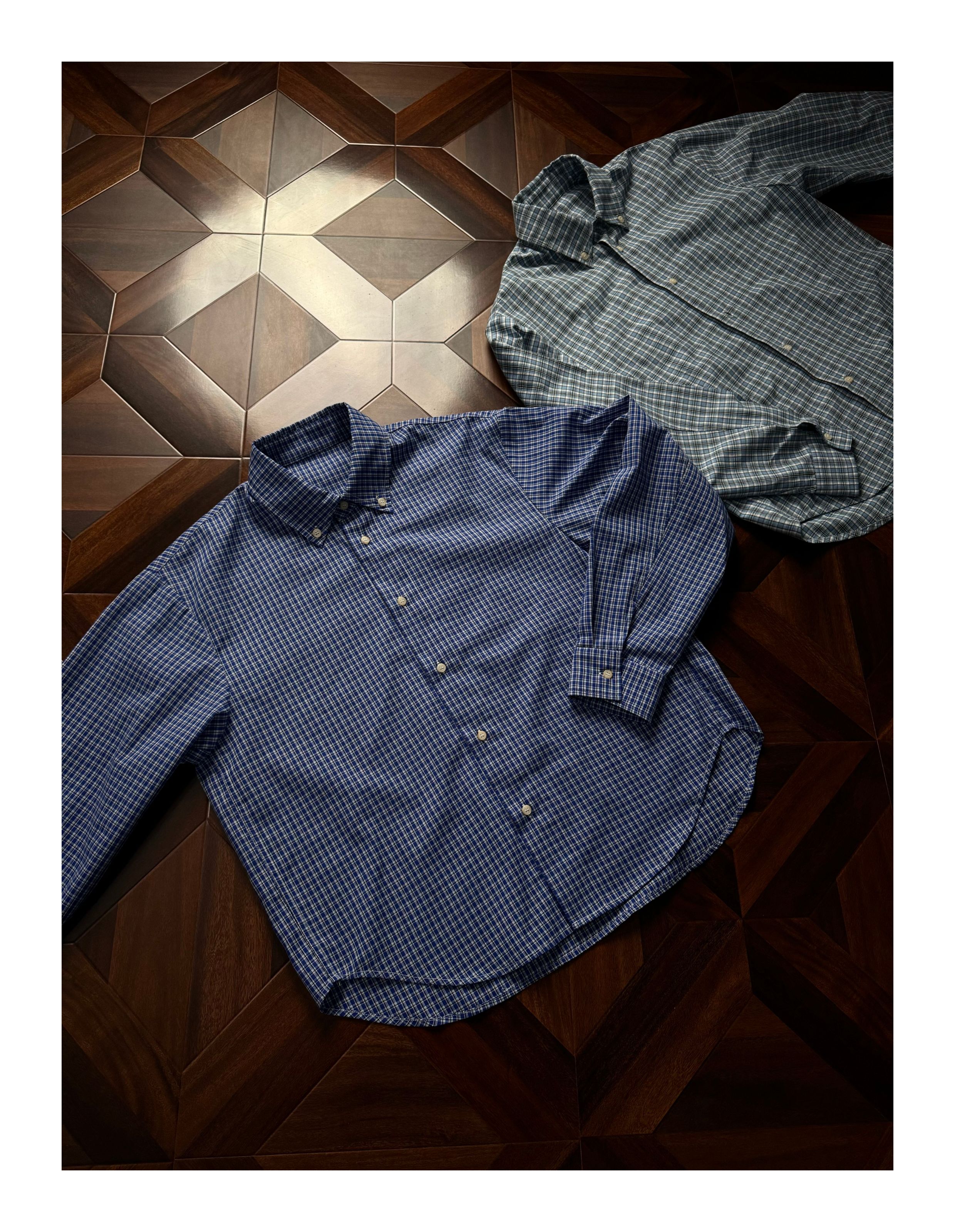 Oclin Dark Blue Plaid Miu-Style Basic Shirt, Slightly Oversized Short Wide Fit, Suitable for Layering or Wearing Alone, Commuter Style, with Button Closure
