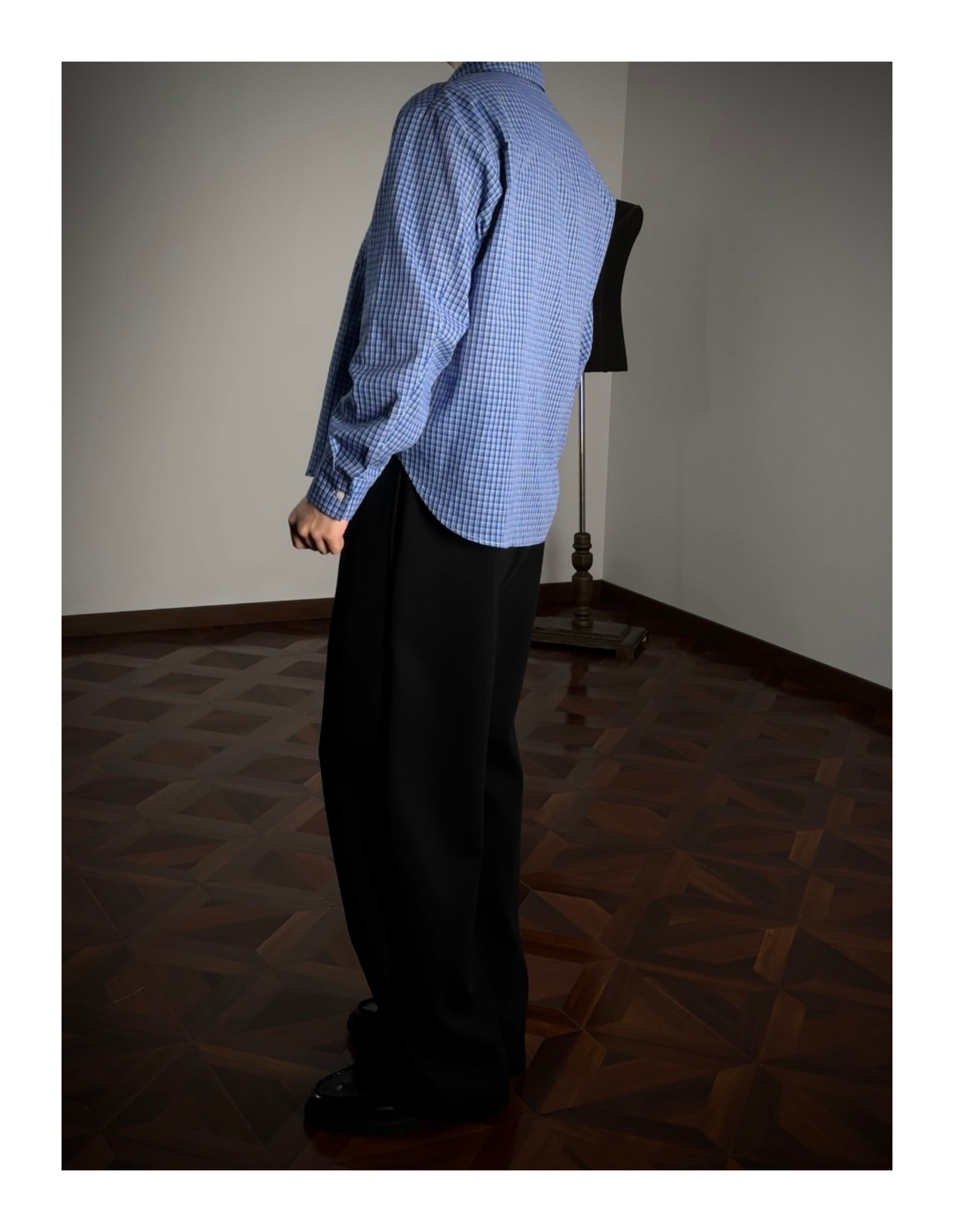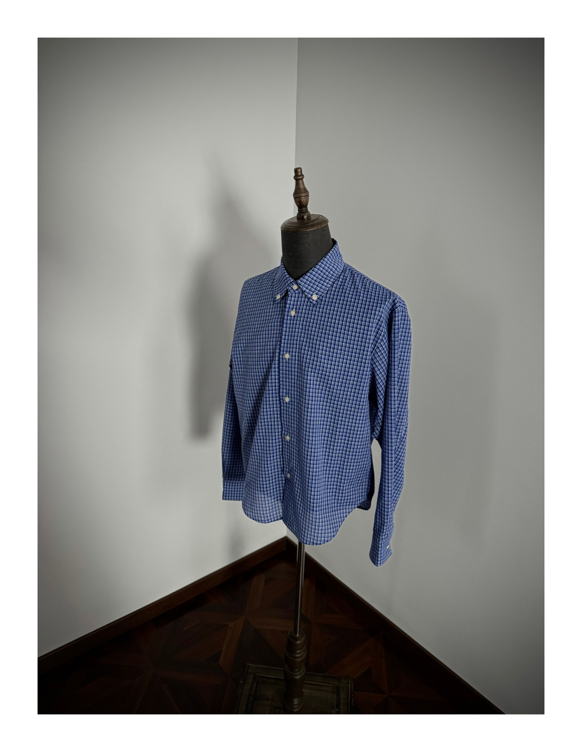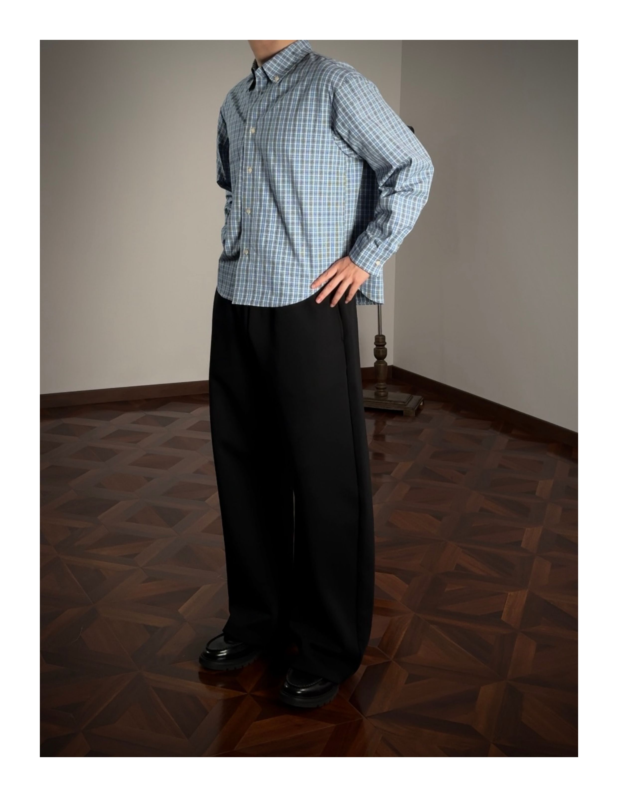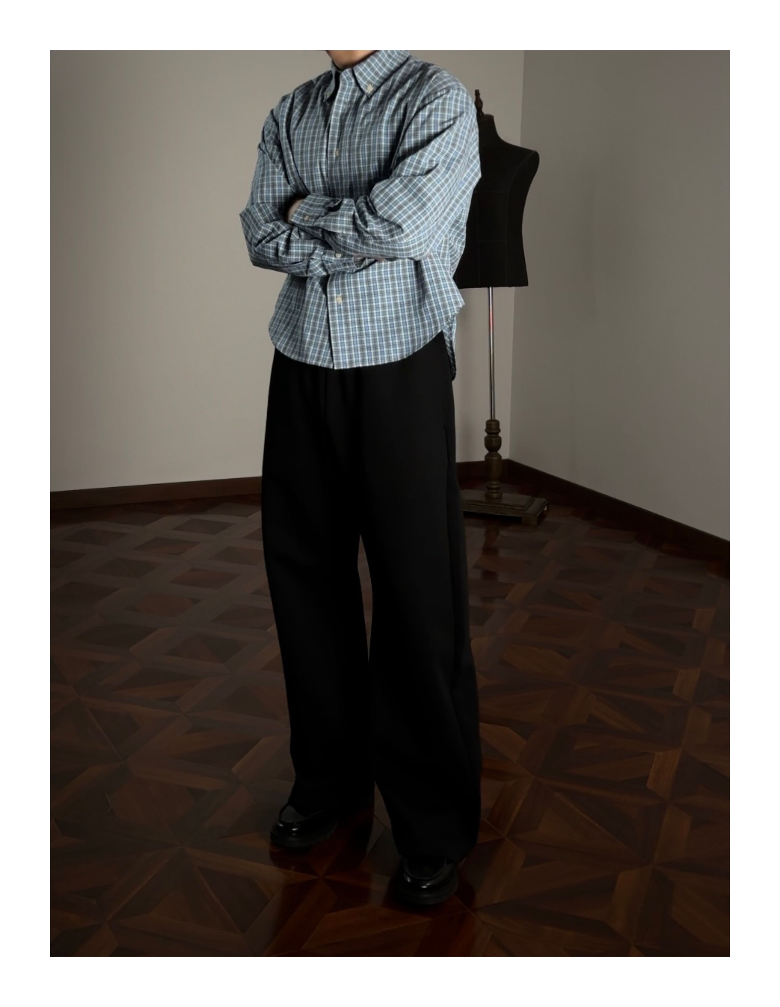 Oclin Dark Blue Plaid Miu-Style Basic Shirt, Slightly Oversized Short Wide Fit, Suitable for Layering or Wearing Alone, Commuter Style, with Button Closure
