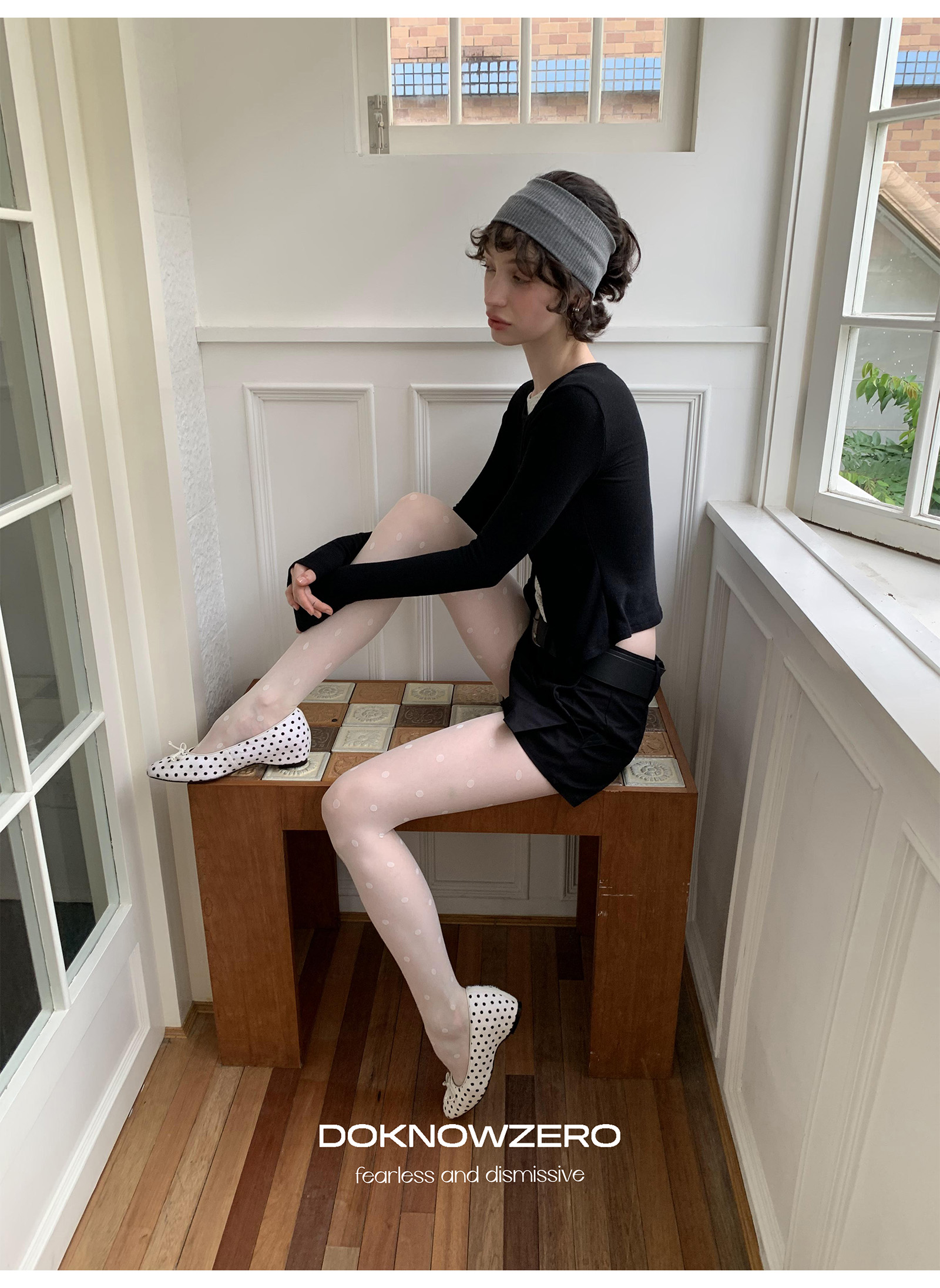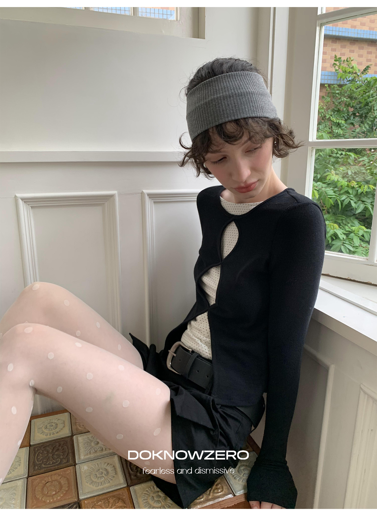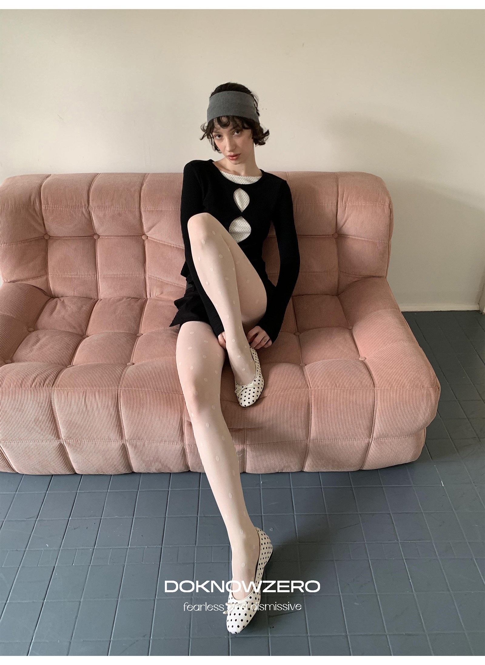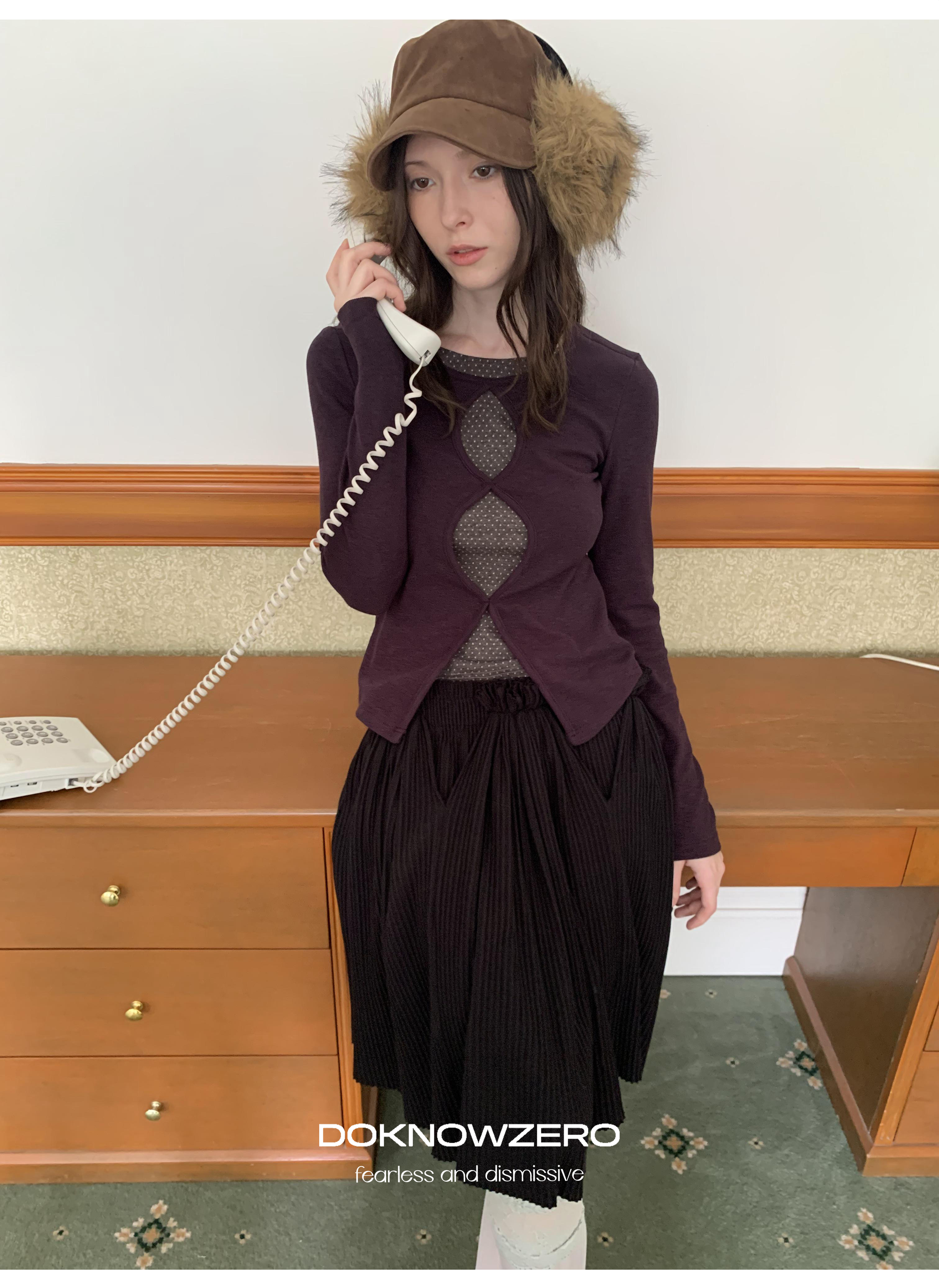 Dkz Fake Two-Piece Hollow-Out Polka Dot Long-Sleeve T-Shirt for Women, New Autumn Slim-Fit Knit Top