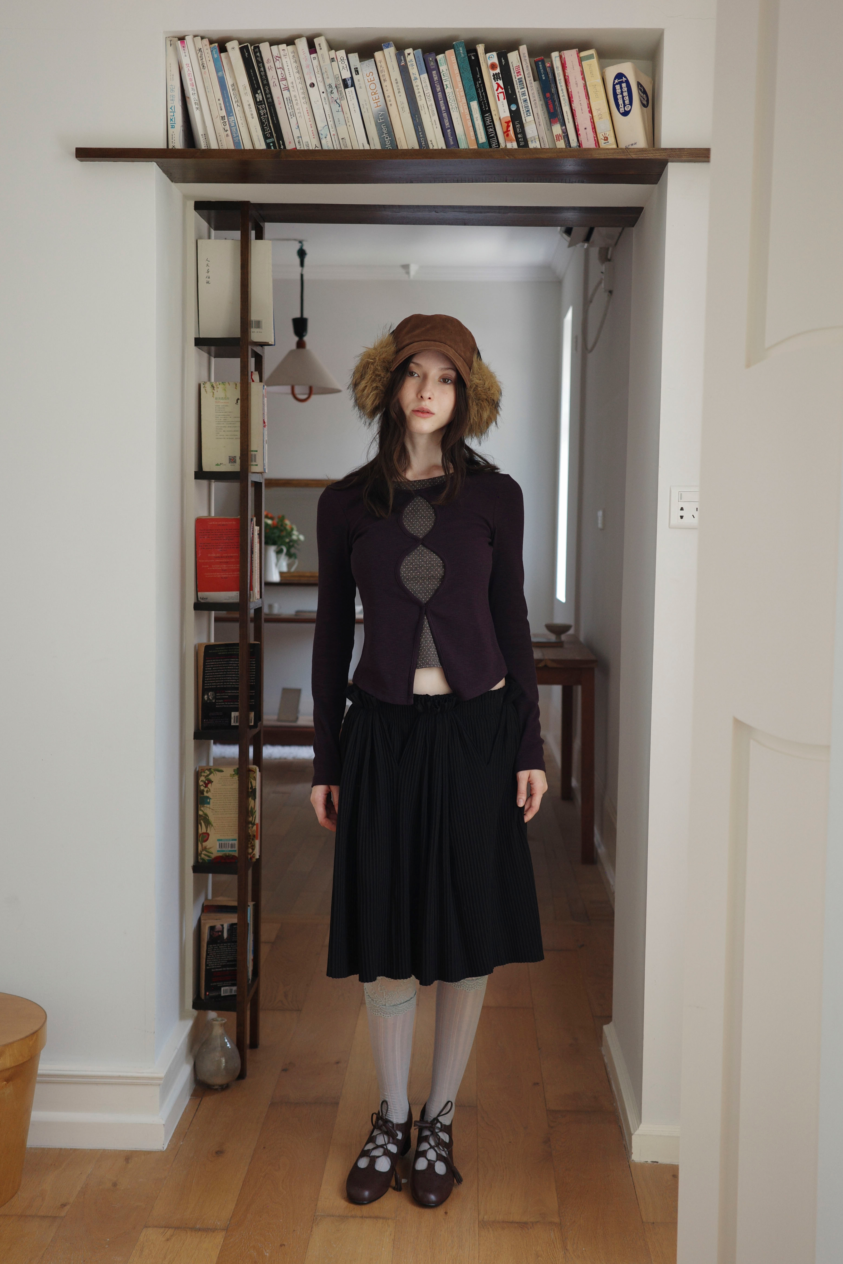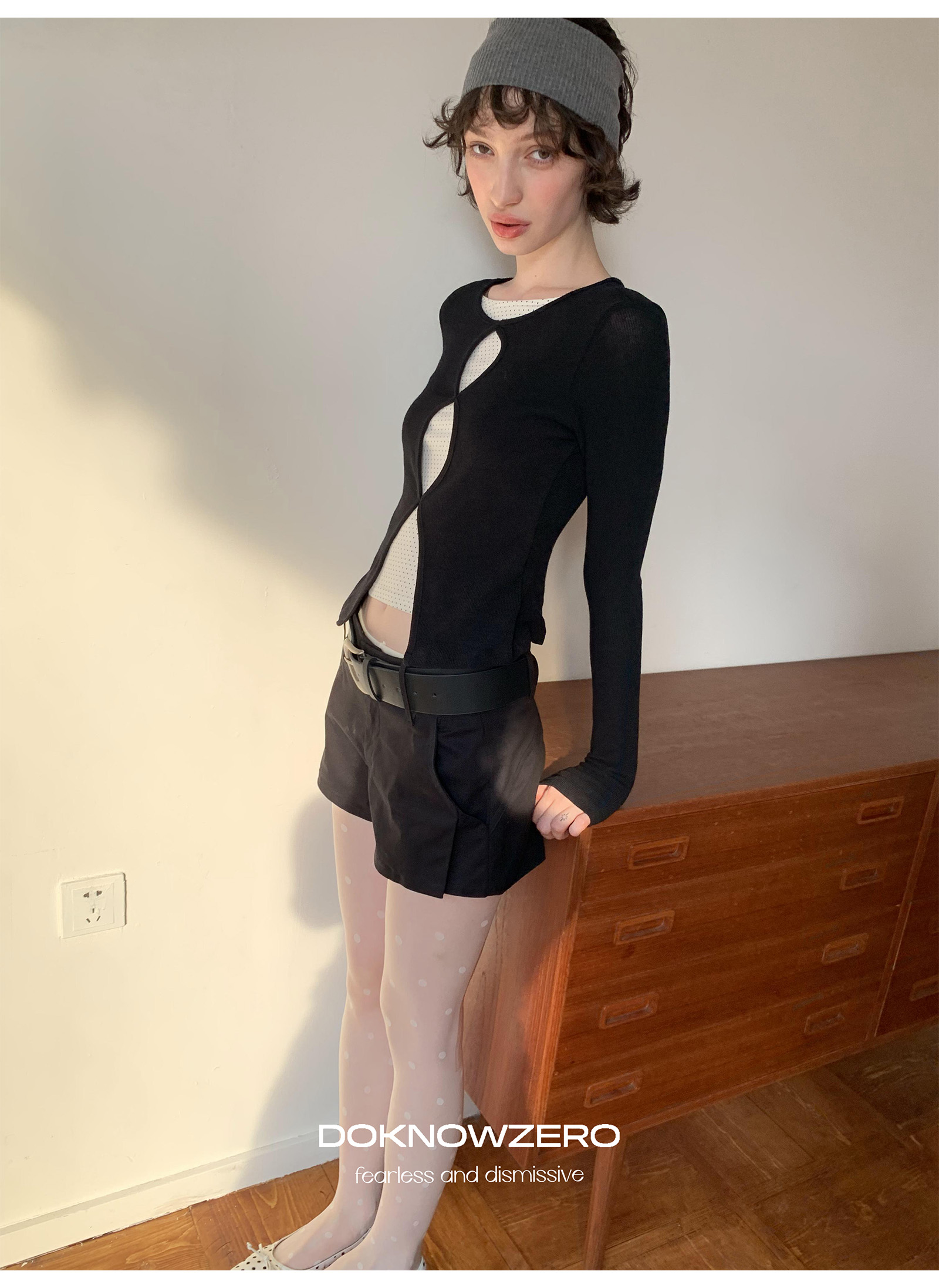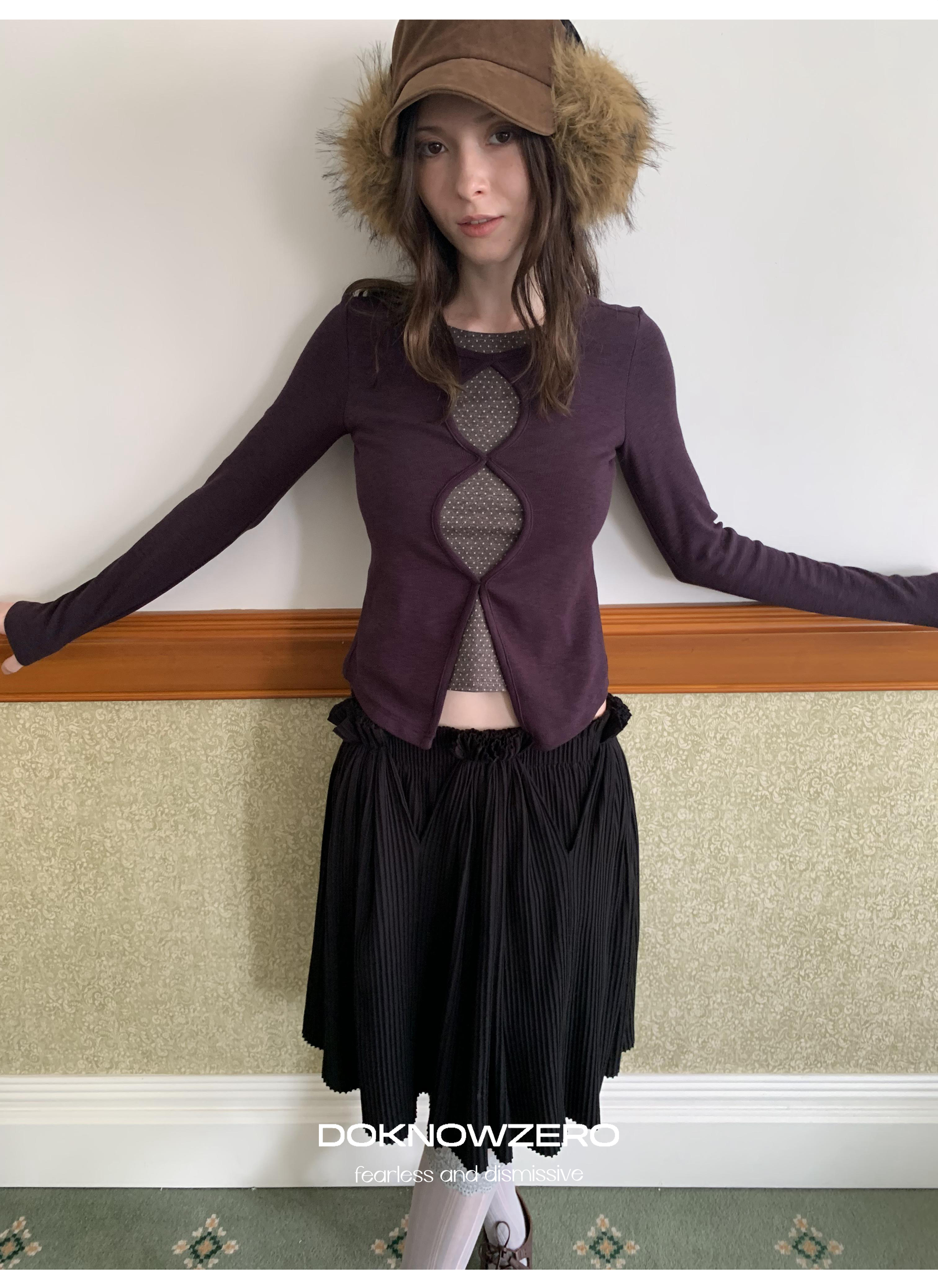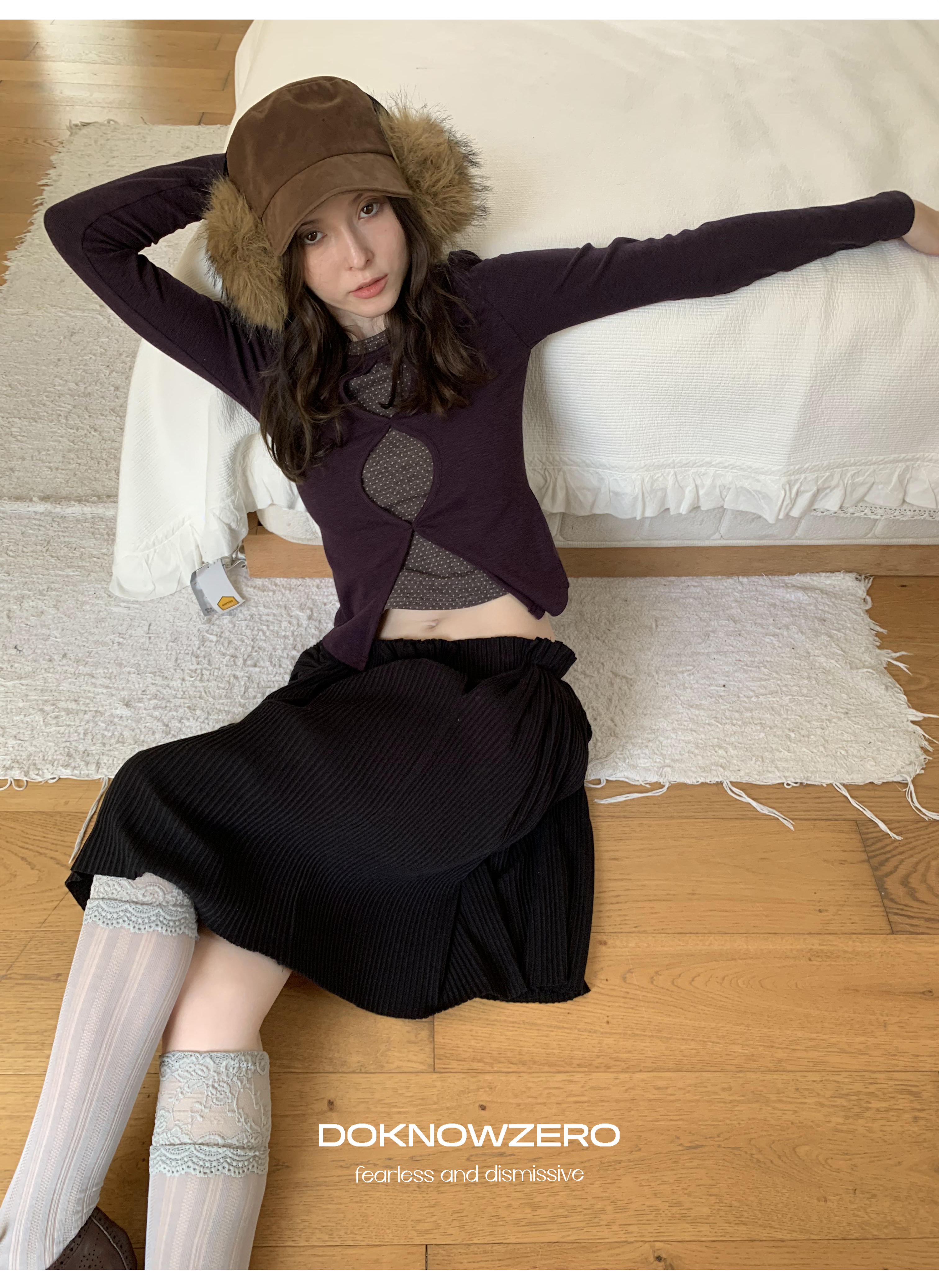 Dkz Fake Two-Piece Hollow-Out Polka Dot Long-Sleeve T-Shirt for Women, New Autumn Slim-Fit Knit Top