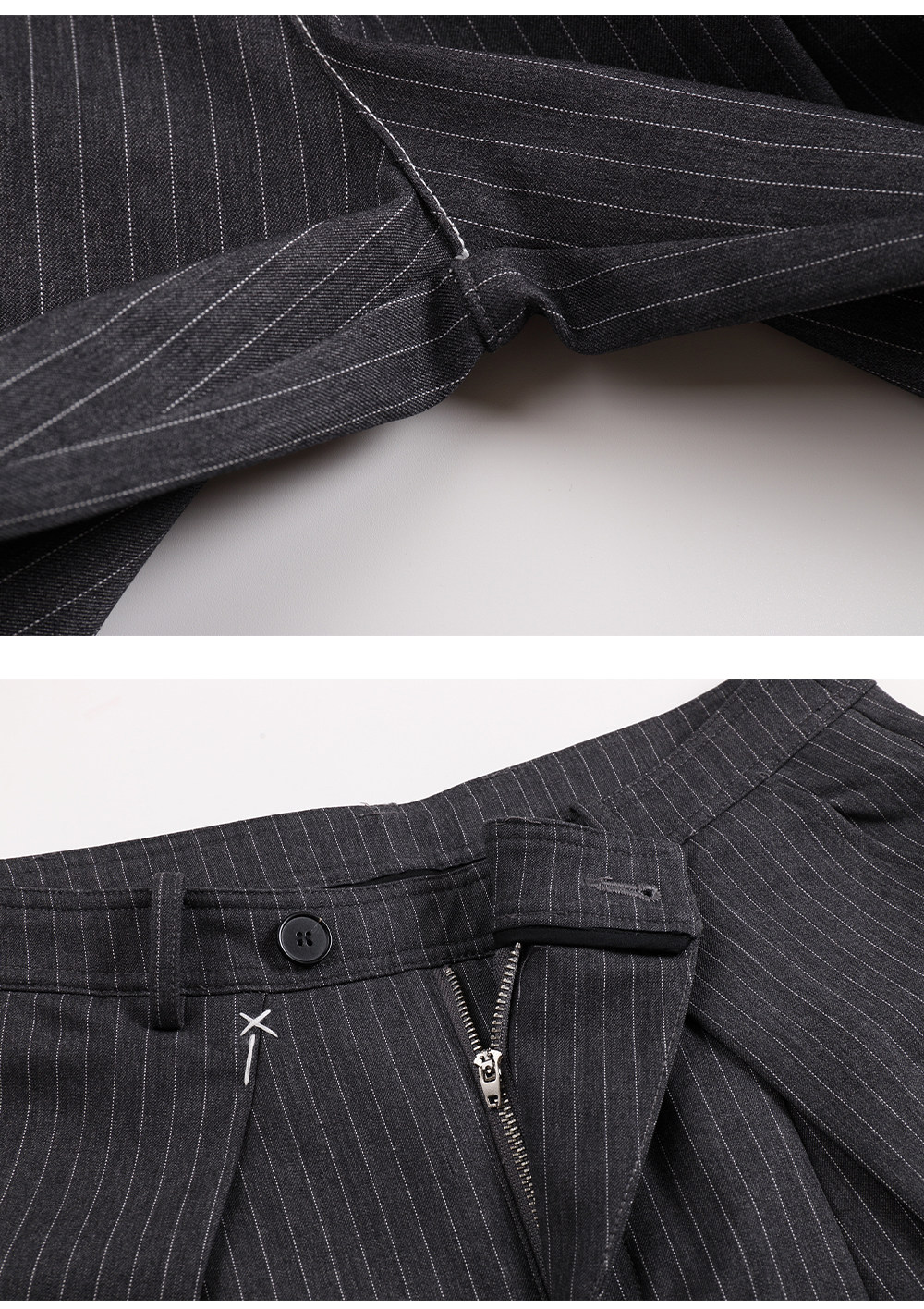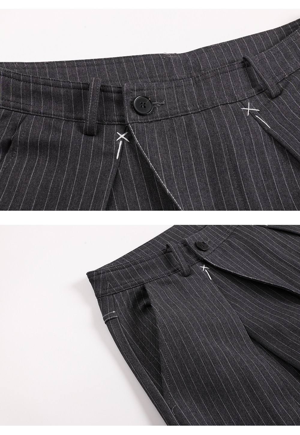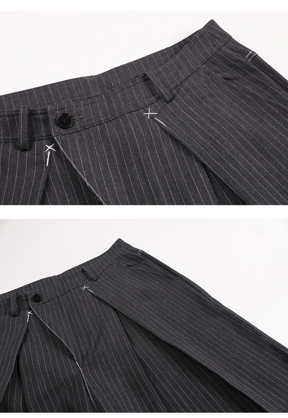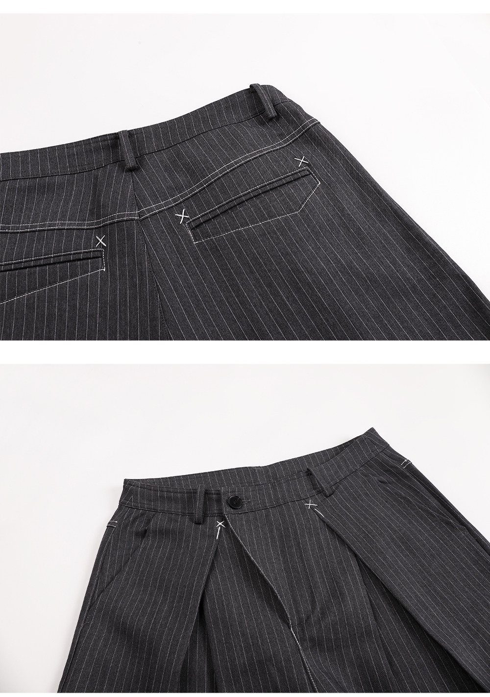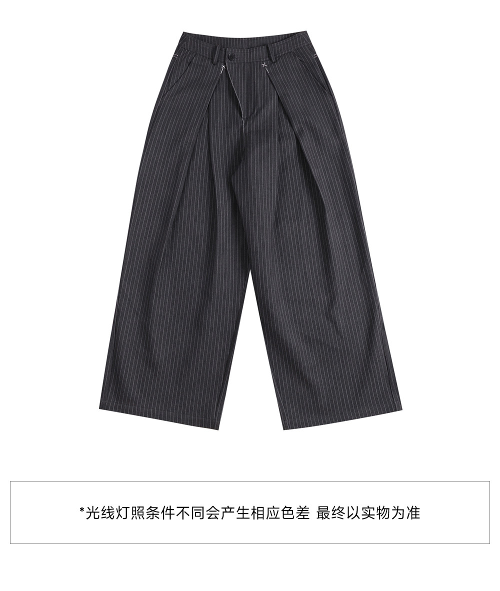 Mat Jenin Diagonal Placket Blended Loose-Fitting A-Line Wide-Leg Striped Trousers Casual Long Pants