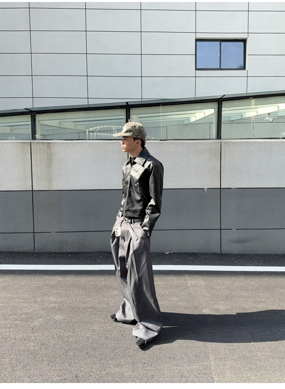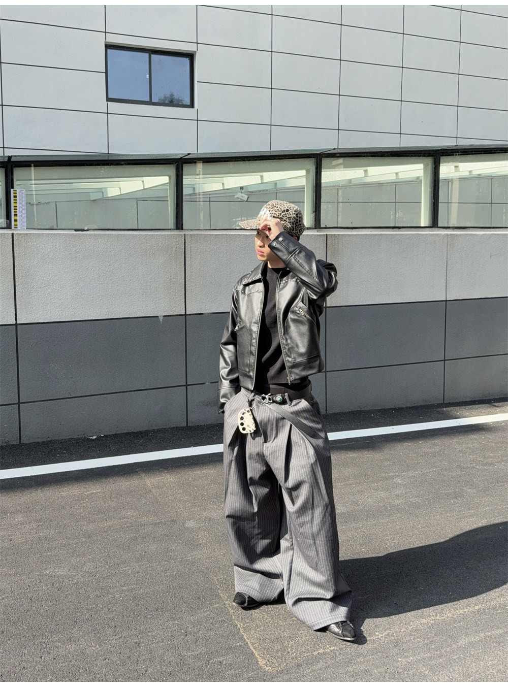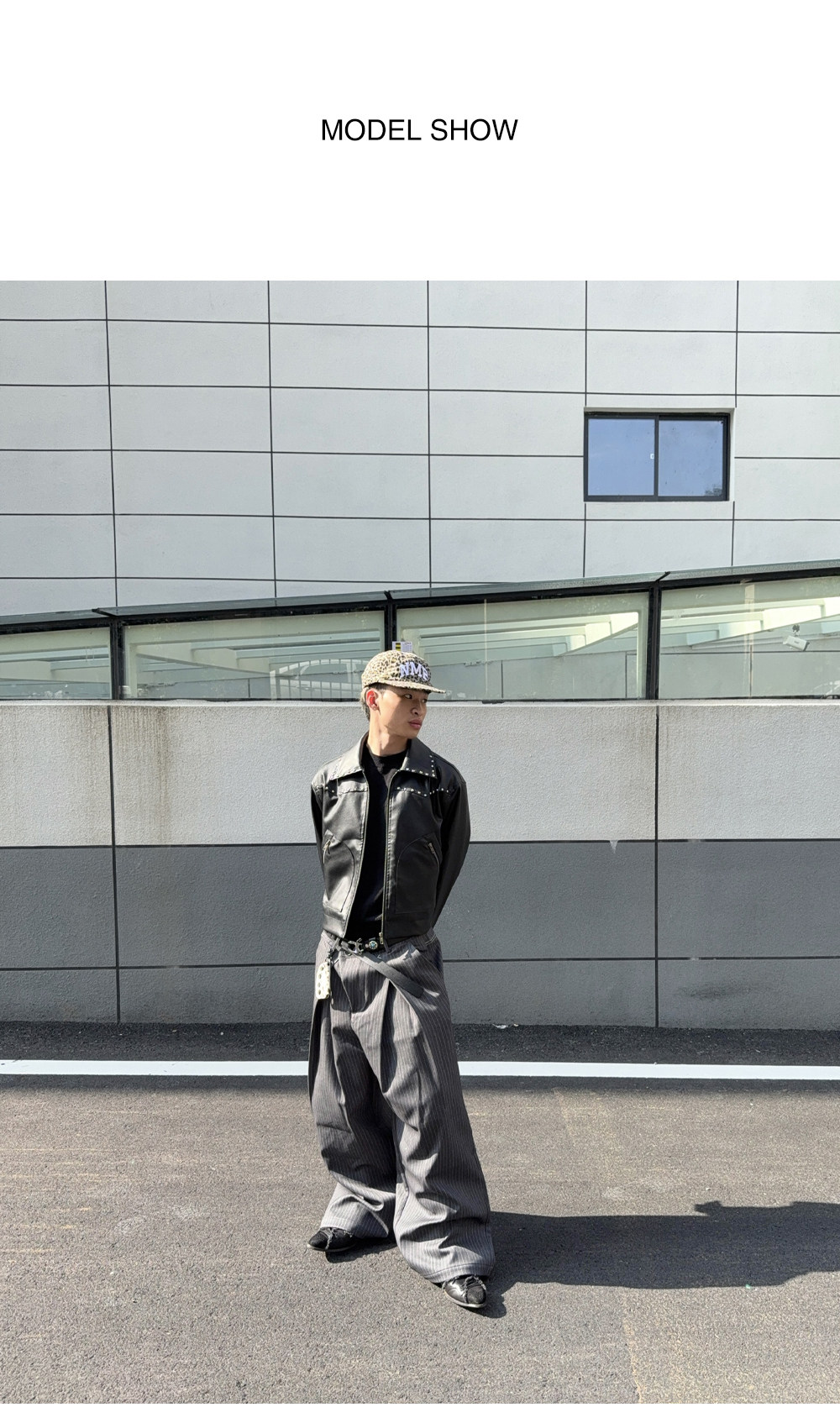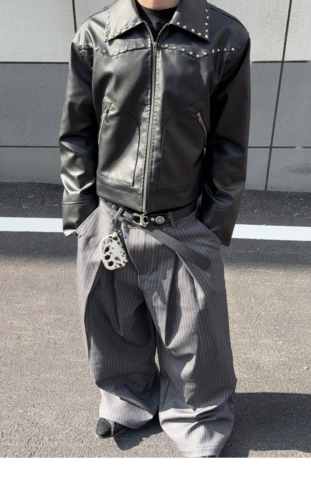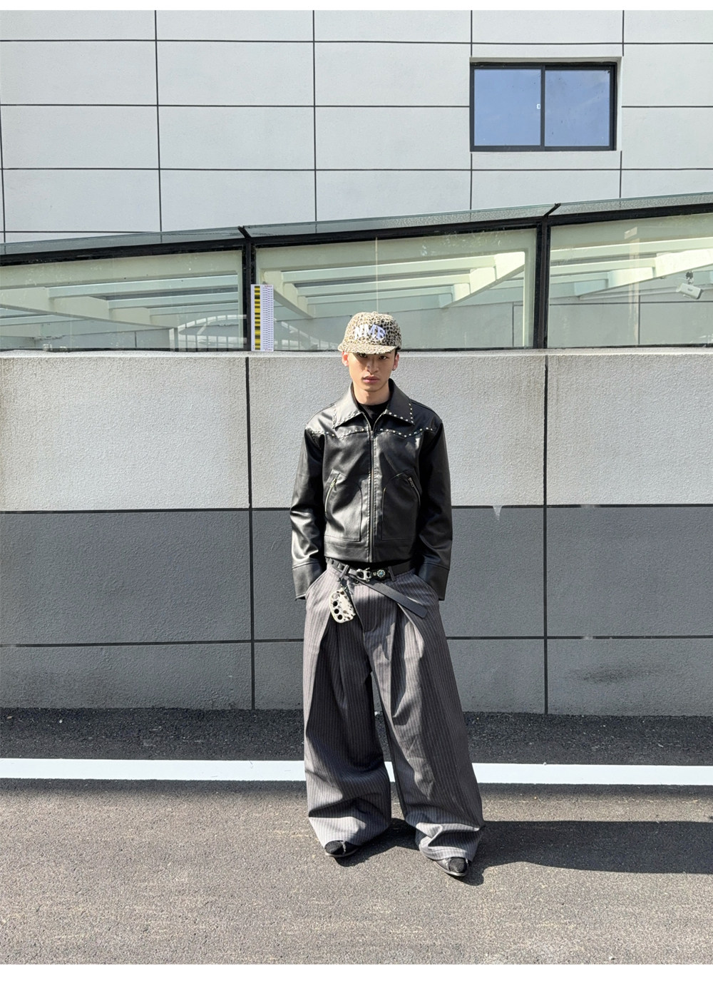 Mat Jenin Diagonal Placket Blended Loose-Fitting A-Line Wide-Leg Striped Trousers Casual Long Pants