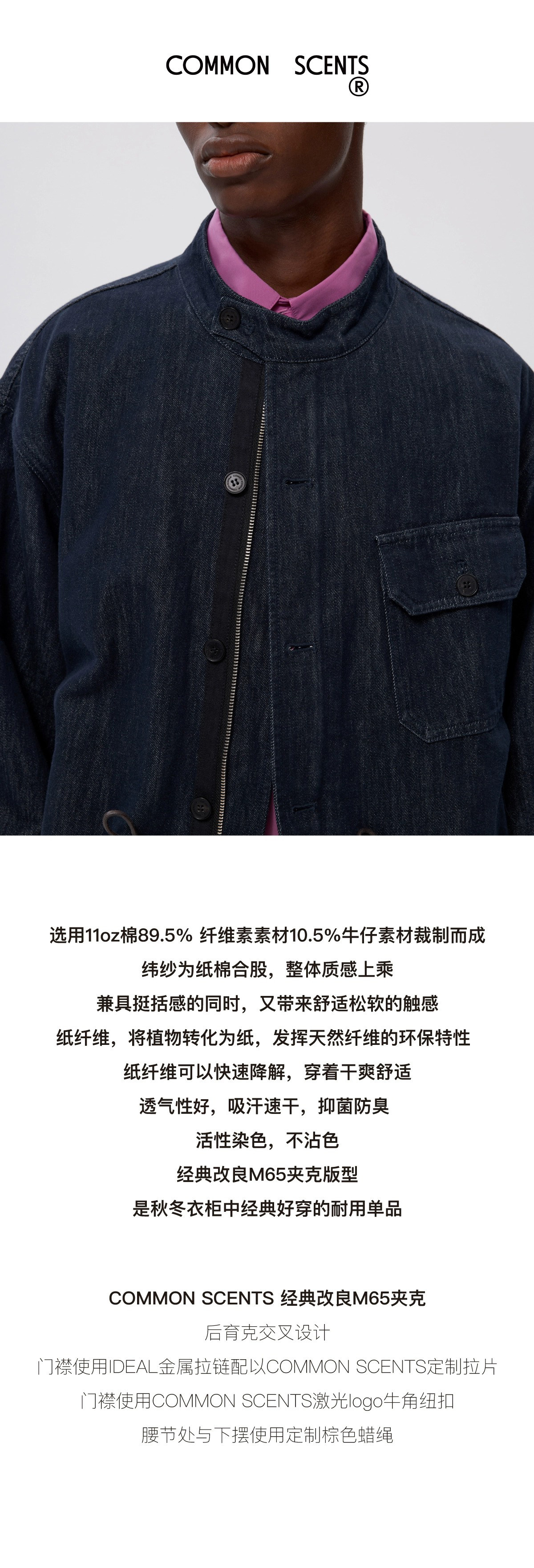 Common Scents Paper Yarn Blended Raw Denim Active Color-Fixing 11oz Modified M65 Jacket