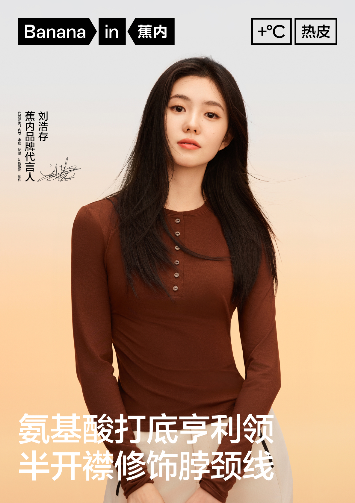 [Same Style as Liu Hao Cun] Jiao Nei Hot Leather 301+ Amino Acid Henley Collar Base Layer T-Shirt Women's Undershirt