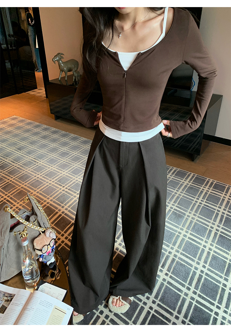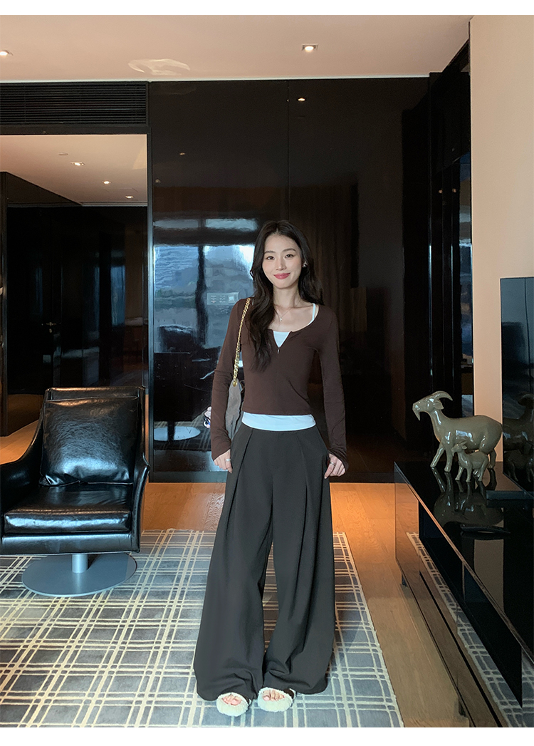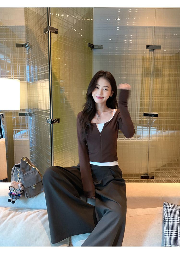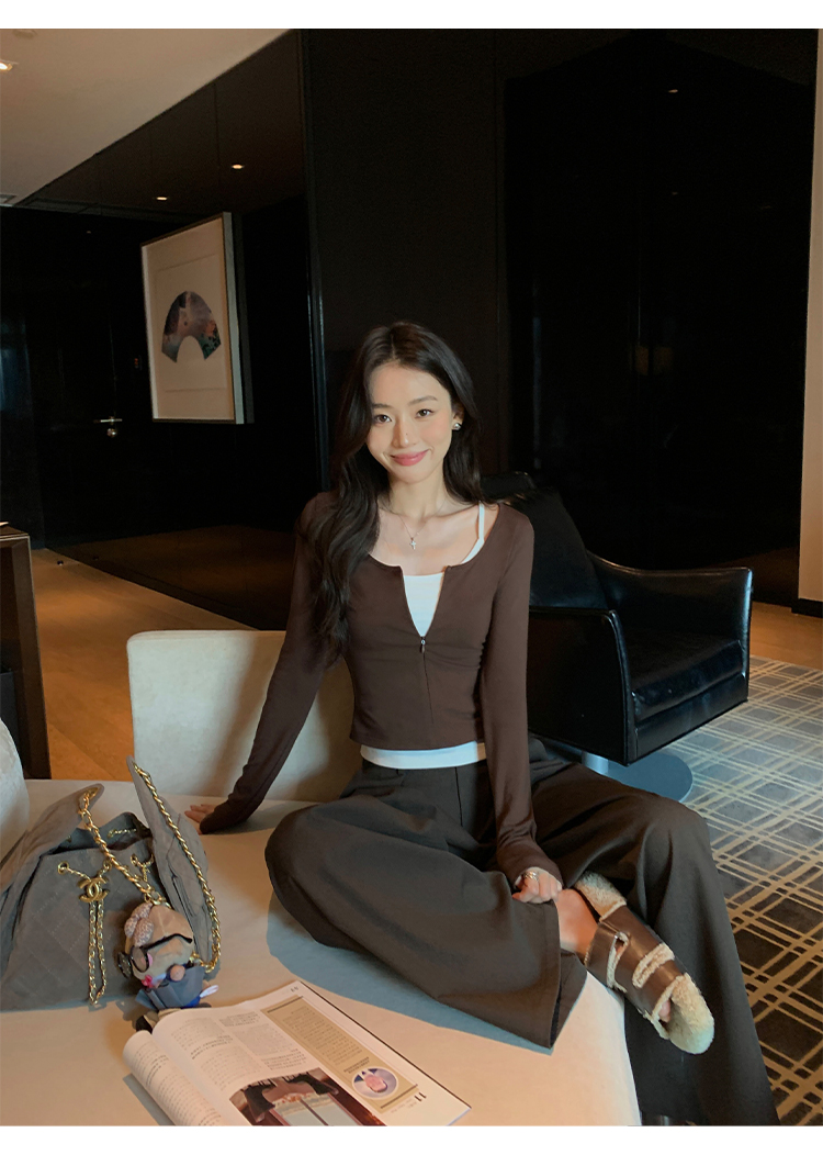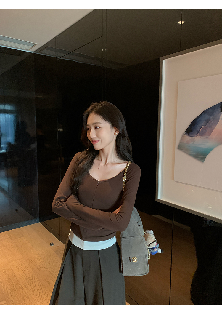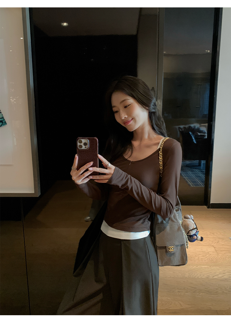Pusumede Layering Formula Two-Piece Set Slim-Fit Long-Sleeve T-Shirt for Women with a Stylish Design and Layered Knit Shoulder Top