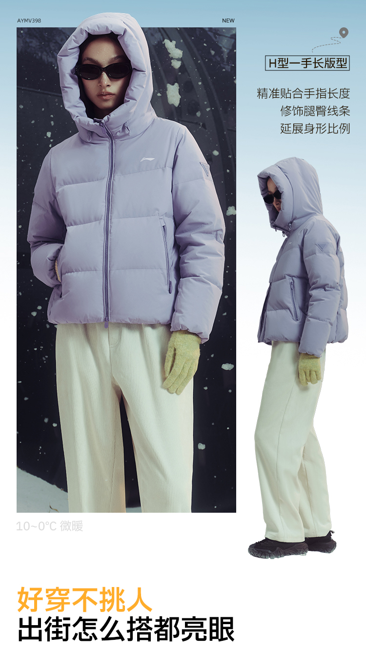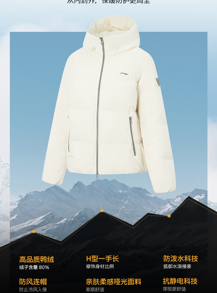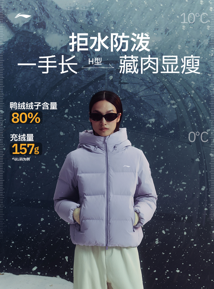 Li-Ning Hot Pot down Jacket | Women's Winter New Hooded Short Top Duck down Cotton Jacket Women's Warm Sports Coat