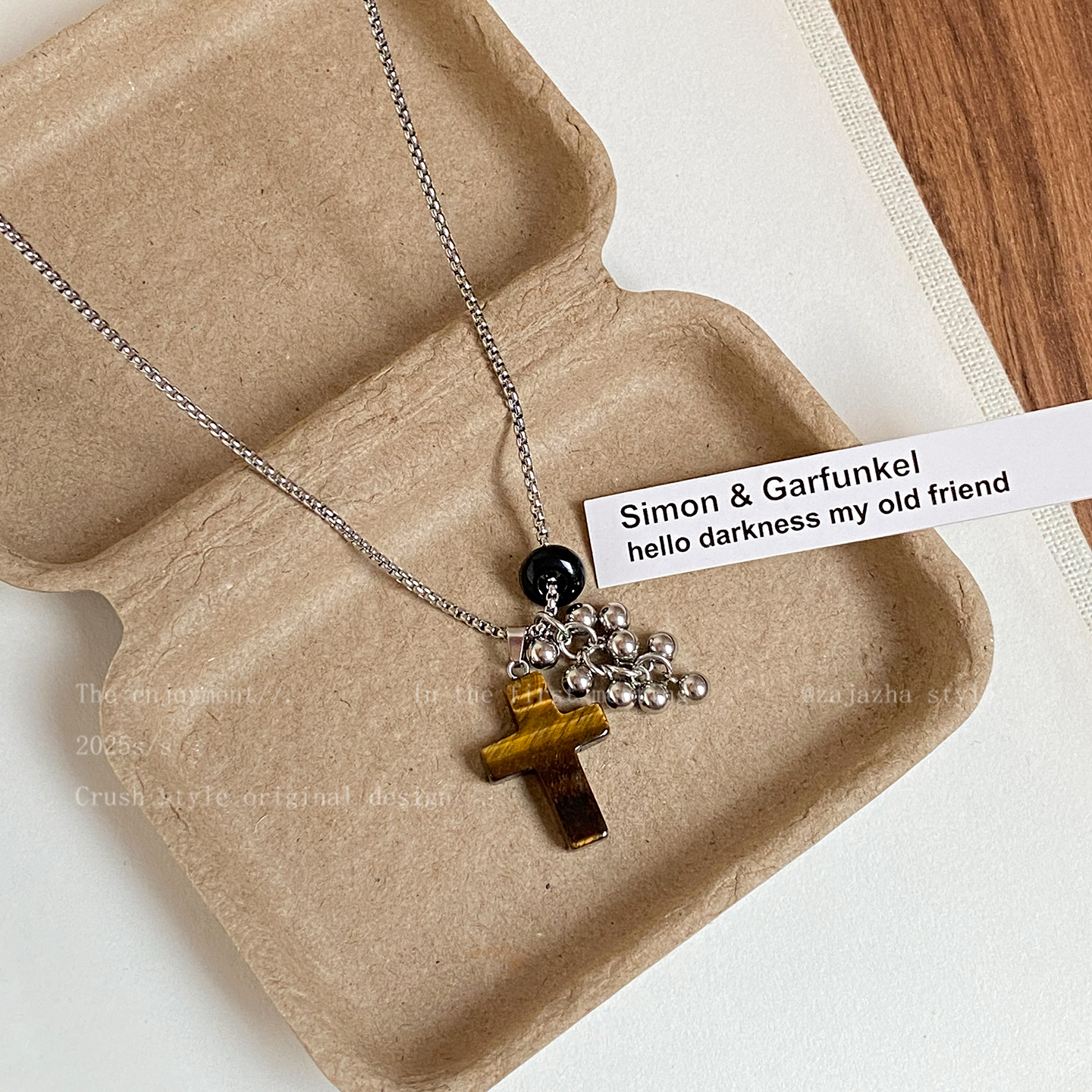 Tiger's Eye Stone Flower Heart Pull-Out Necklace for Women, High-End Niche Long Sweater Chain, Versatile Everyday Retro Accessory