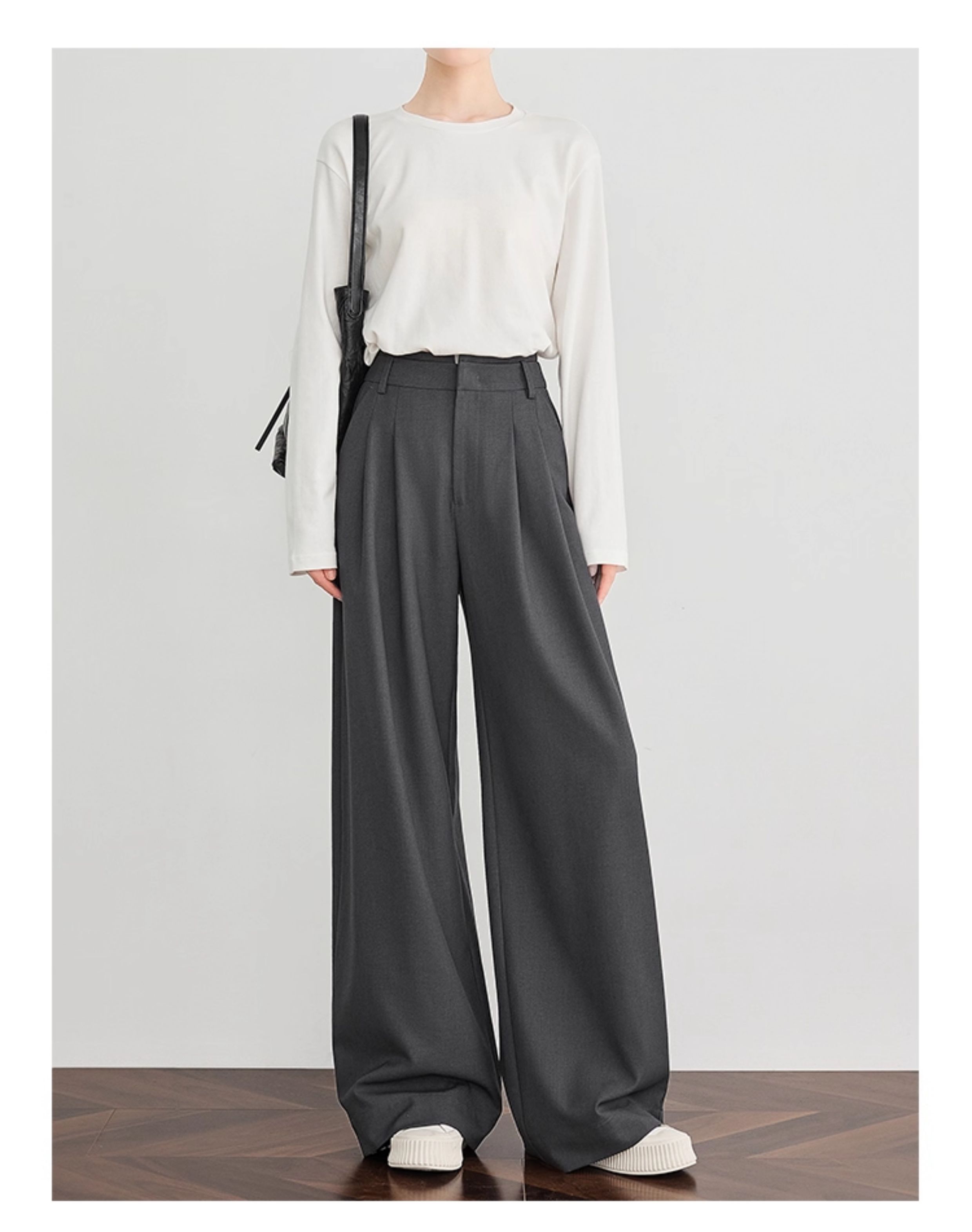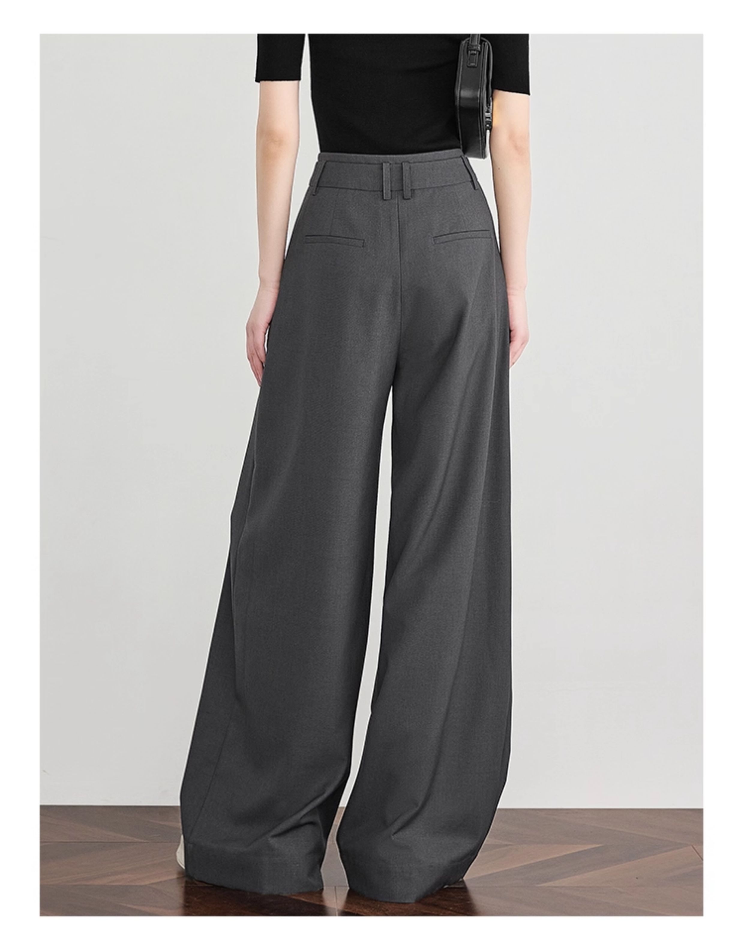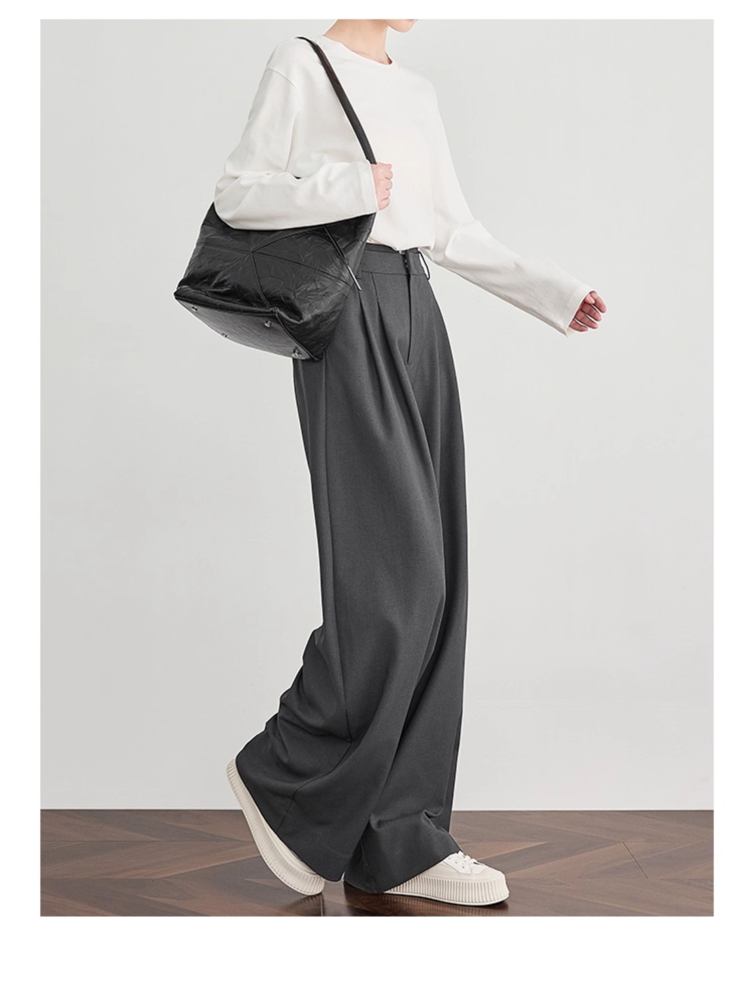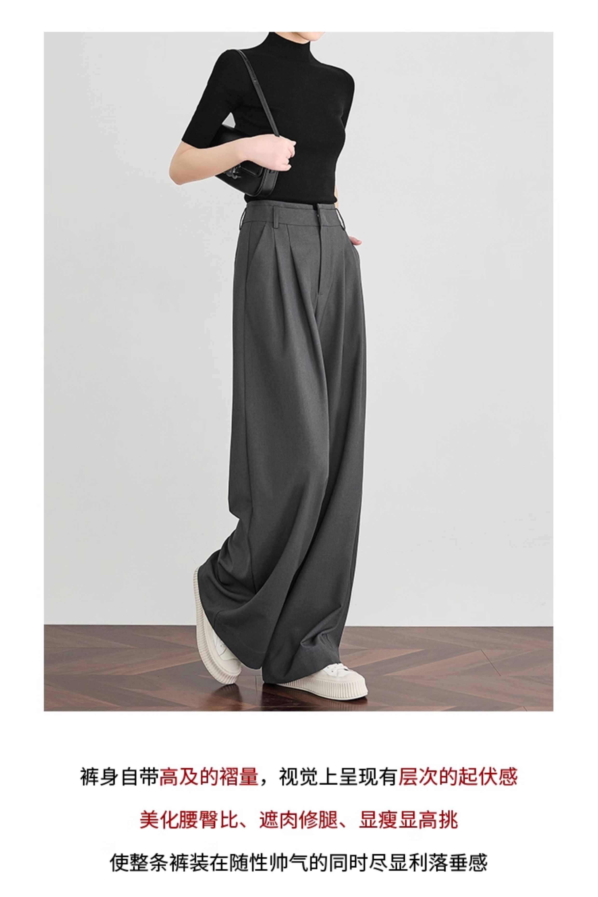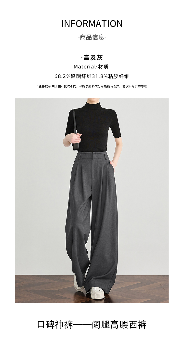 Faesslin【Tall-Enhancing Pants】High-End Gray Suit Wide-Leg Pants for Women, New Spring and Autumn Style, Extra-Long Floor-Length Pants