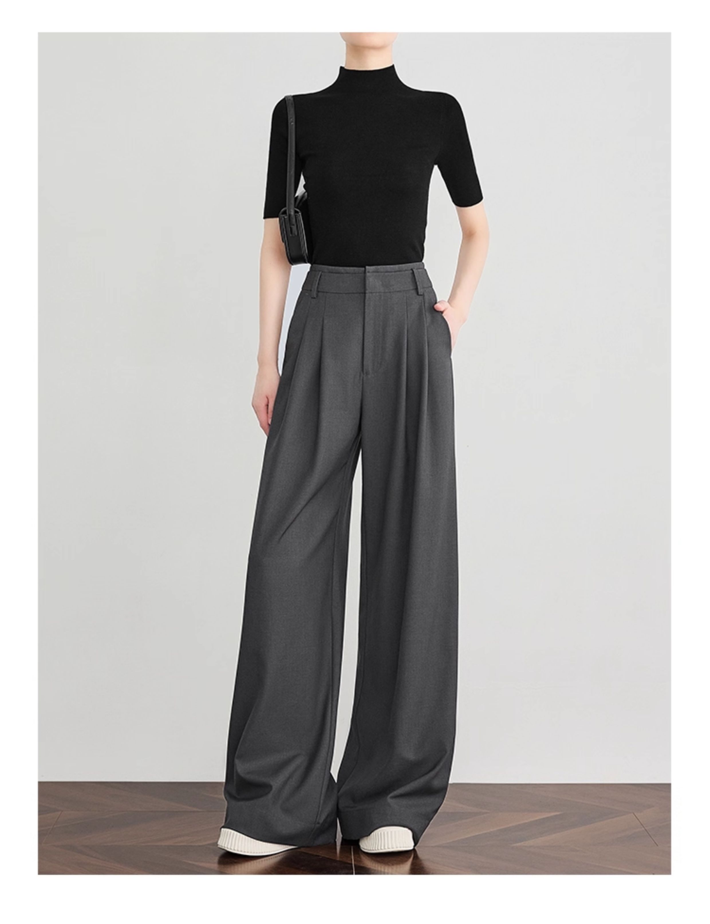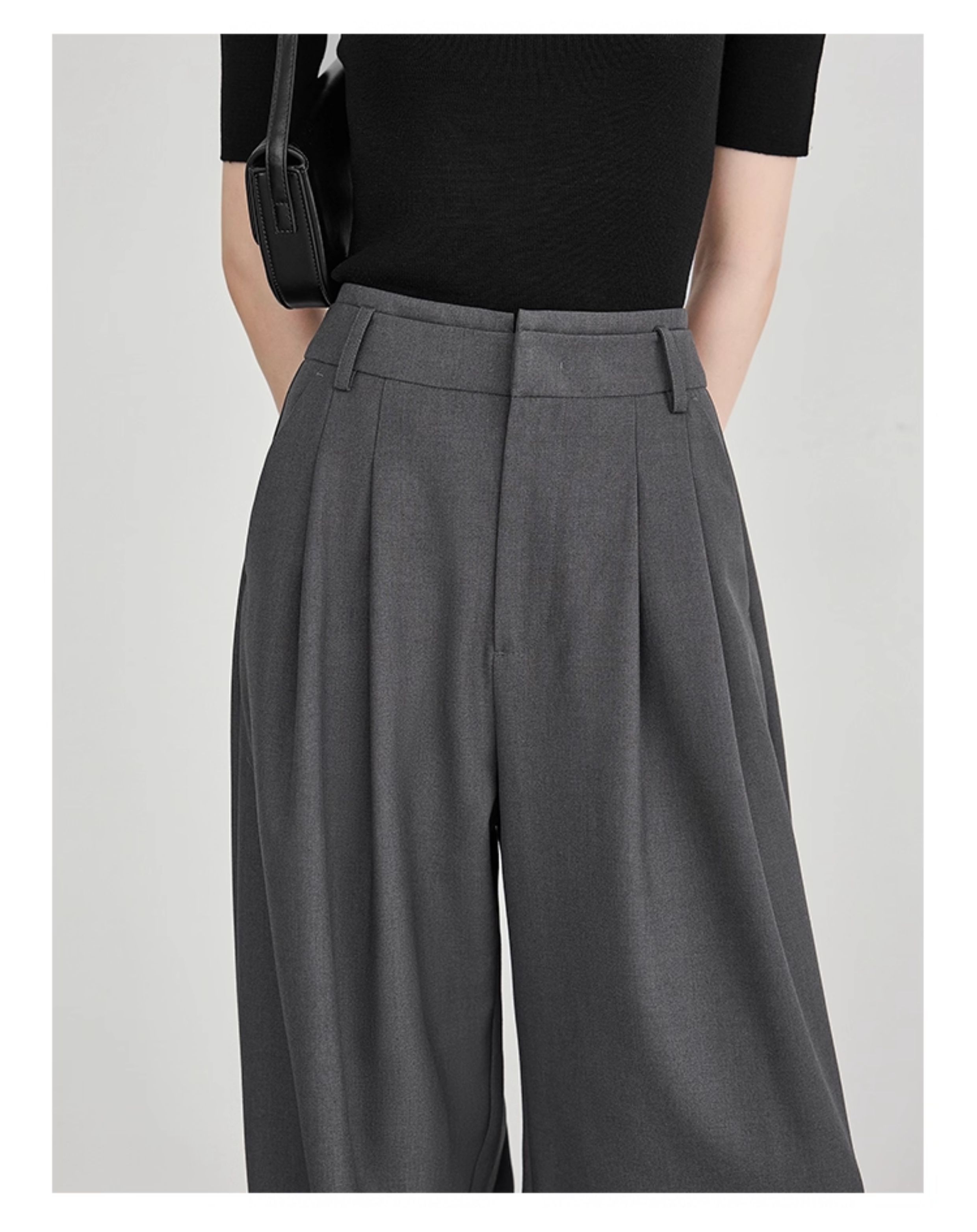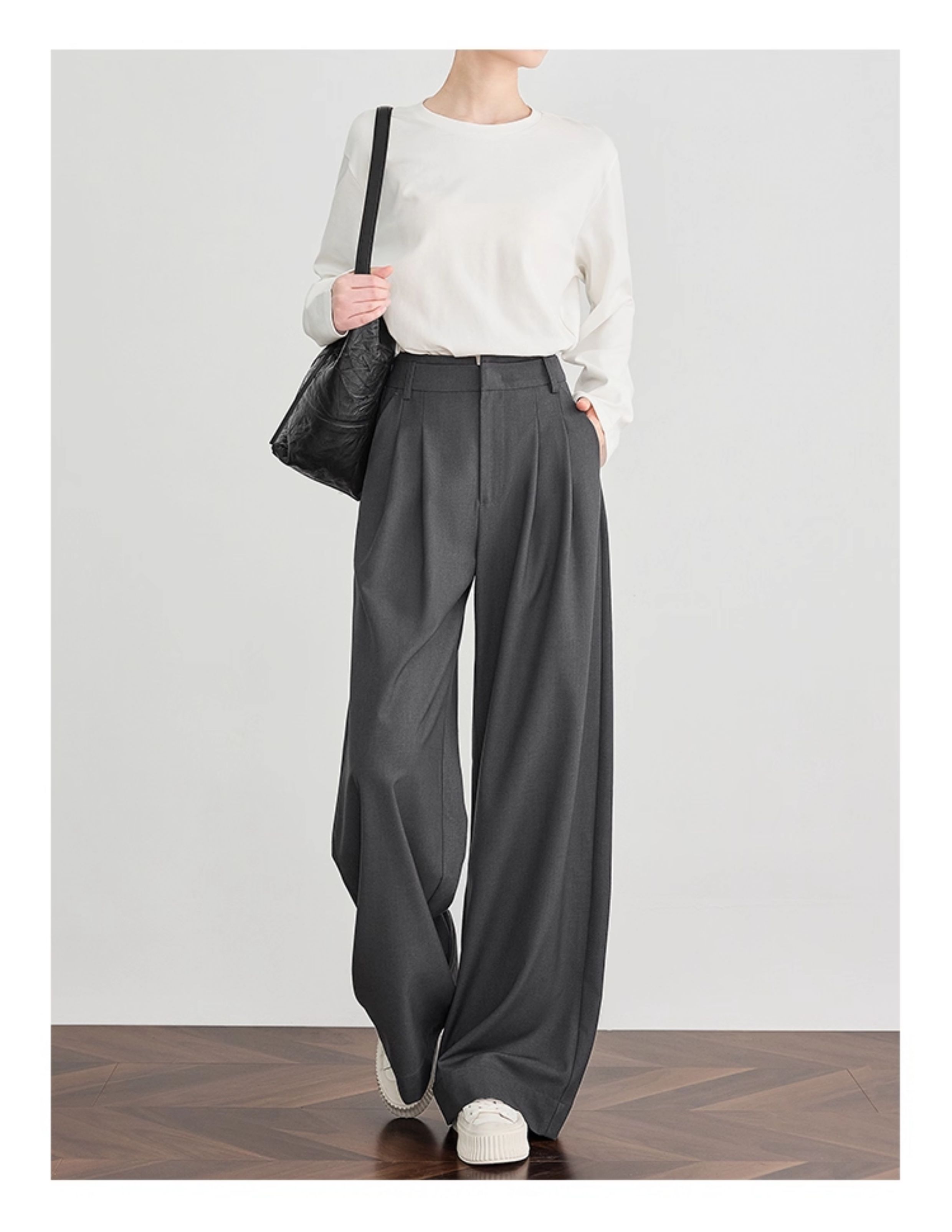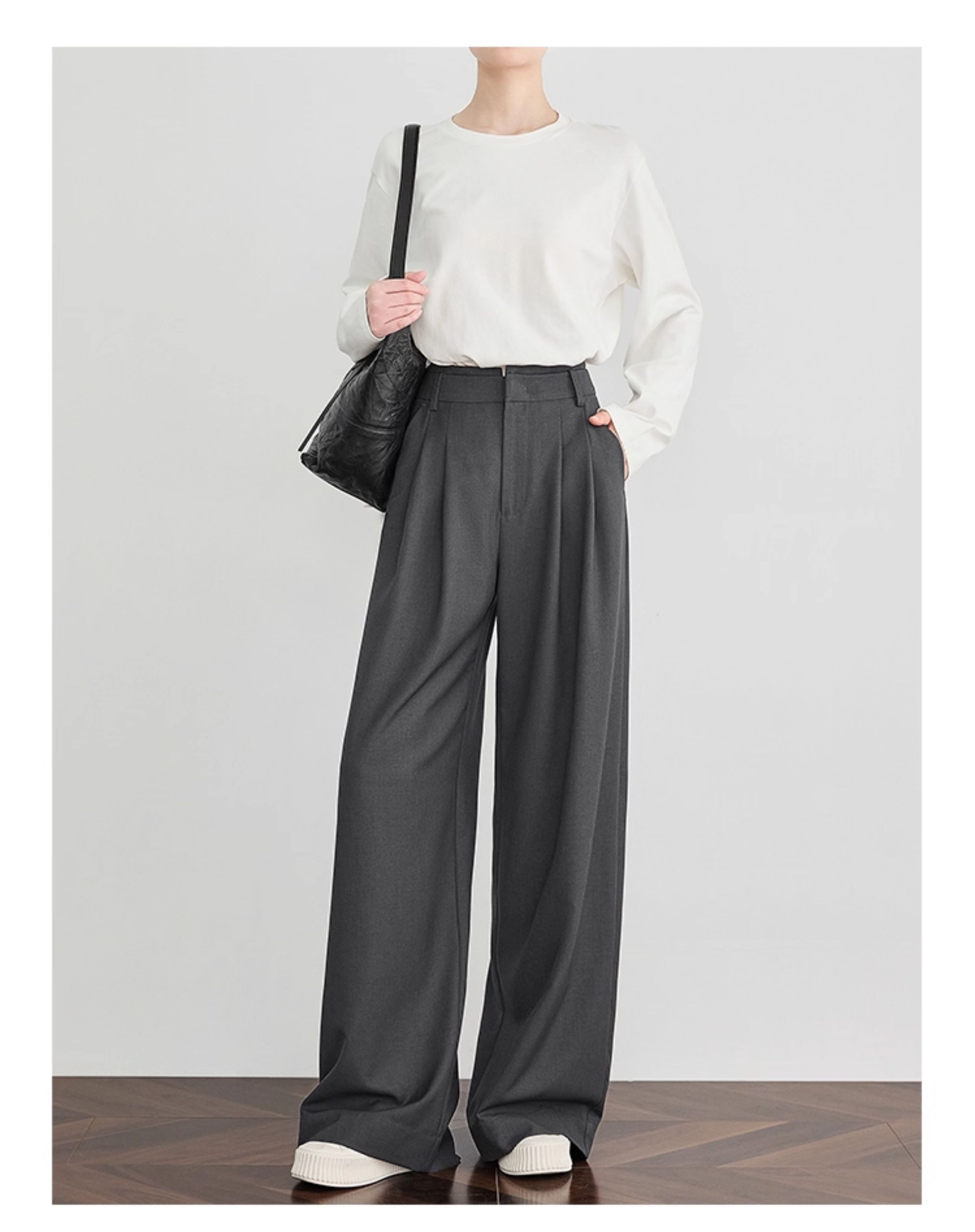 Faesslin【Tall-Enhancing Pants】High-End Gray Suit Wide-Leg Pants for Women, New Spring and Autumn Style, Extra-Long Floor-Length Pants