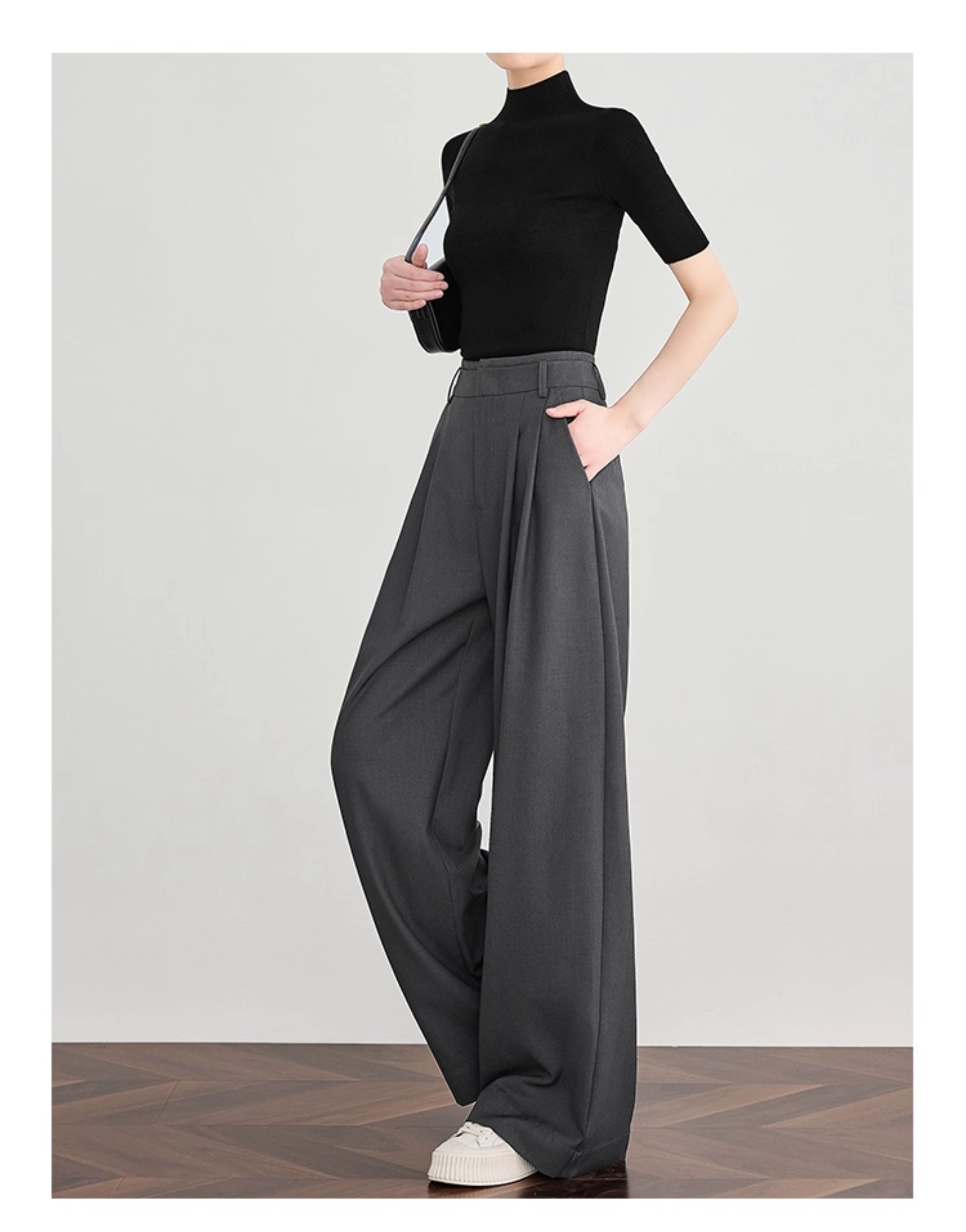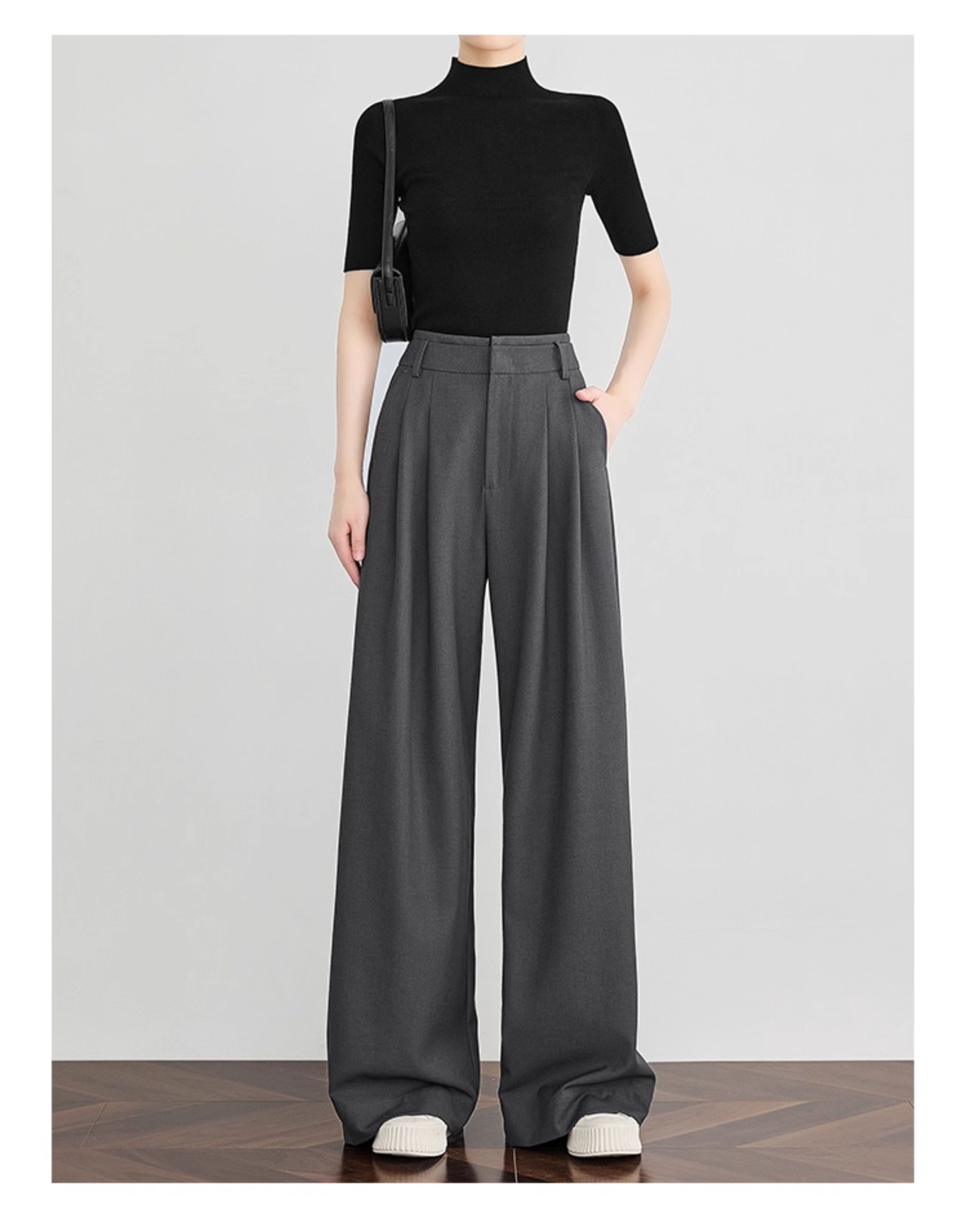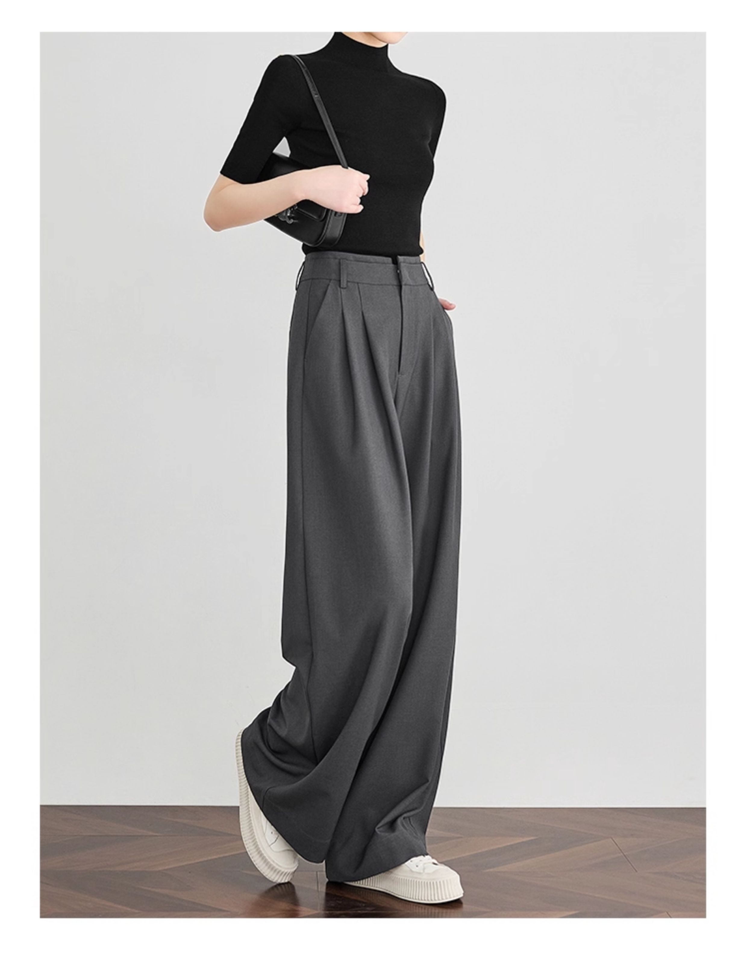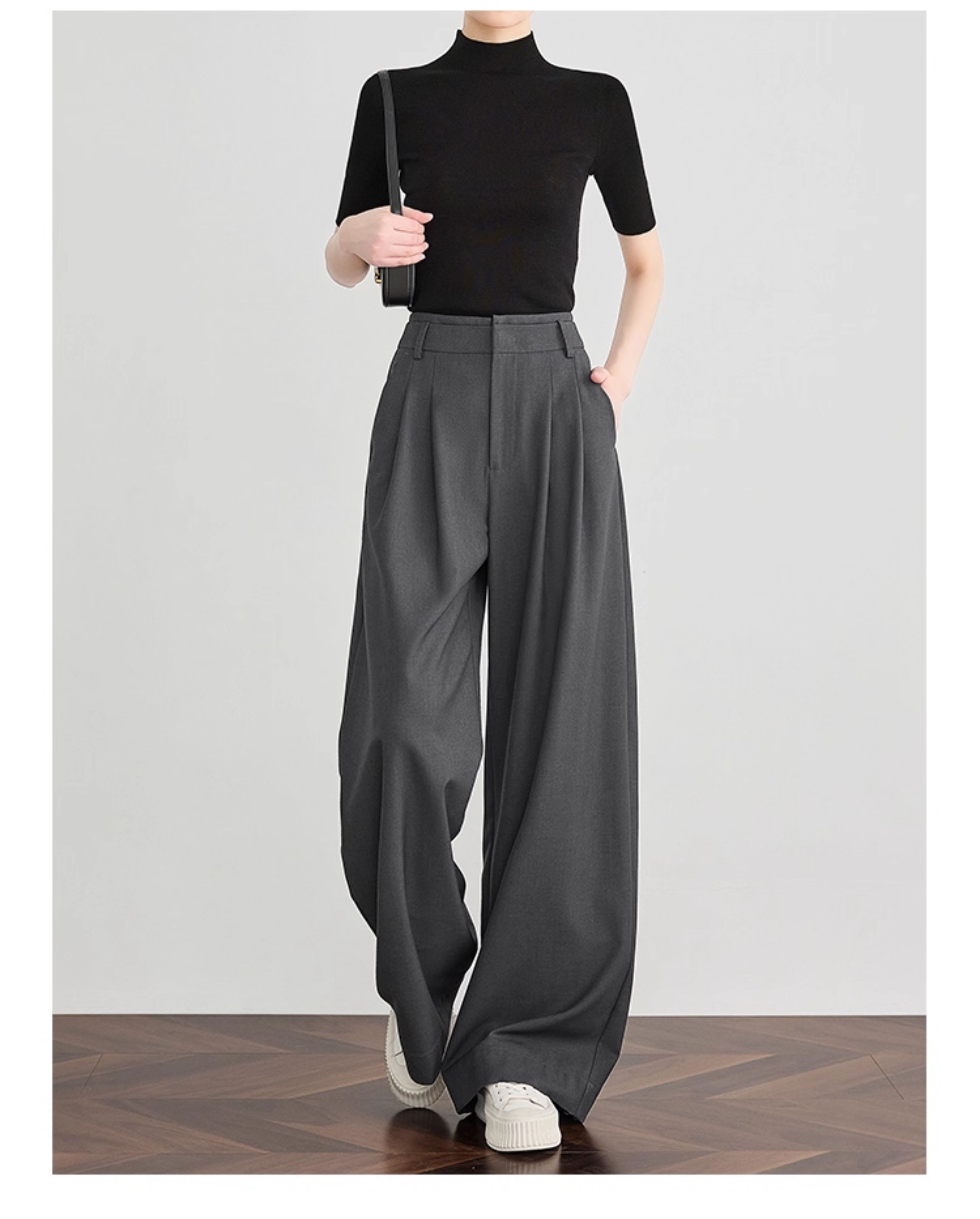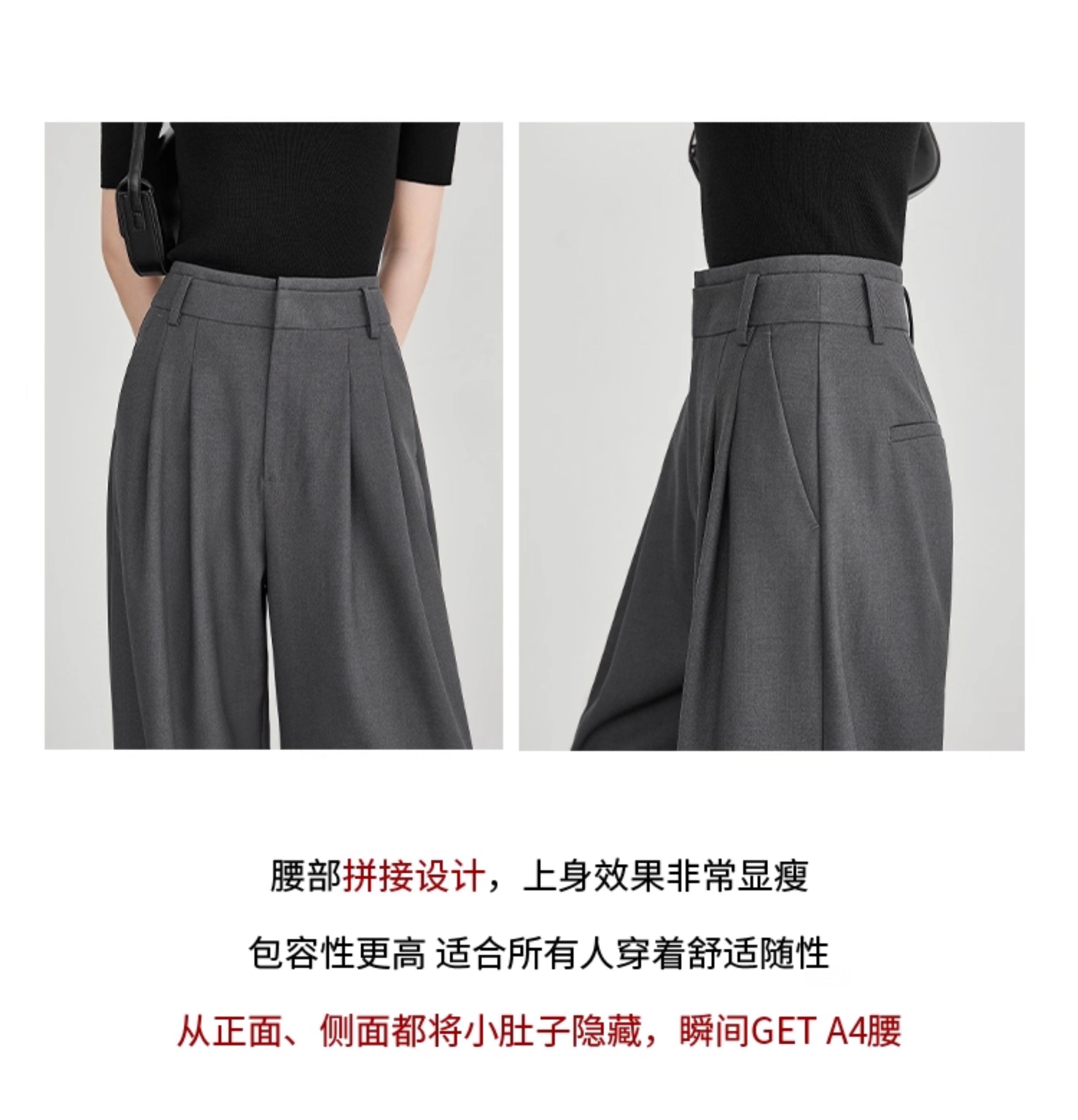 Faesslin【Tall-Enhancing Pants】High-End Gray Suit Wide-Leg Pants for Women, New Spring and Autumn Style, Extra-Long Floor-Length Pants