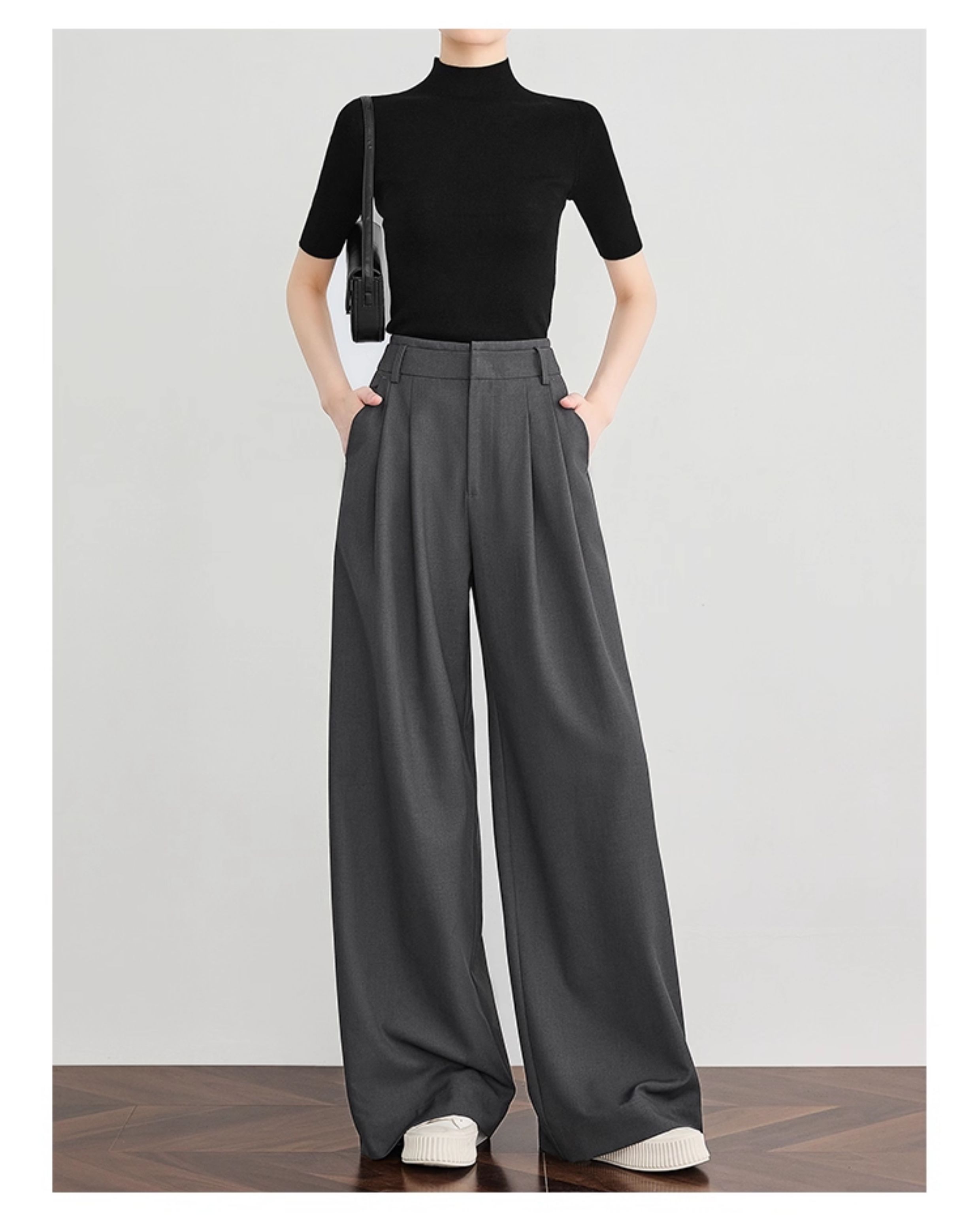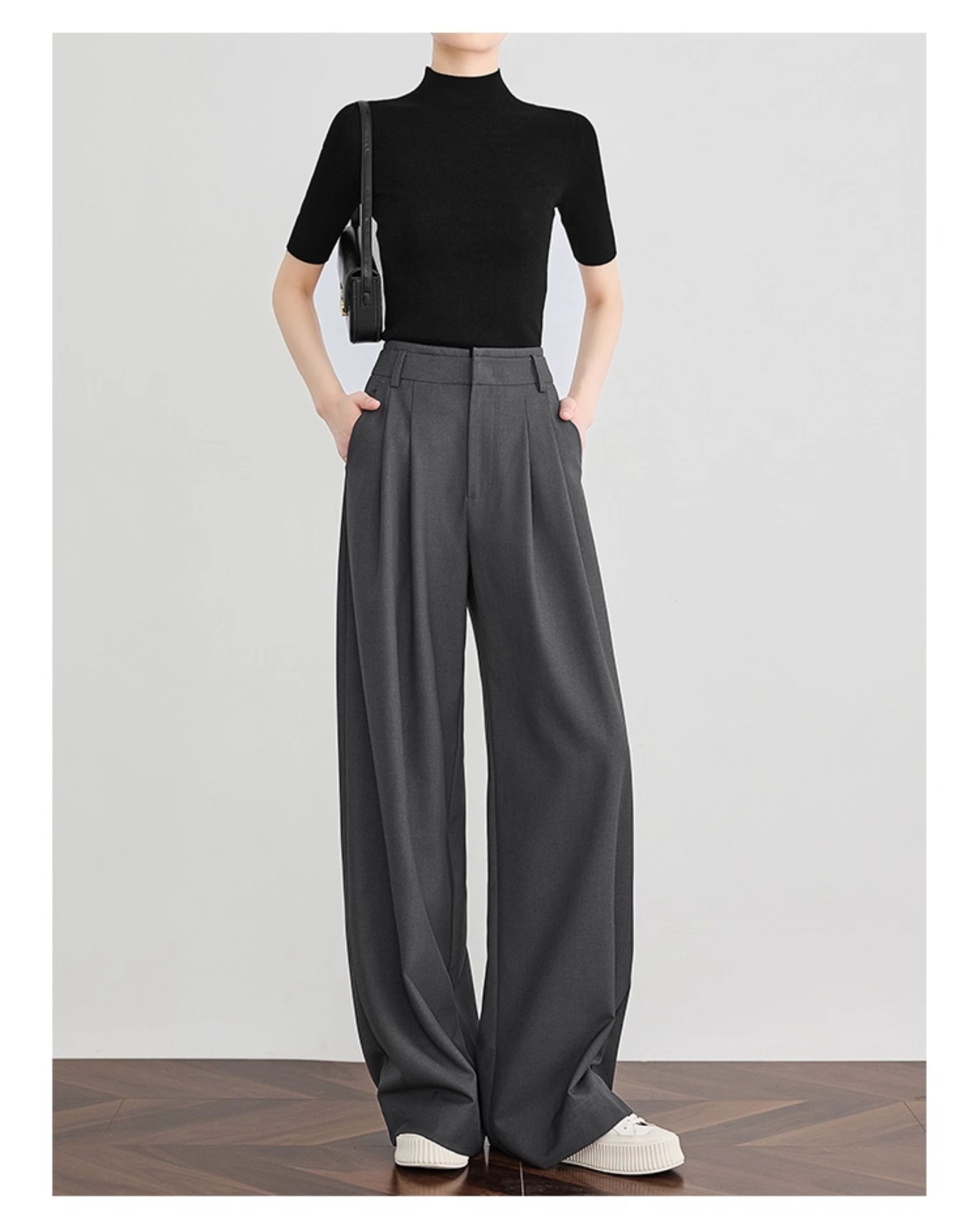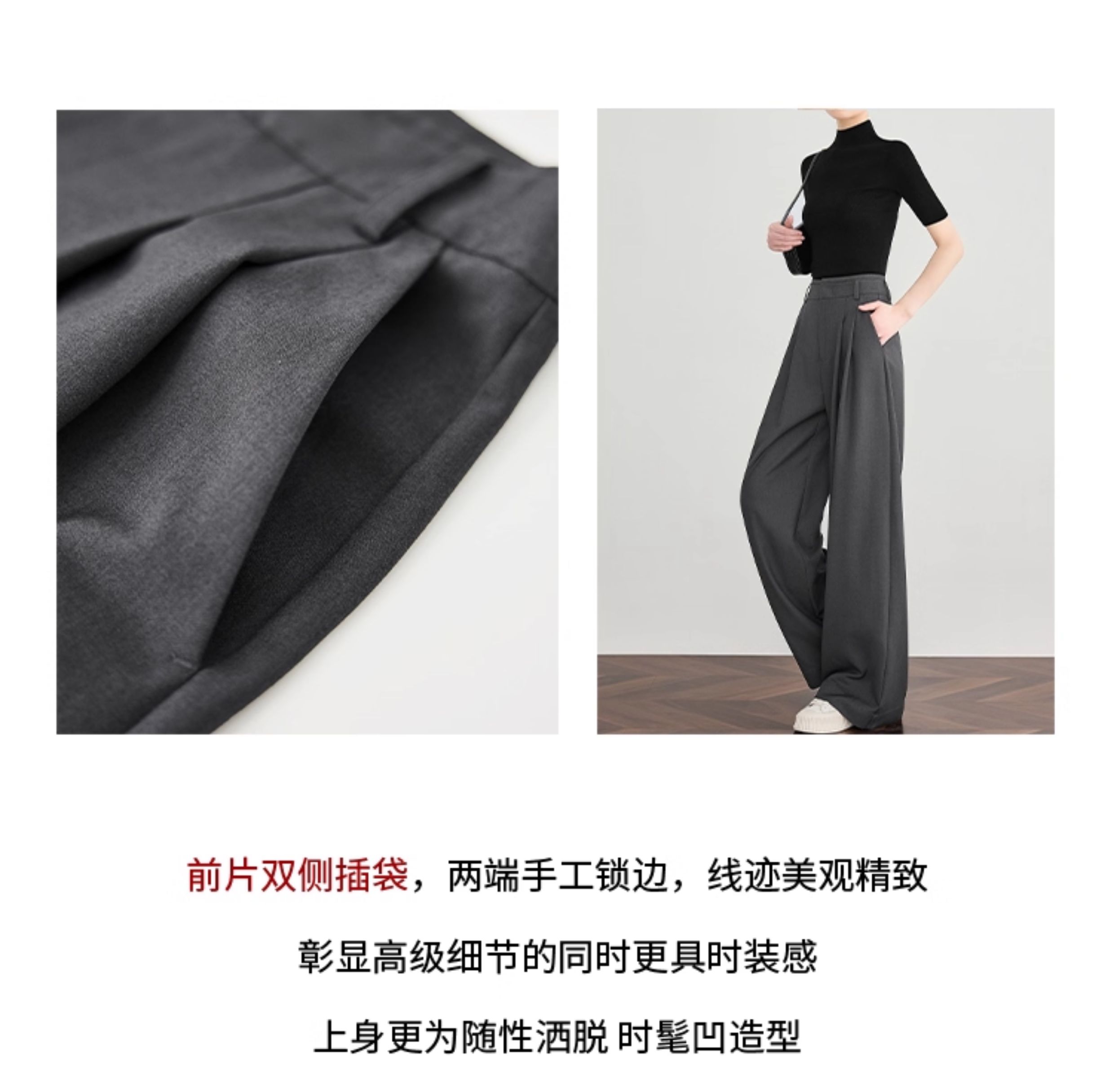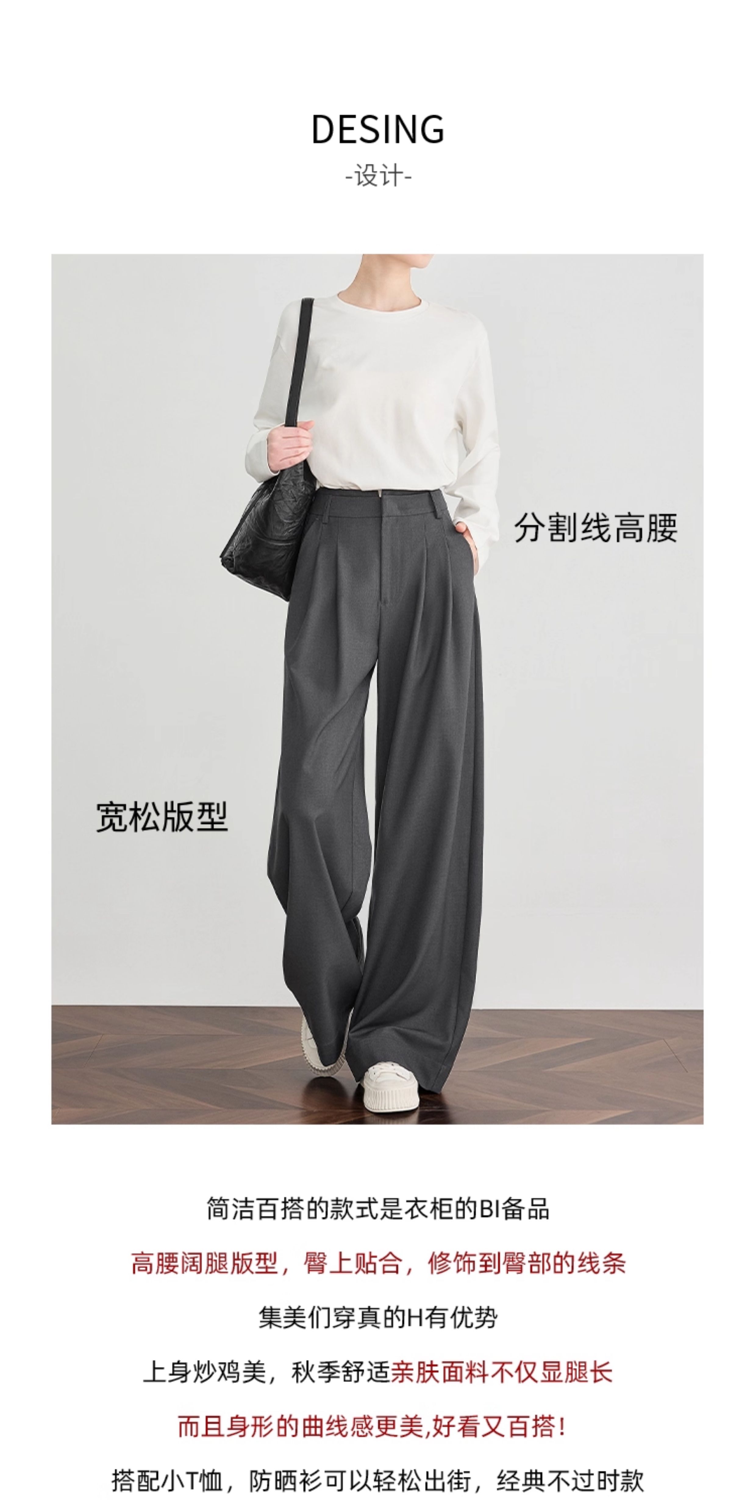 Faesslin【Tall-Enhancing Pants】High-End Gray Suit Wide-Leg Pants for Women, New Spring and Autumn Style, Extra-Long Floor-Length Pants
