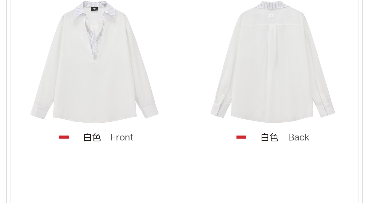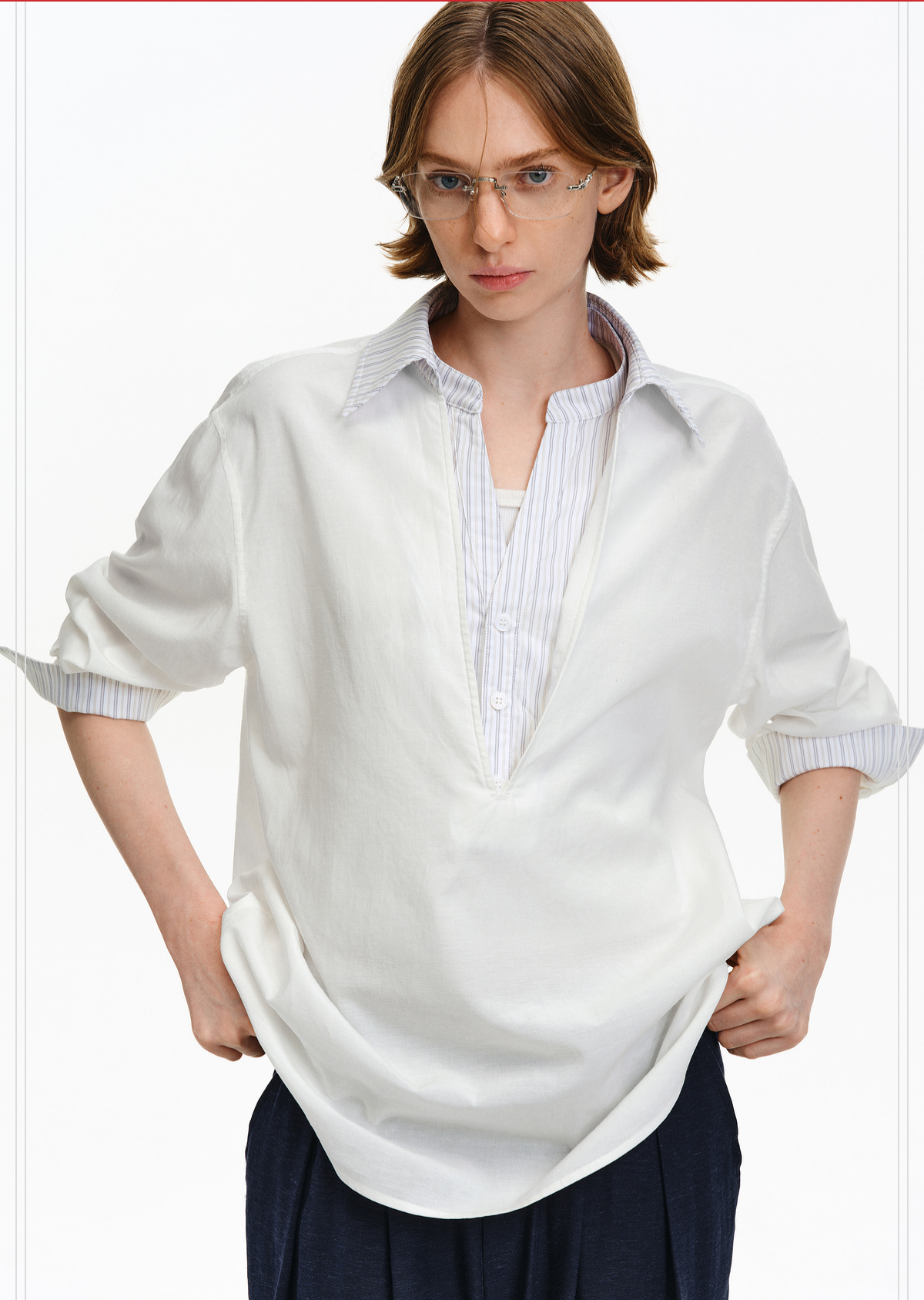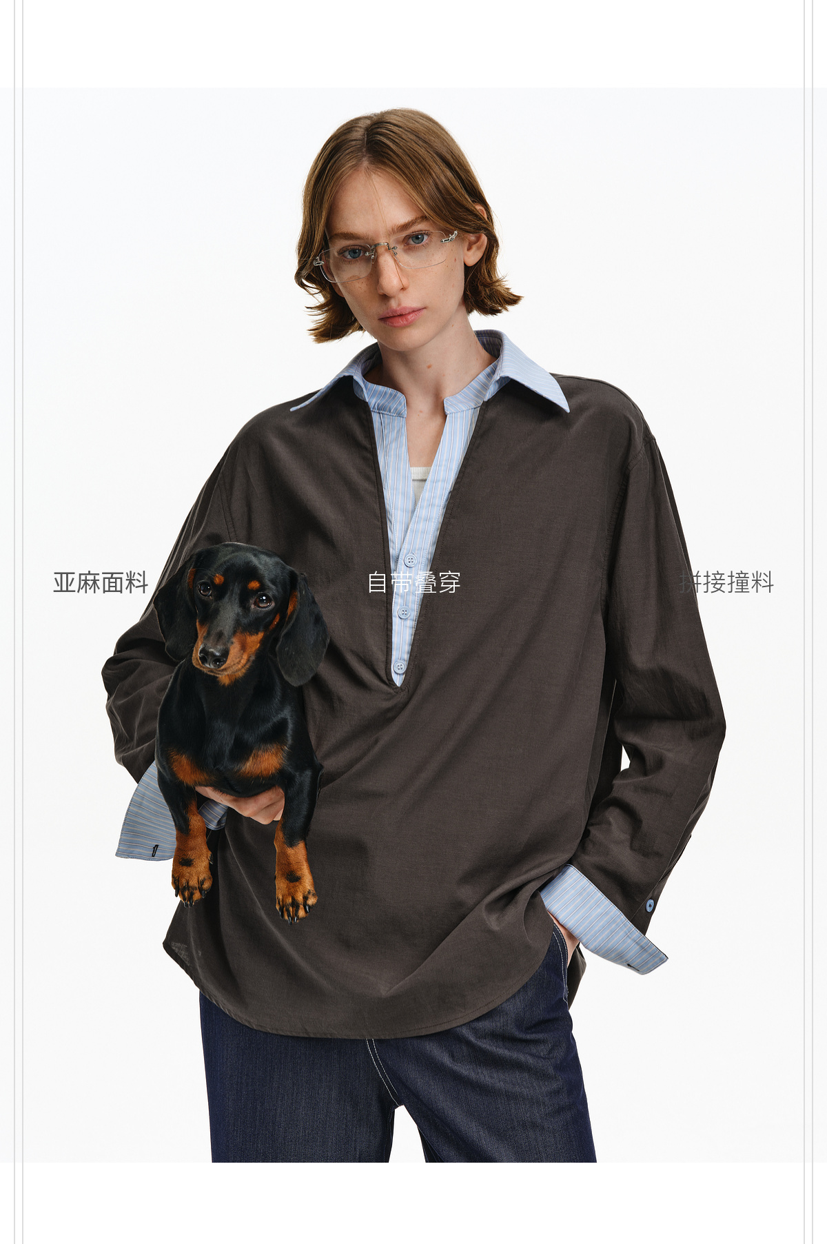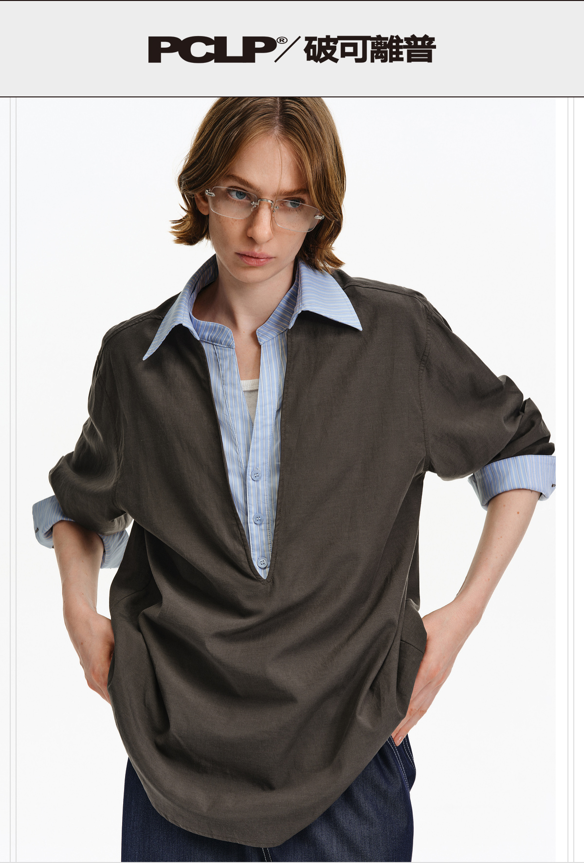Pclp Fake Two-Piece Patchwork Striped Shirt Trendy Brand Autumn and Winter Loose Versatile Color-Blocking Design Long-Sleeve Shirt