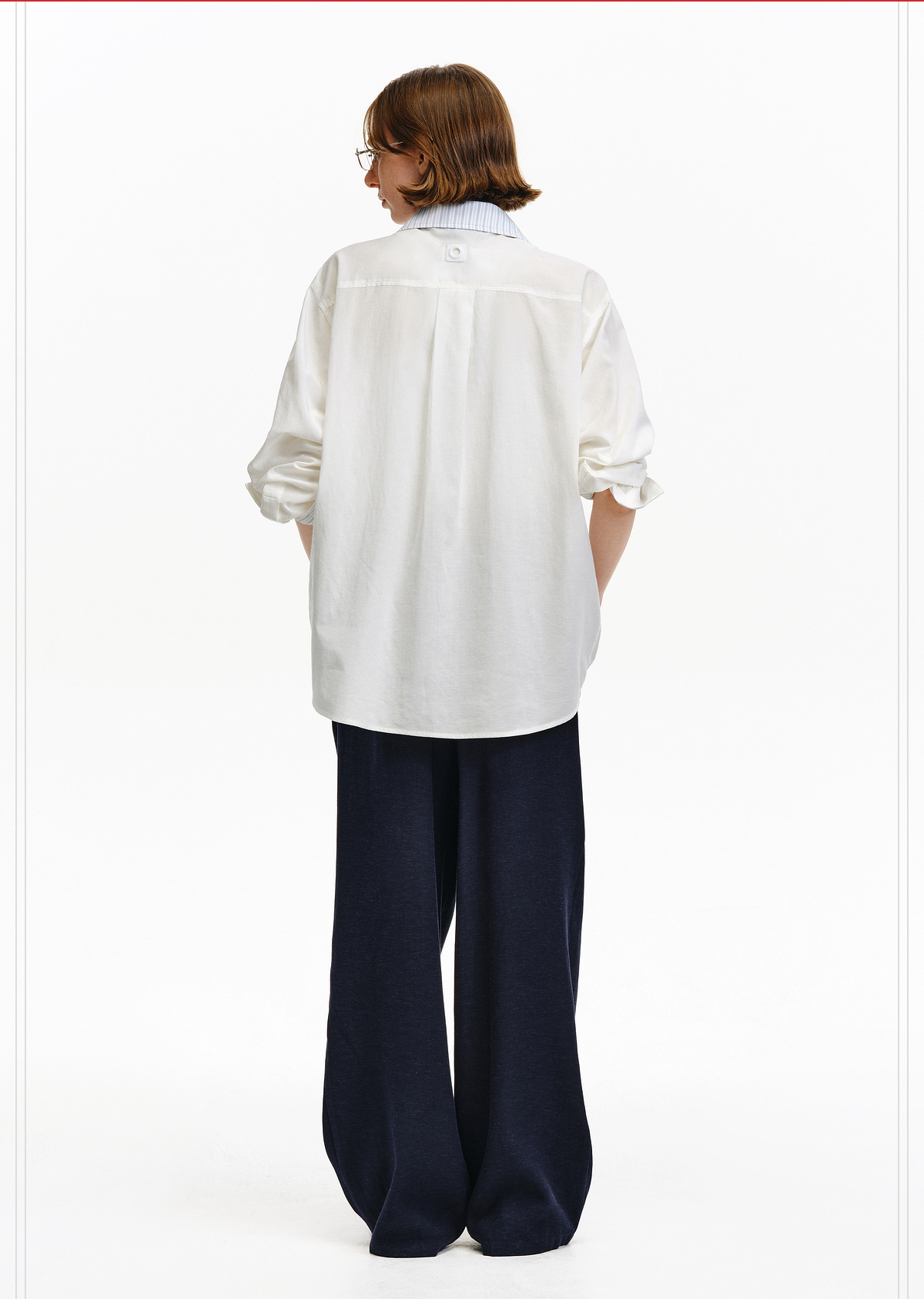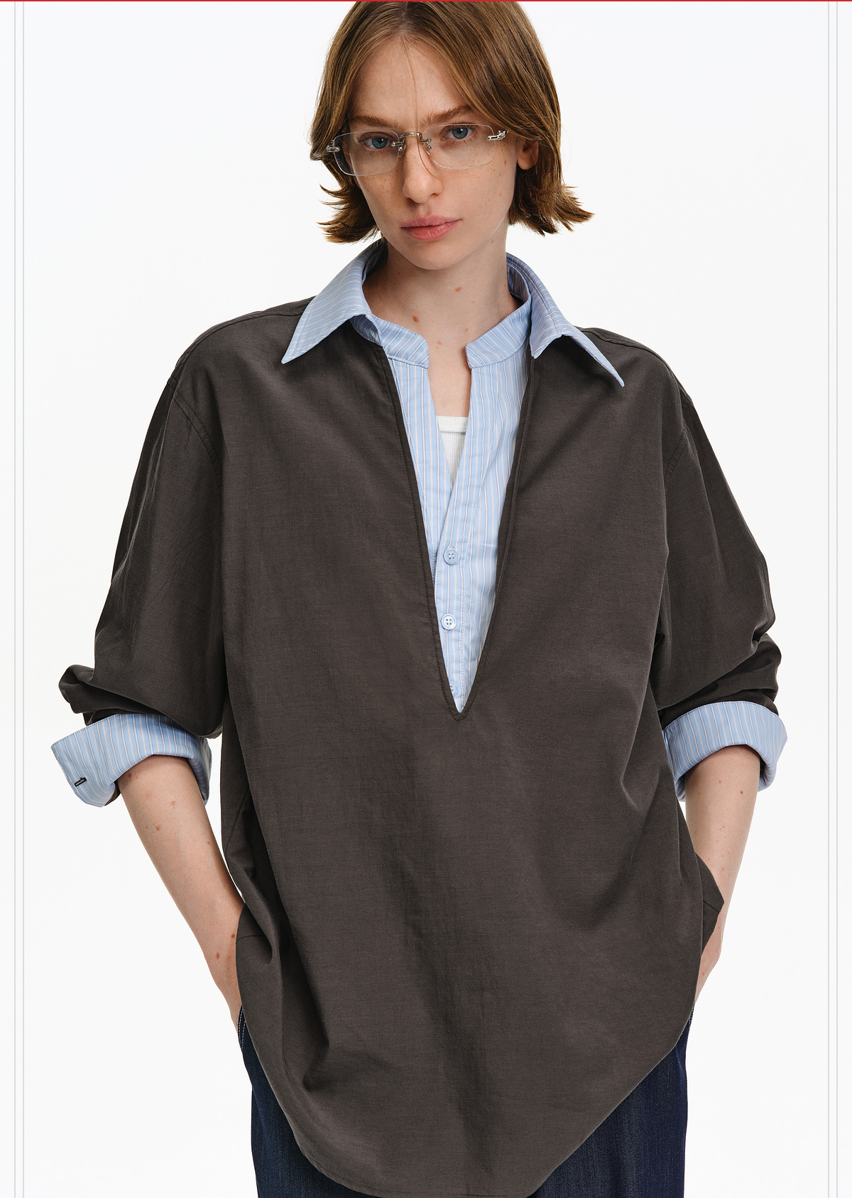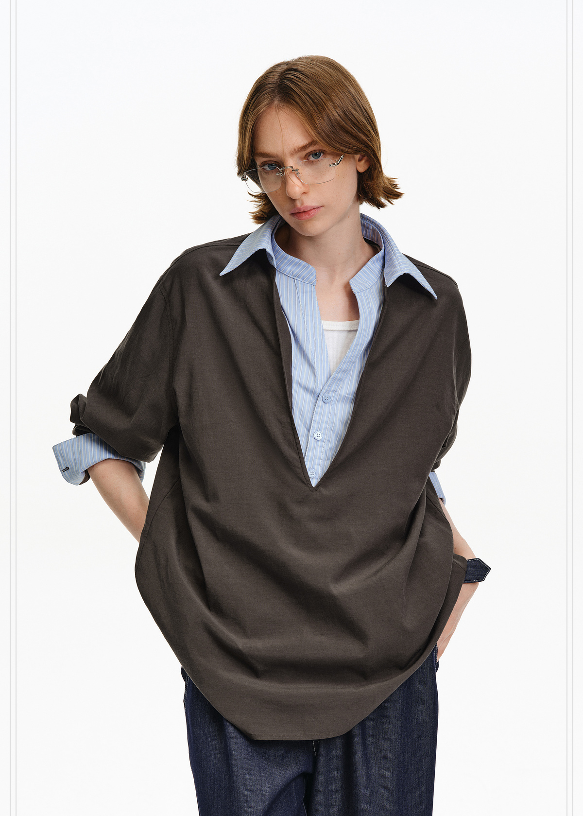 Pclp Fake Two-Piece Patchwork Striped Shirt Trendy Brand Autumn and Winter Loose Versatile Color-Blocking Design Long-Sleeve Shirt