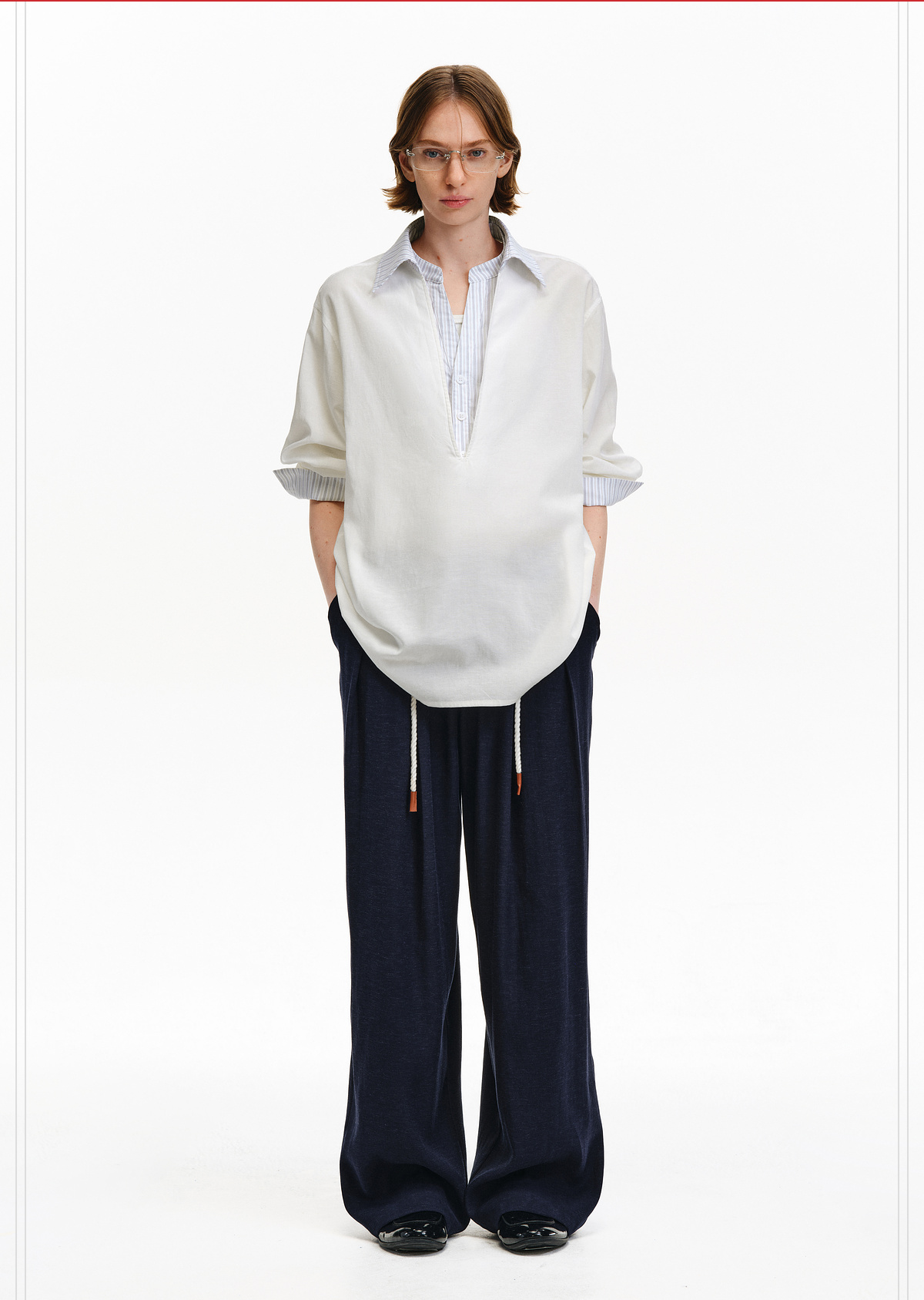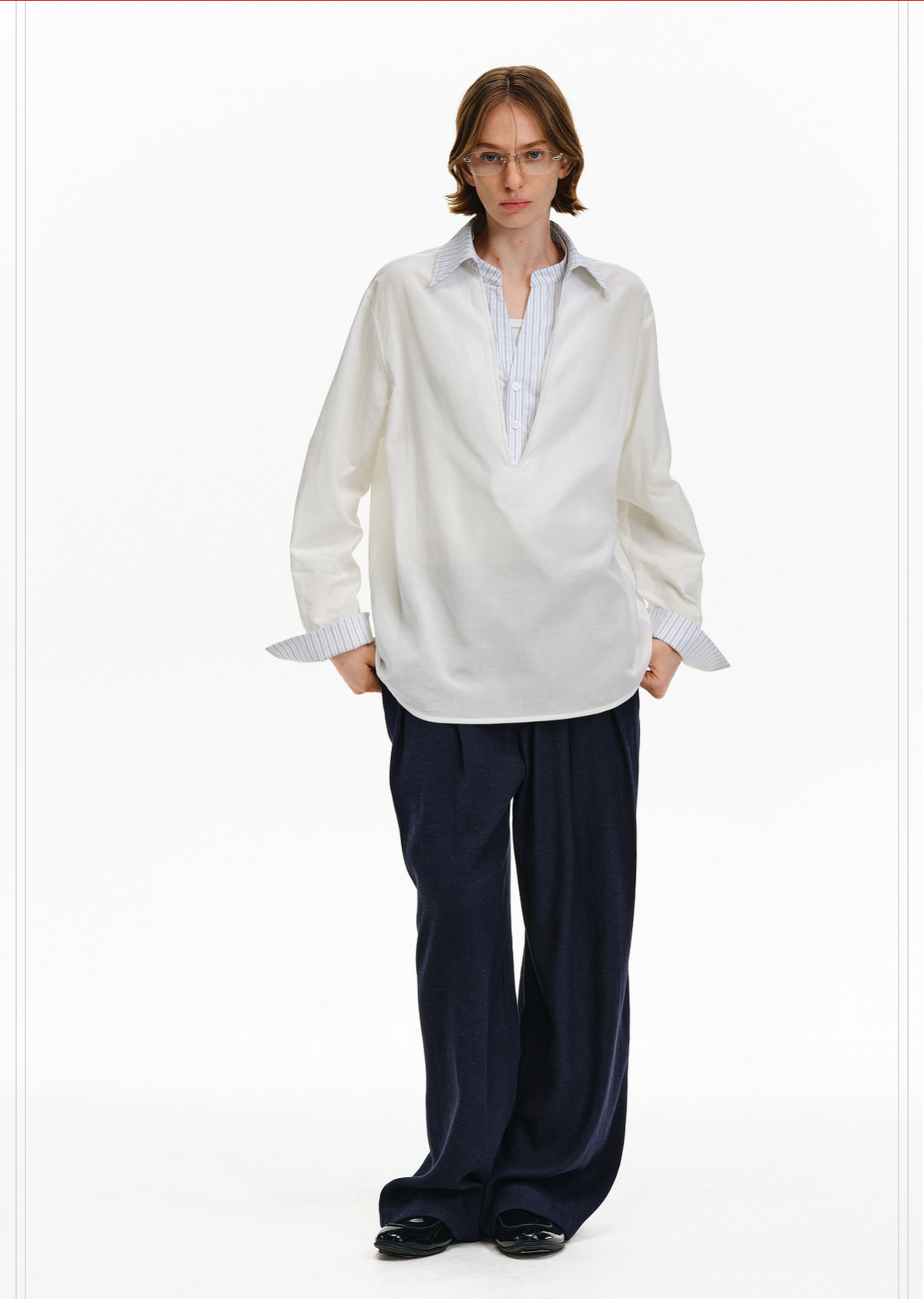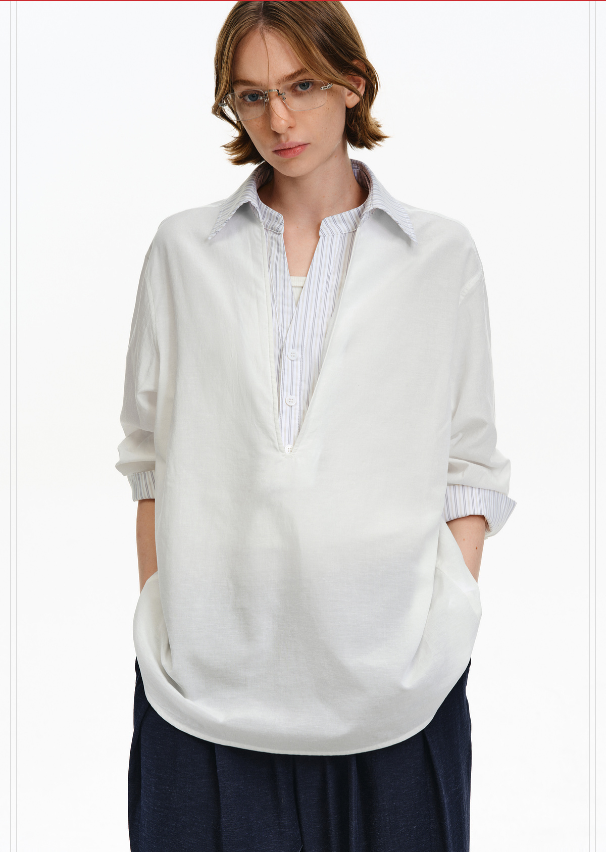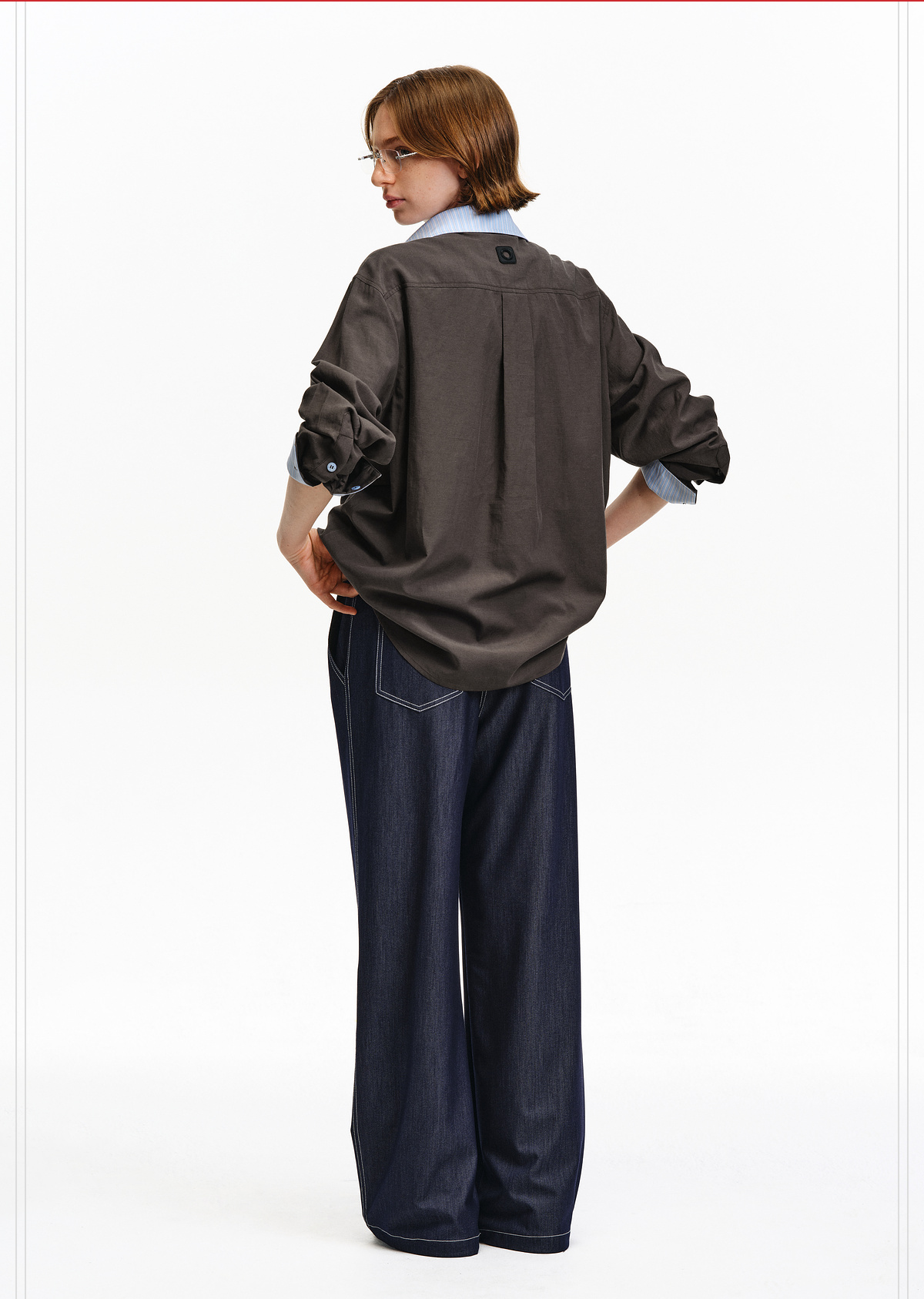 Pclp Fake Two-Piece Patchwork Striped Shirt Trendy Brand Autumn and Winter Loose Versatile Color-Blocking Design Long-Sleeve Shirt