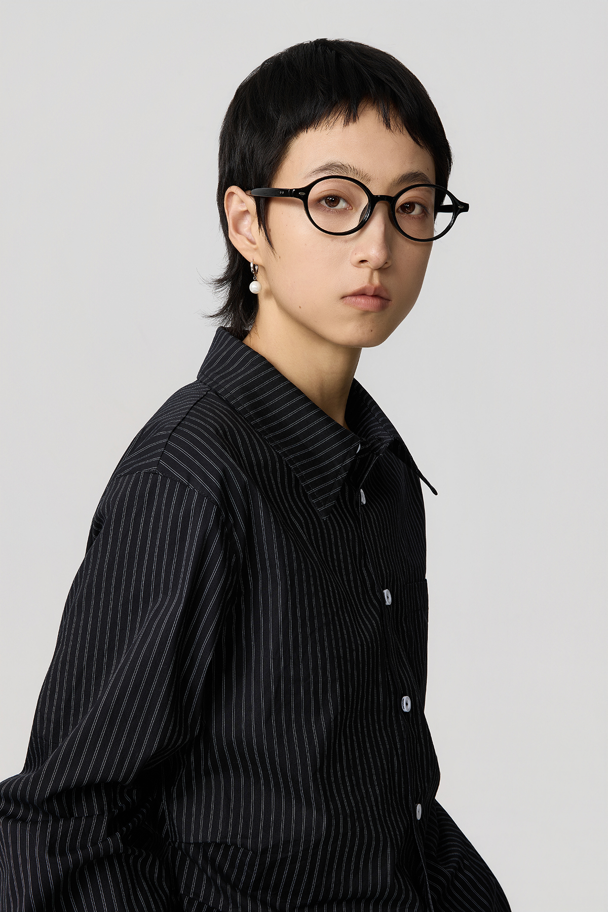 Sameuoo Free-Range Culture "Yinying" Waist-Cinching Modern Unisex White Striped Long-Sleeve Shirt