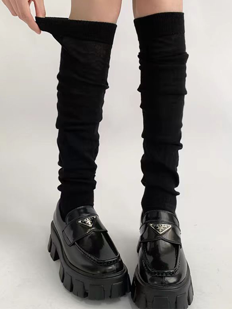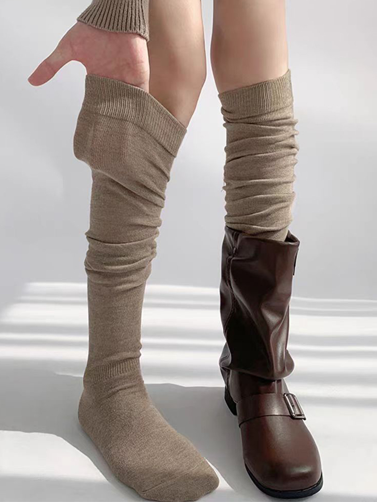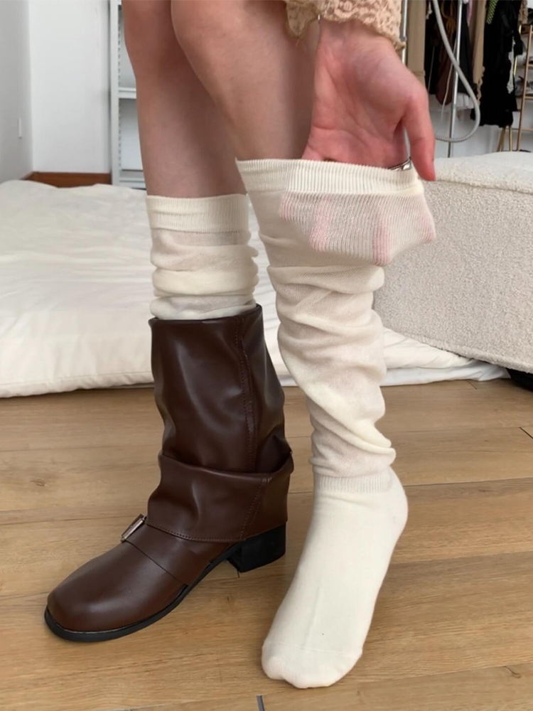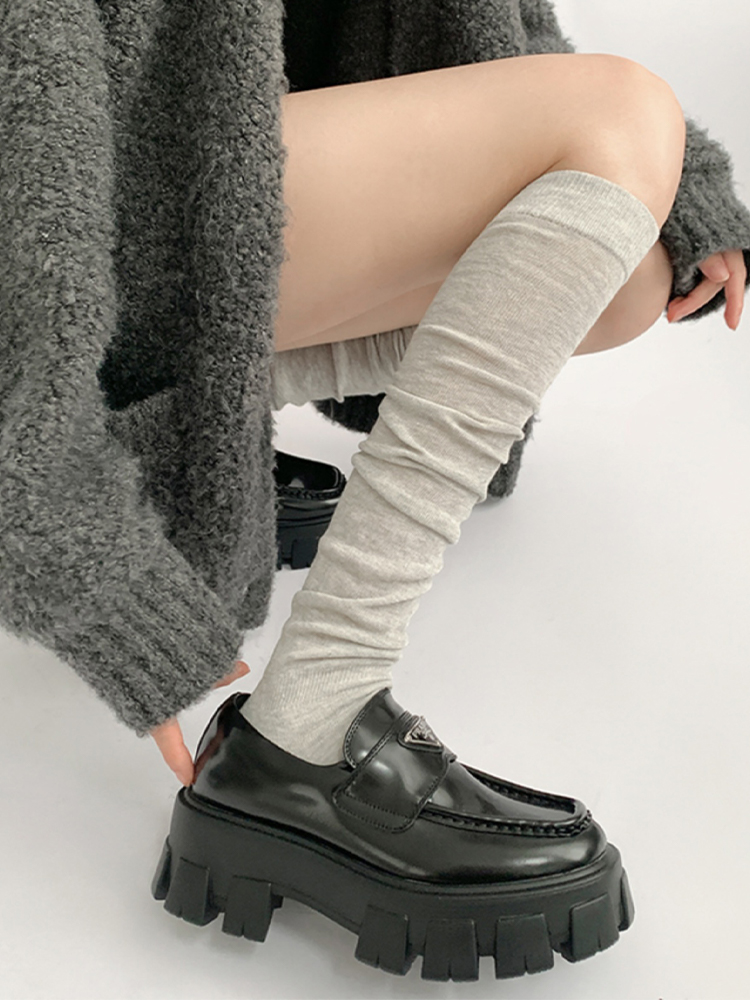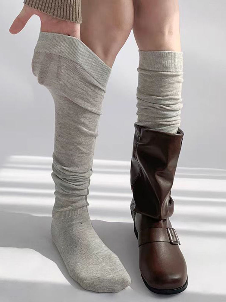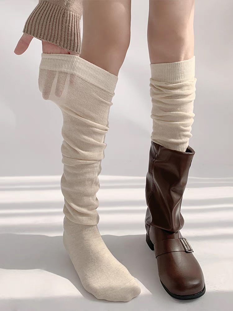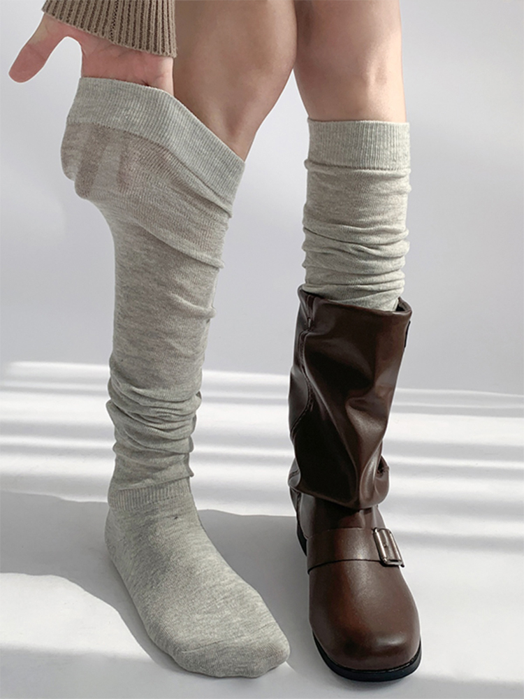 Early Autumn Outfits That Cover the Body!! Invincible Body-Covering Slouch Socks Paired with Boots Create a Sense of Atmosphere, Over-The-Knee Socks, Calf Socks