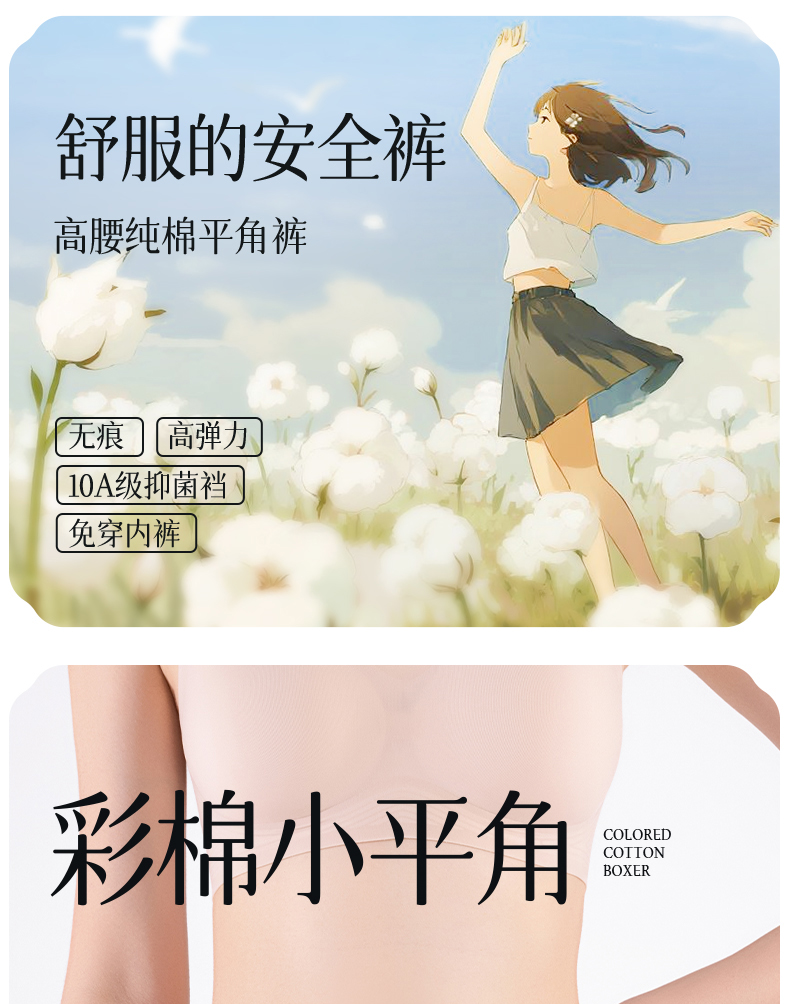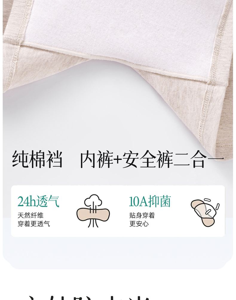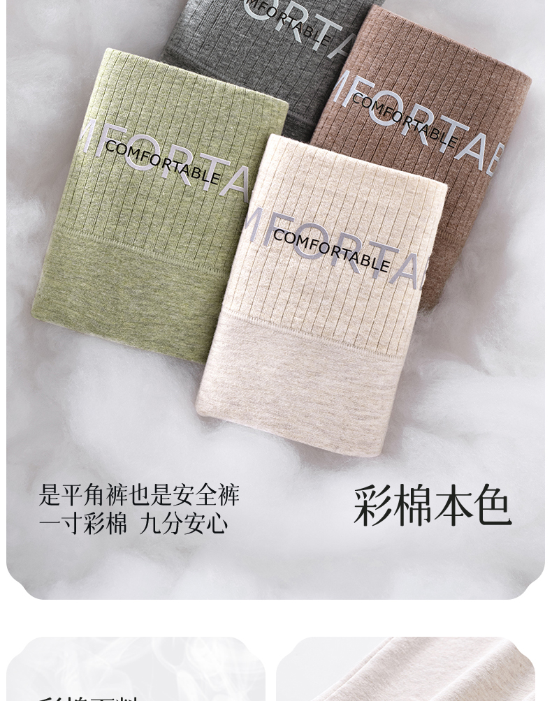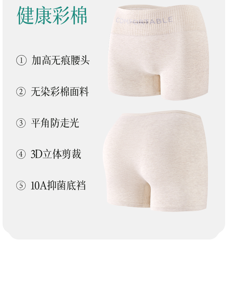 Herbal Natural Color Class a Pure Cotton Safety Shorts for Women, Anti-Exposure Base Layer Underwear, Antibacterial Colored Cotton Two-In-One Boxer Shorts