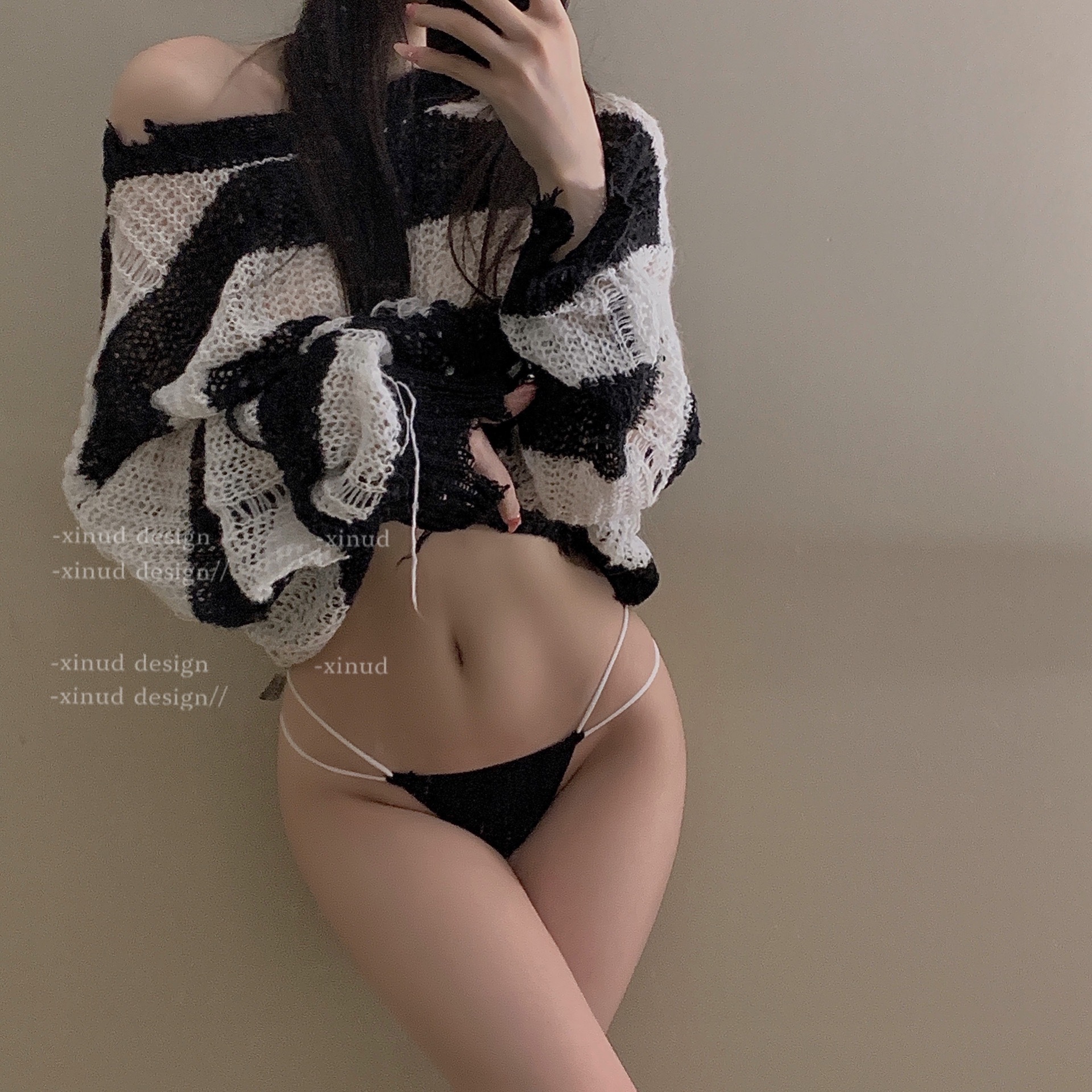 The Ultimate in Sexiness~ Black Is the Pinnacle! Sexy Low-Rise Pure Desire Girl Panties, Comfortable and Alluring with Thin Straps~