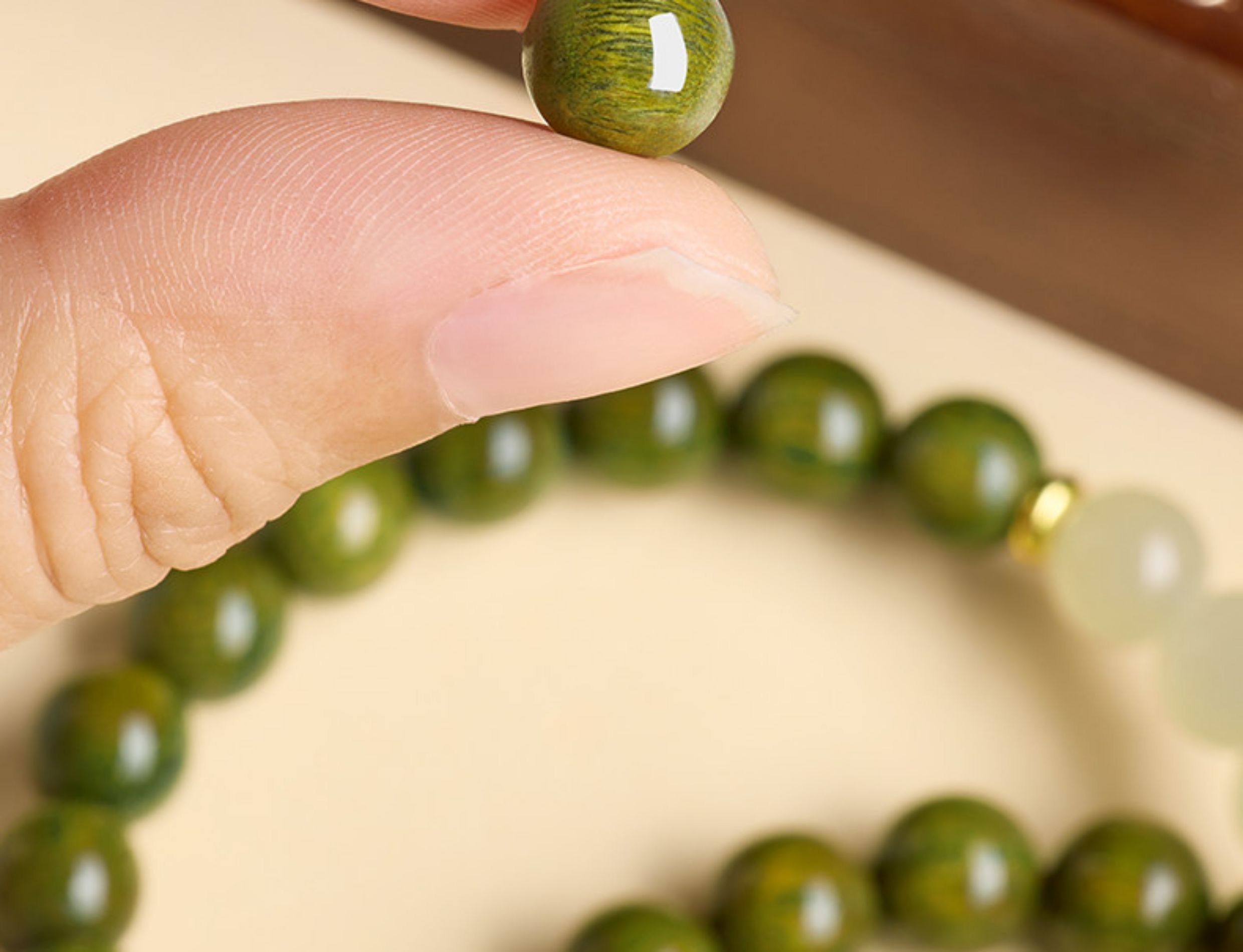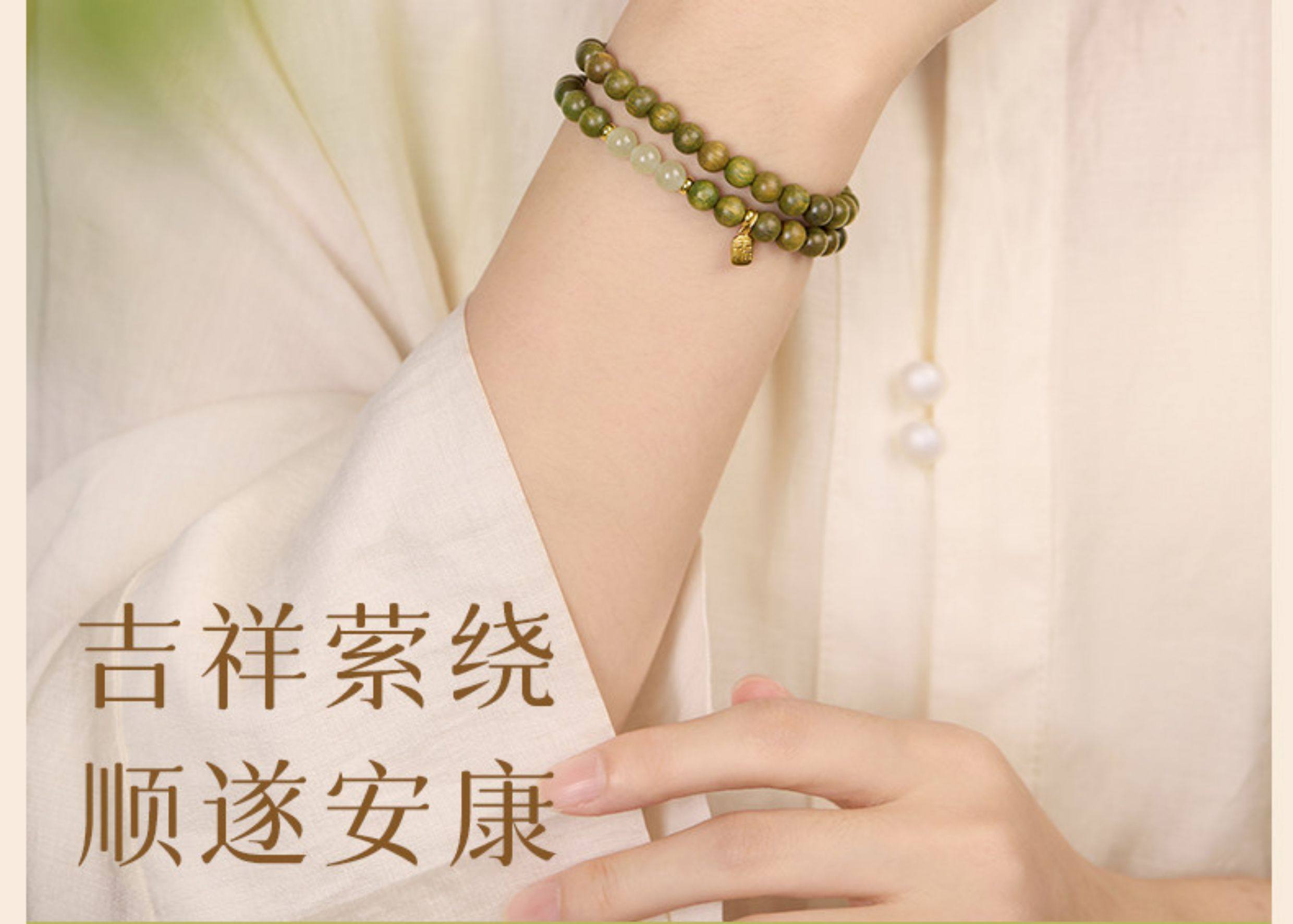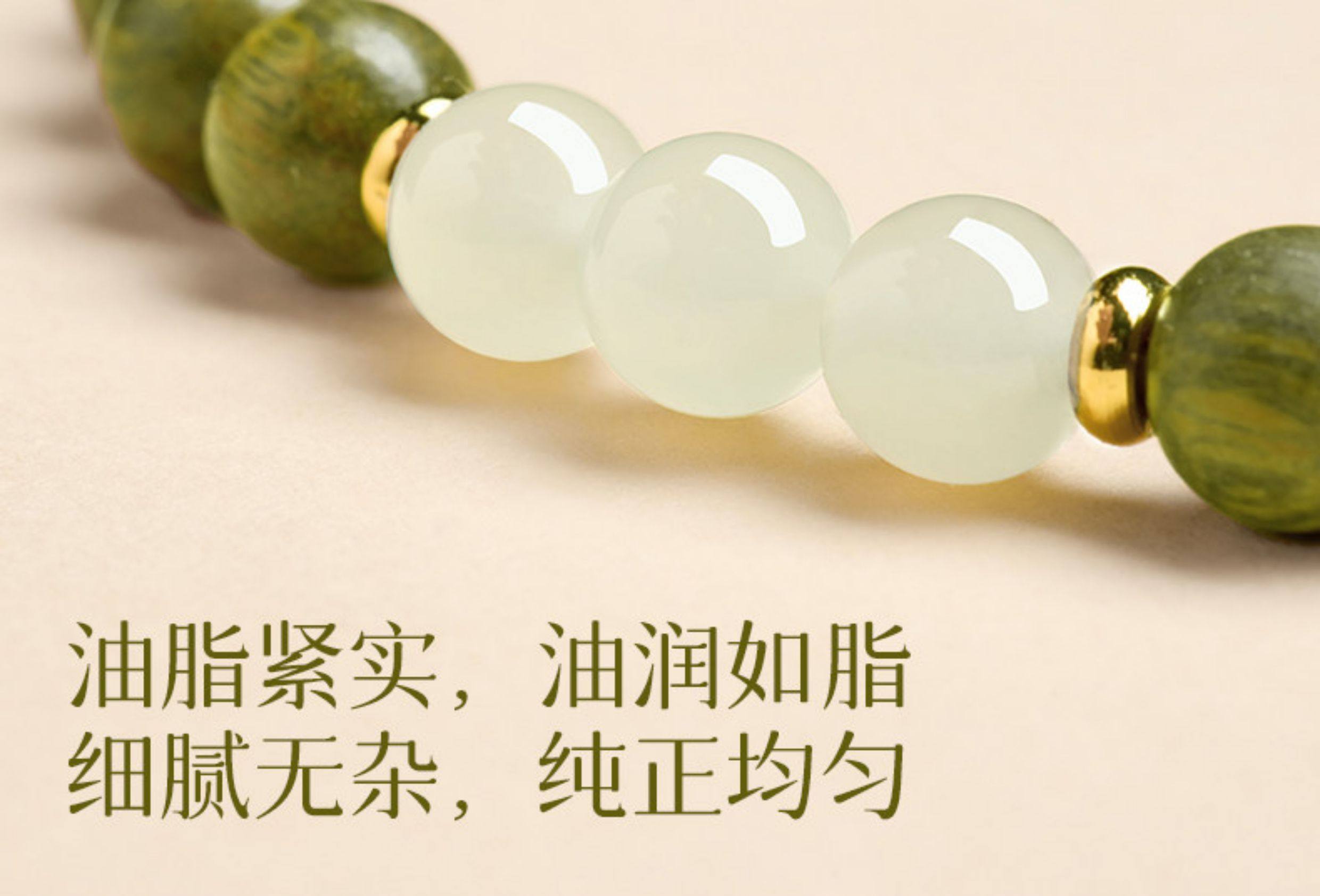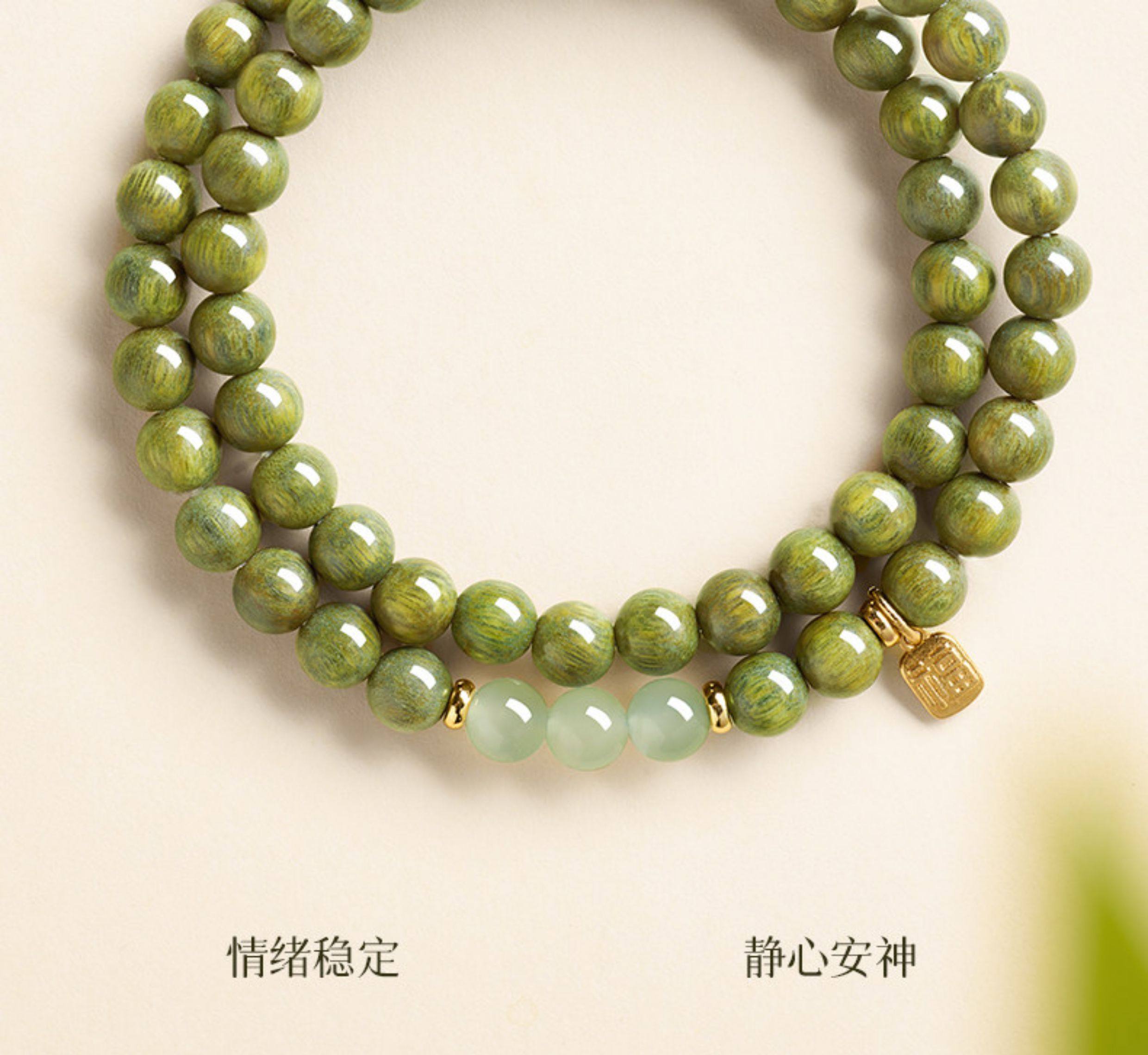Putuo Mountain Natural Green Sandalwood Bracelet for Women, Multi-Circle Crystal Bracelet, Wooden Agarwood Jewelry, Hetian Jade Beads