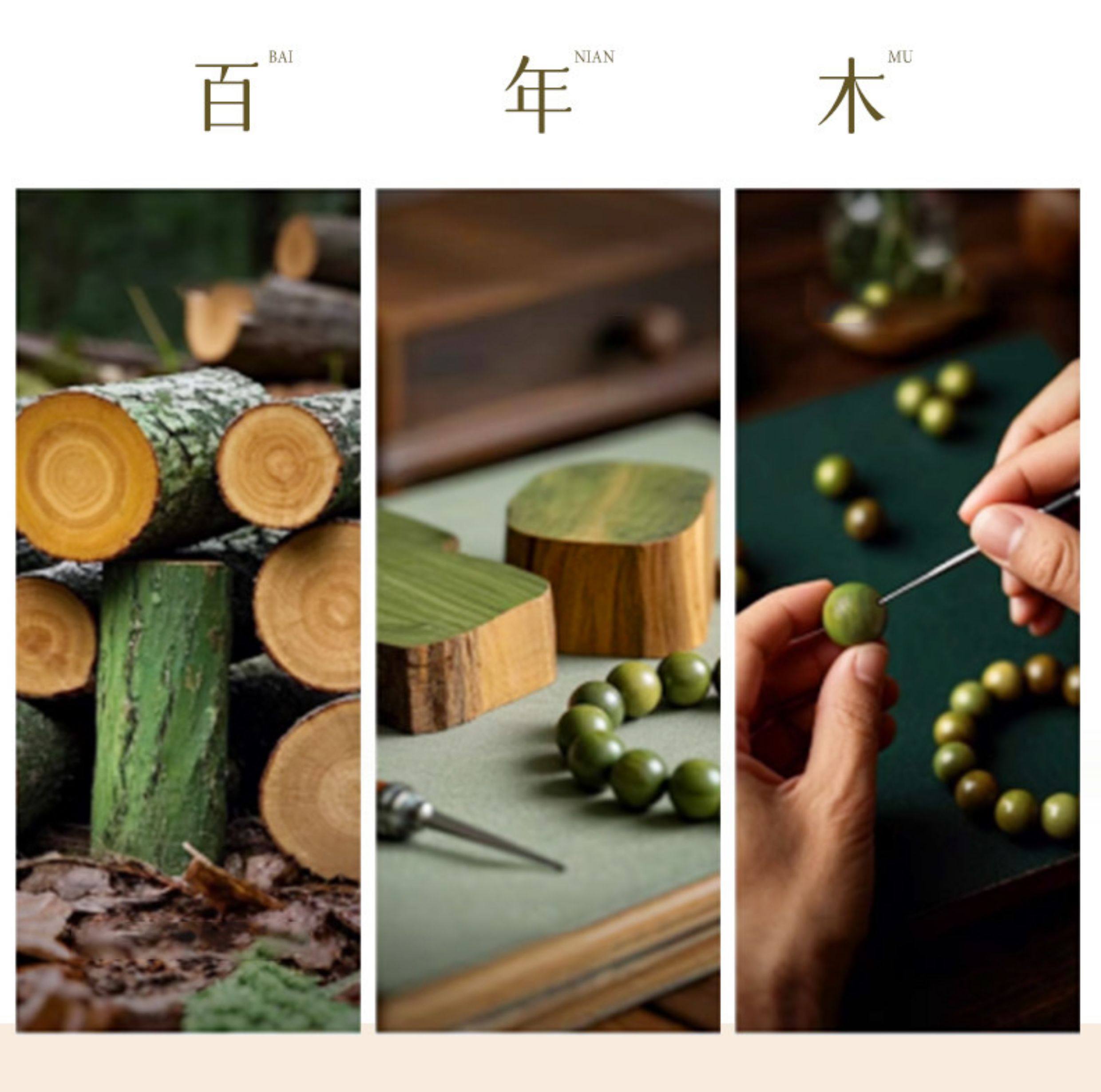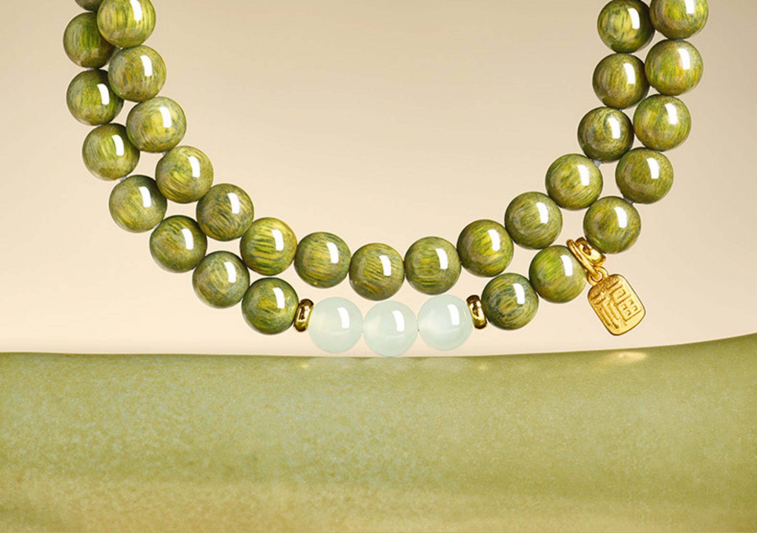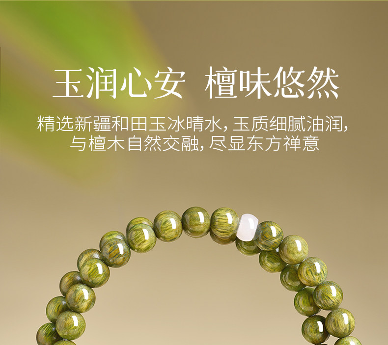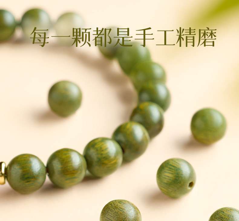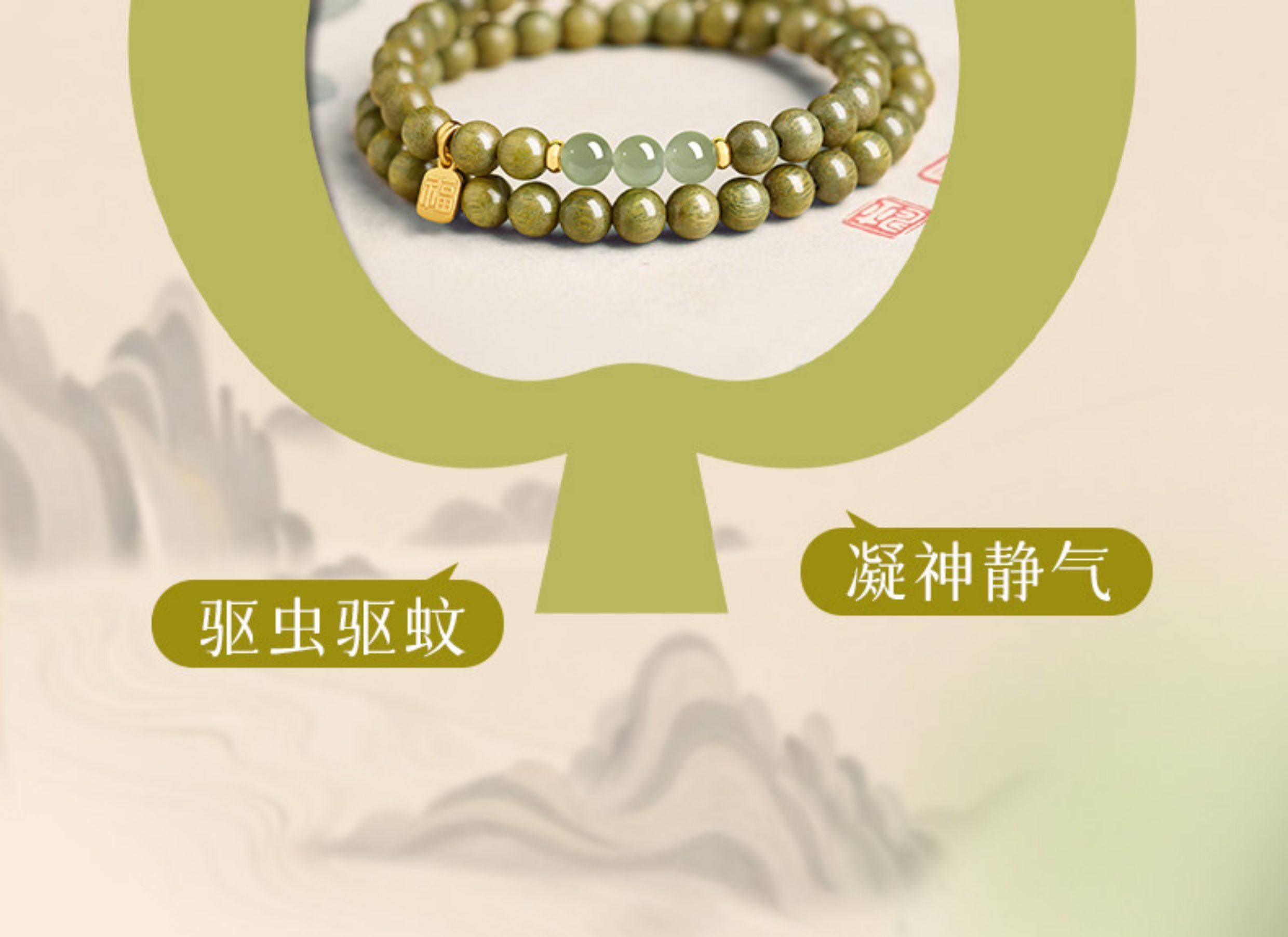Putuo Mountain Natural Green Sandalwood Bracelet for Women, Multi-Circle Crystal Bracelet, Wooden Agarwood Jewelry, Hetian Jade Beads