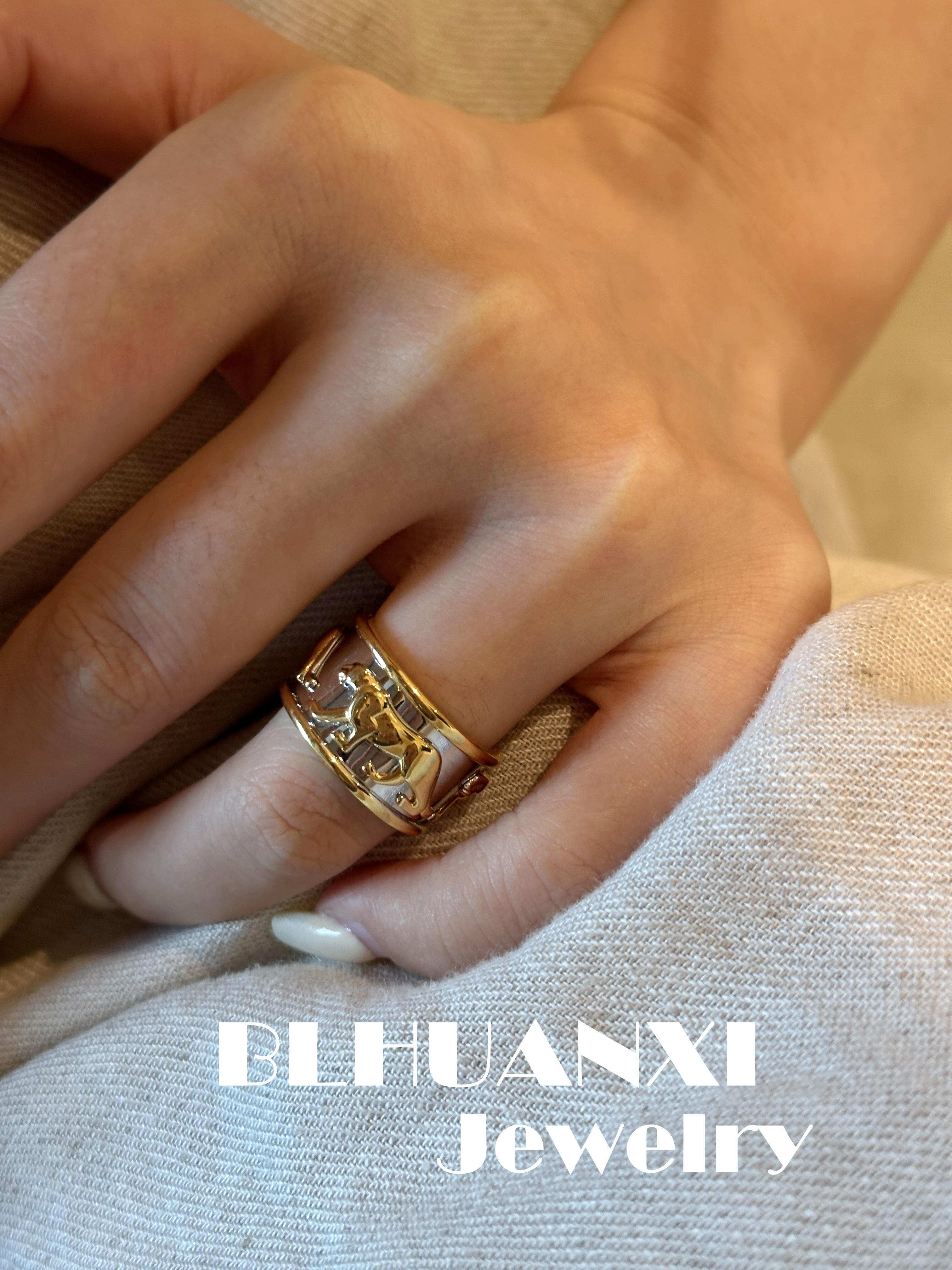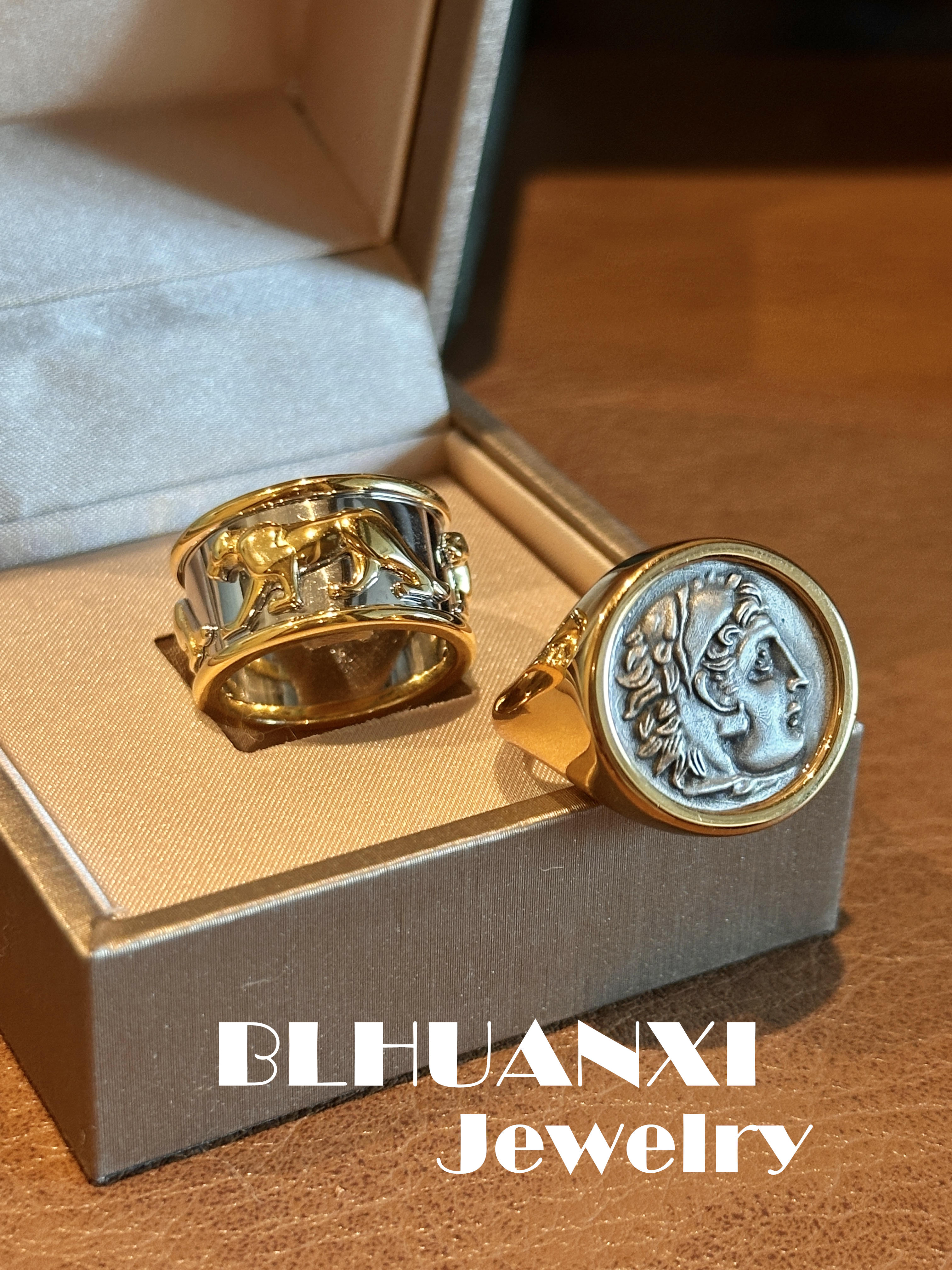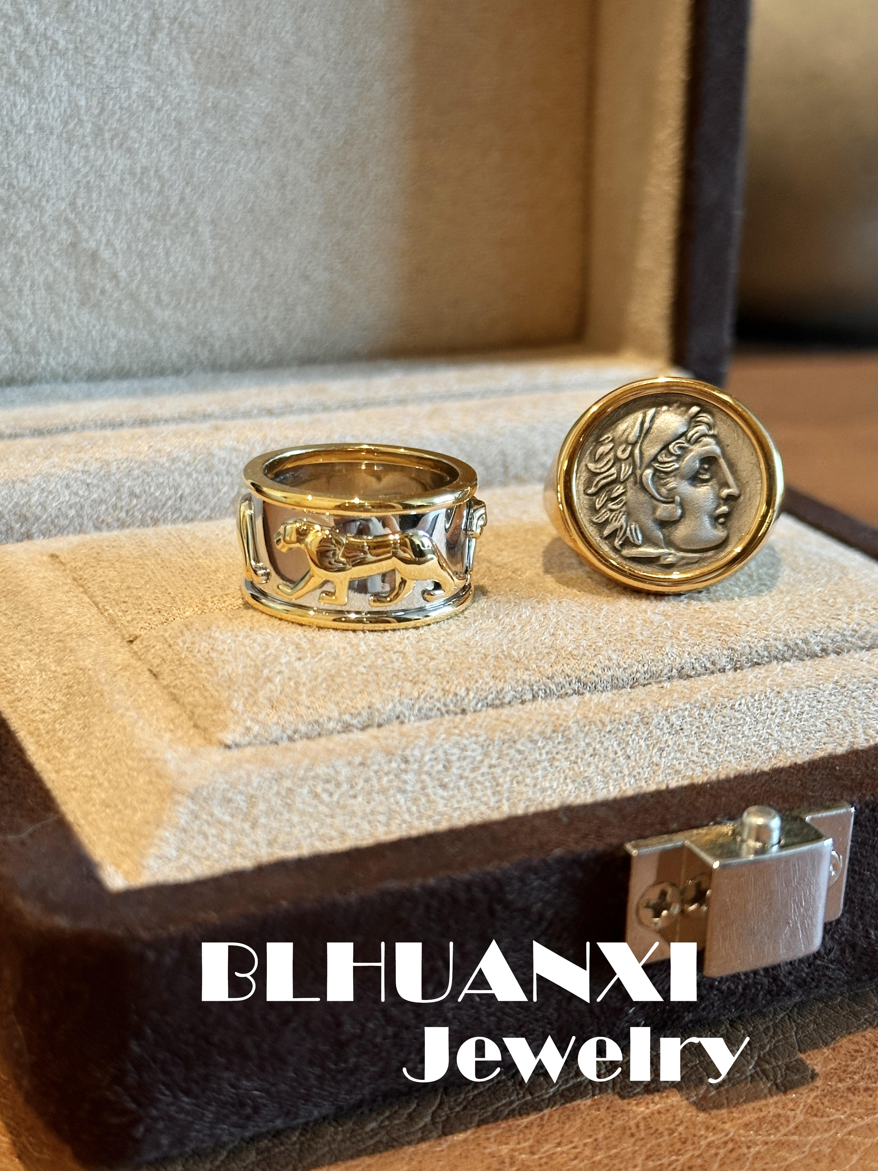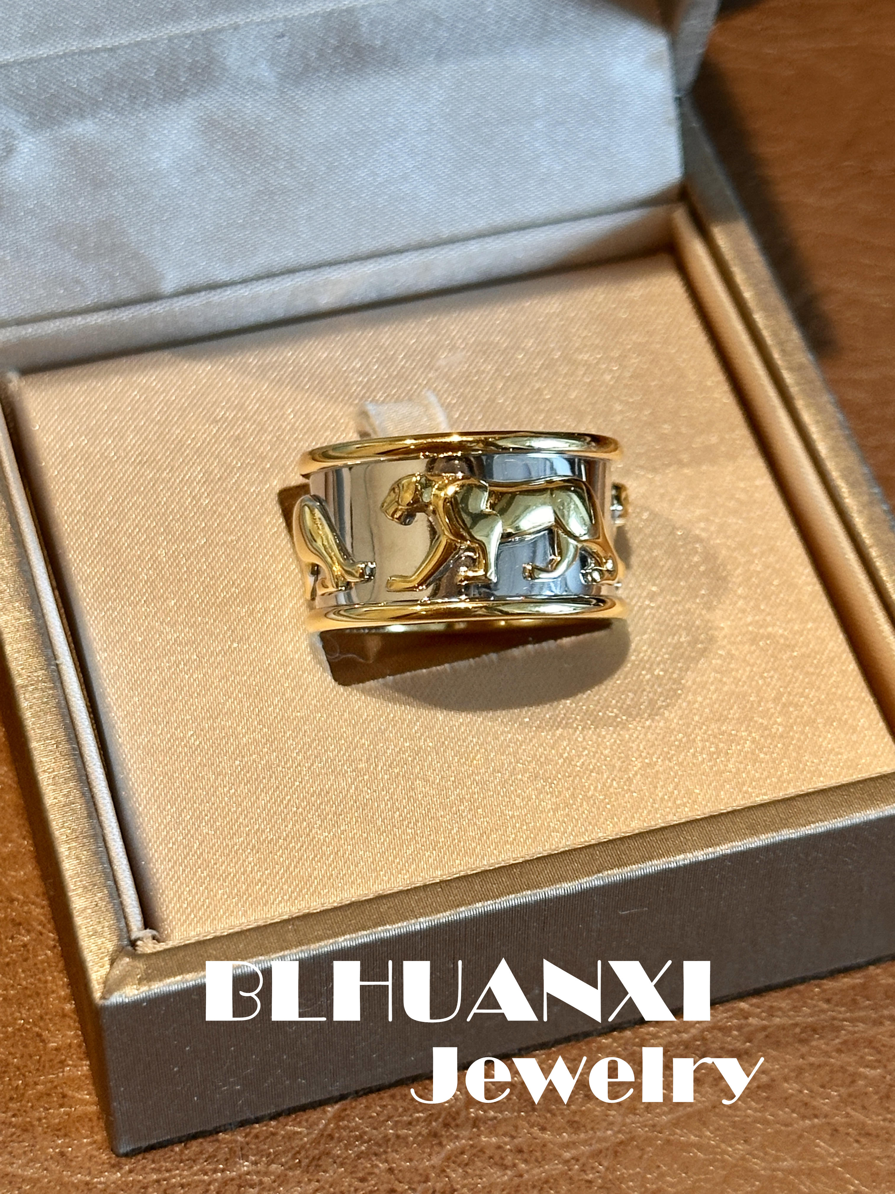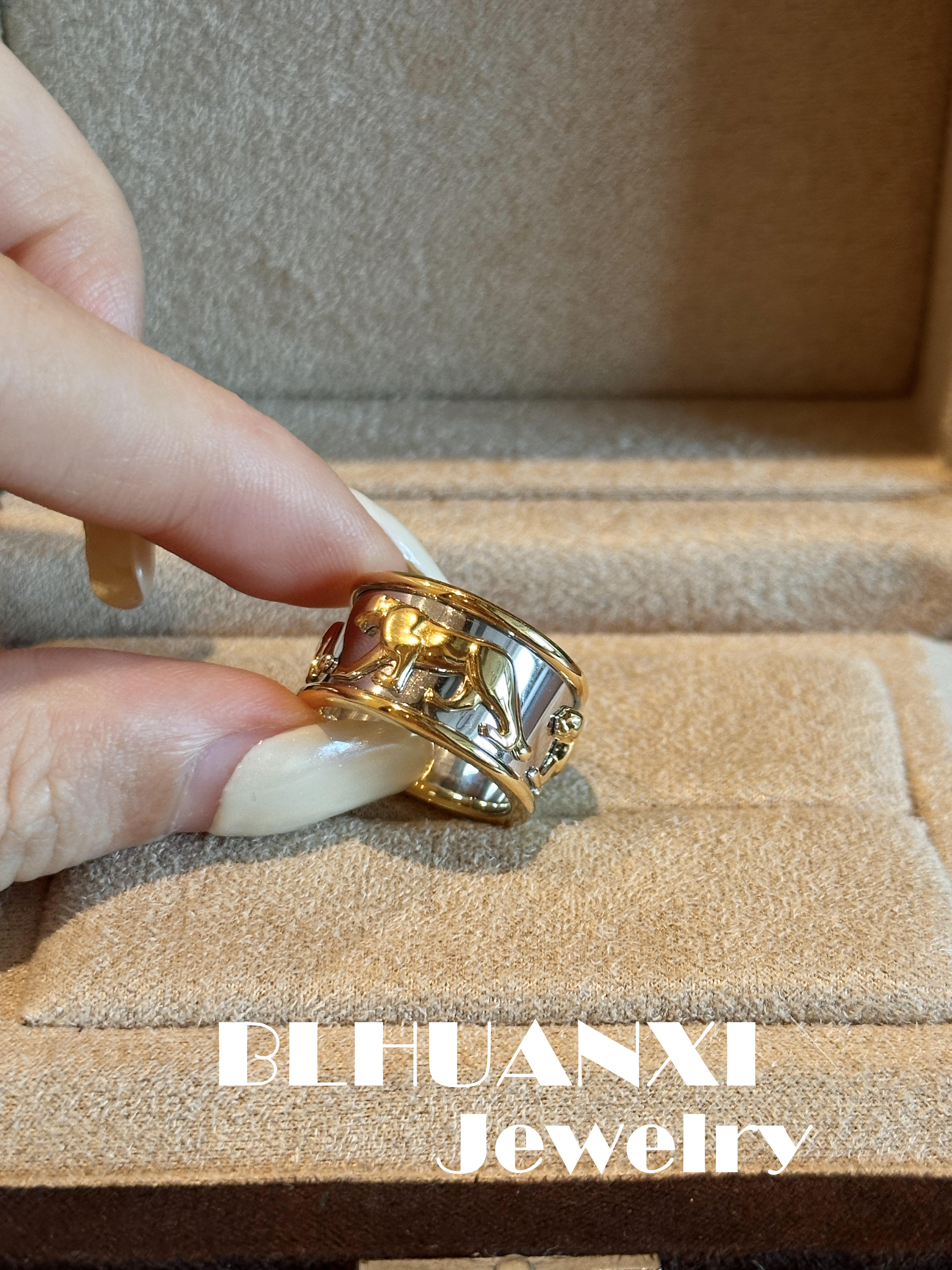【Look for Joy】925 Silver Gold-Plated Vintage Leopard Heavy-Duty Silver Ring
