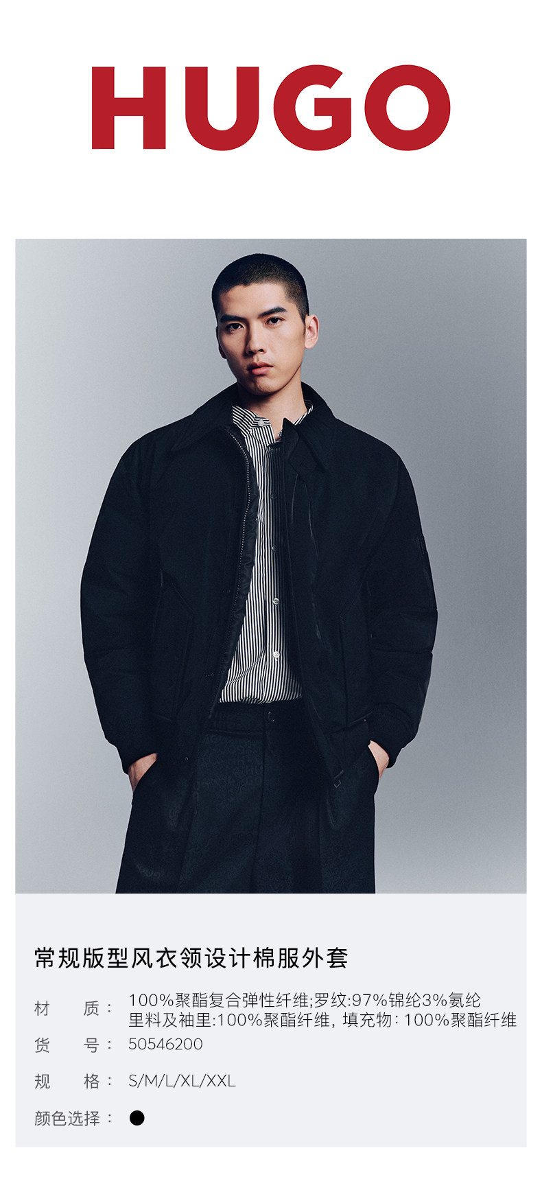 Hugo Men's Regular Fit Windbreaker Collar Design Jacket Cotton Coat