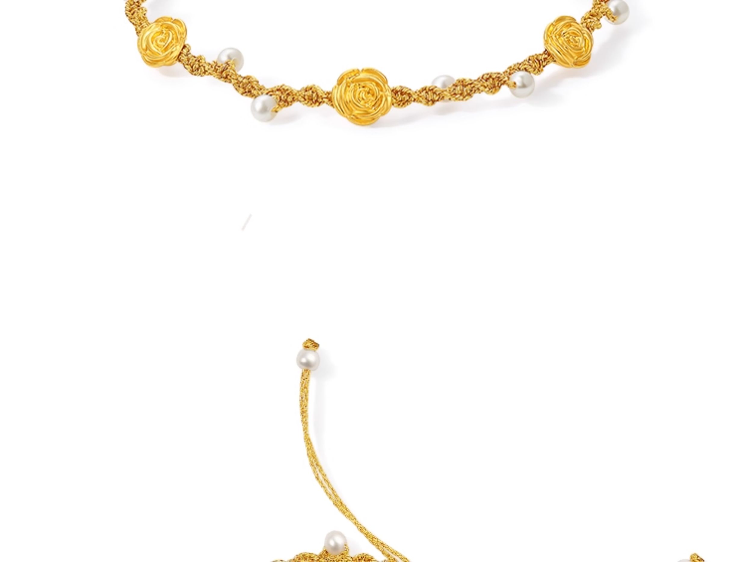 Zhou Liufu Gold 5d Hard Gold Freshwater Pearl Hand Rope Women's Rose Pricing Bracelet Gymnoson Official Gift
