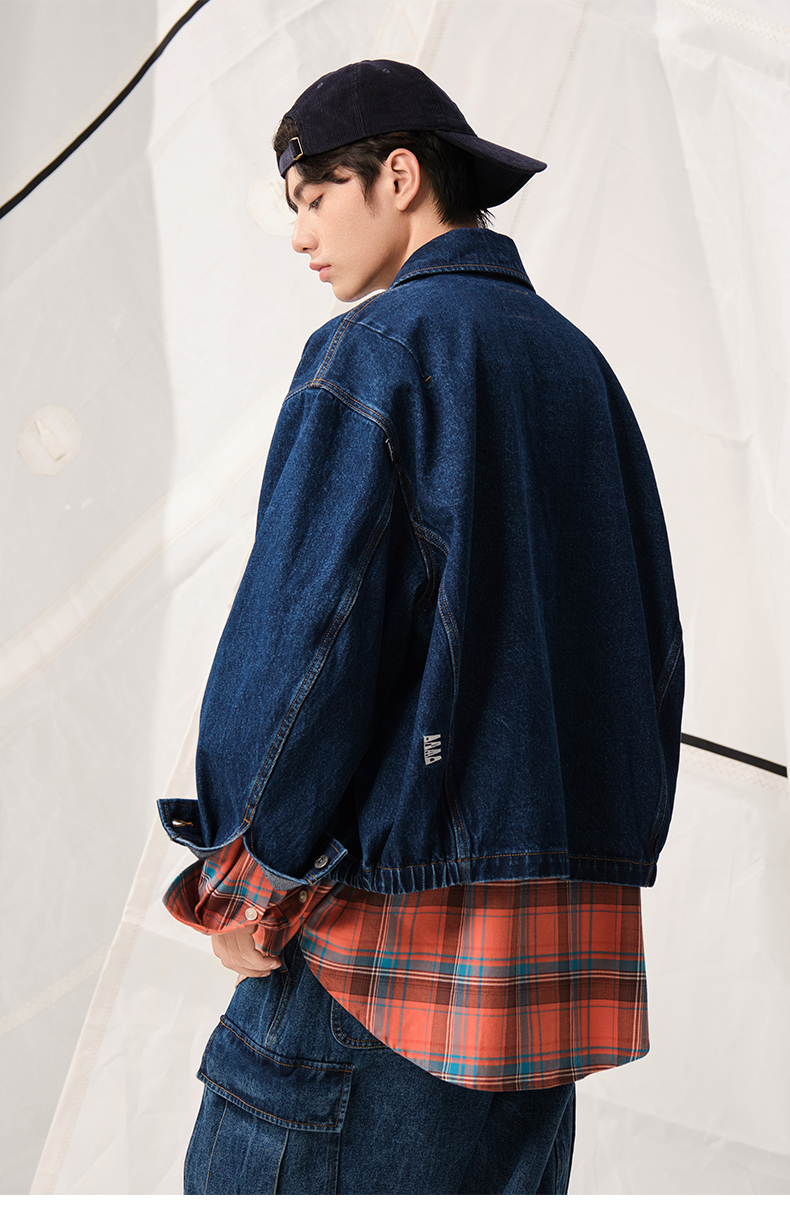[Cai Xukun Same Section] nautica White Fan Loose Plaid Trendy Cowboy Outwear jacket JW5317