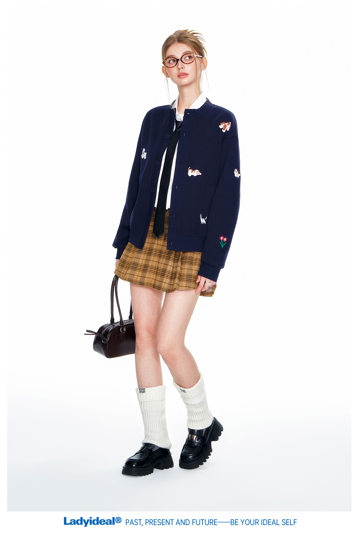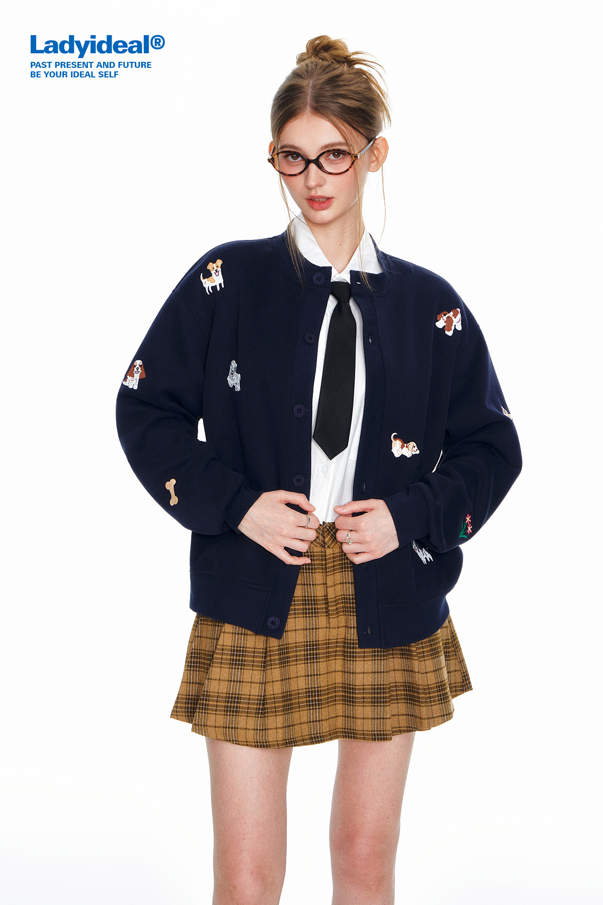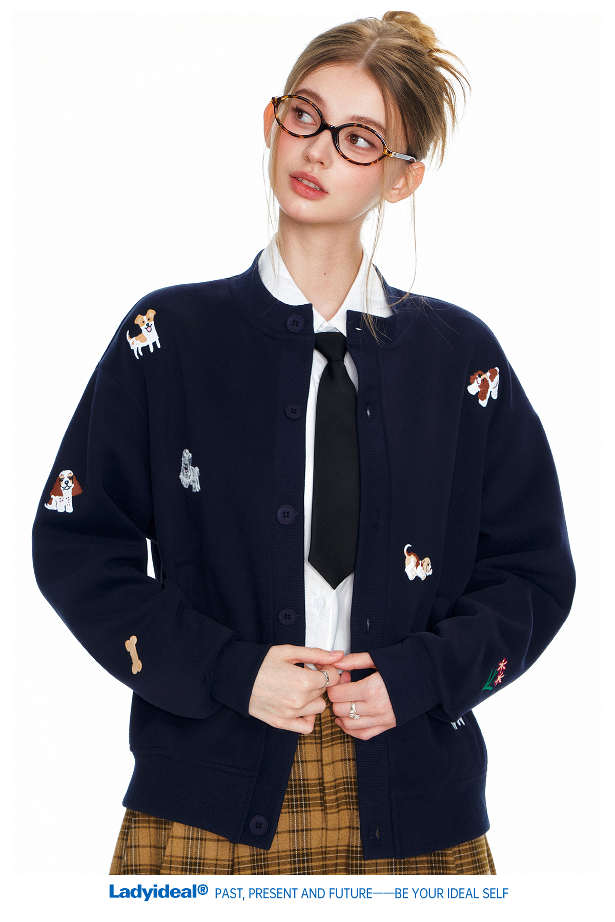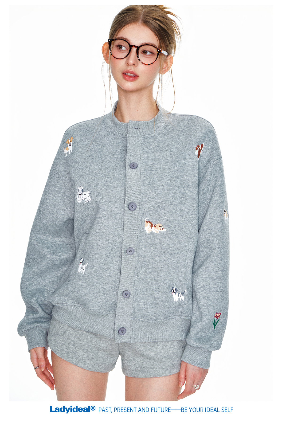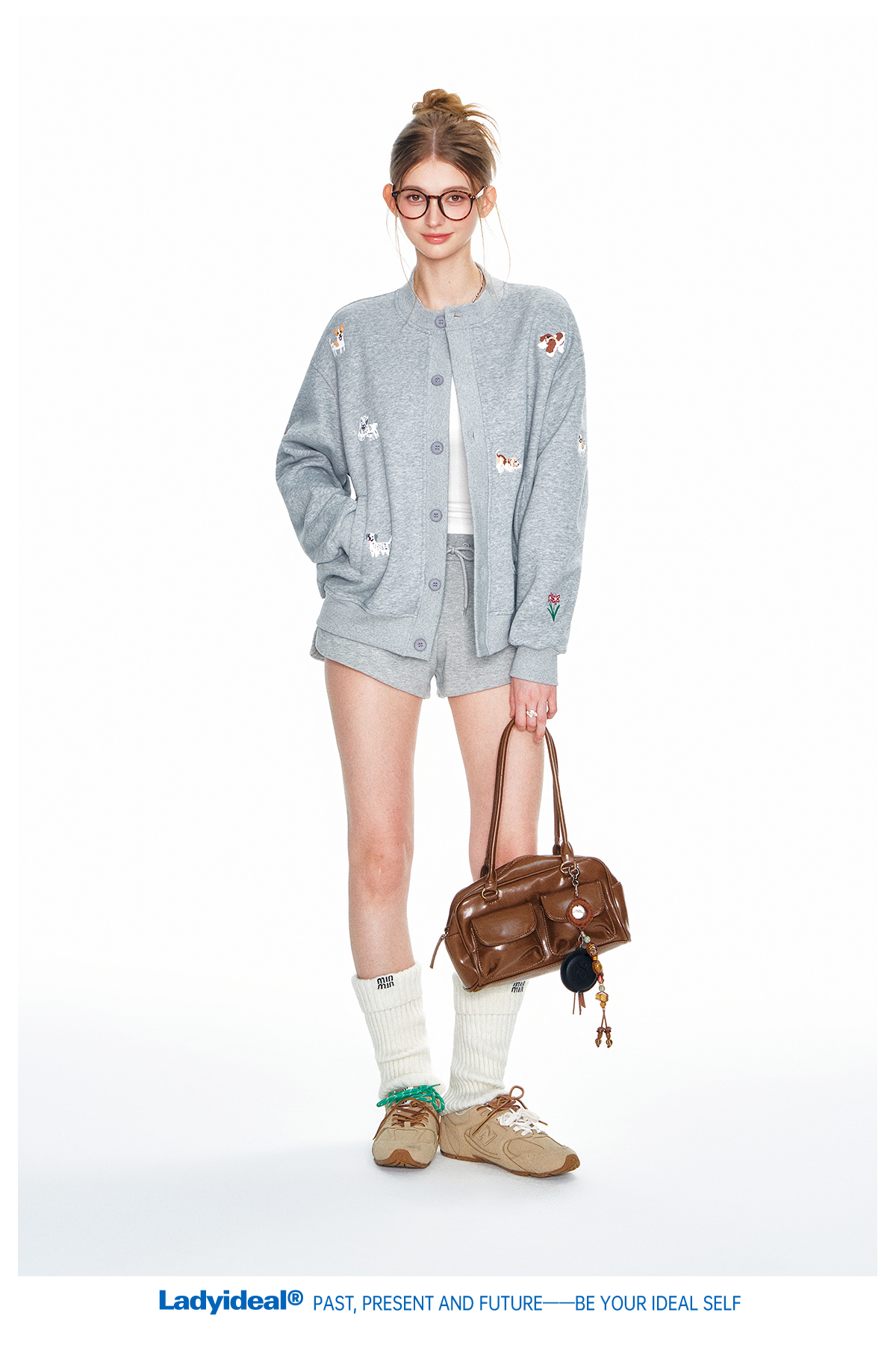 Lady Ideal American-Style Heavyweight 400g Crew Neck Sweatshirt Jacket for Women, New Loose Knit Cardigan for Spring and Autumn