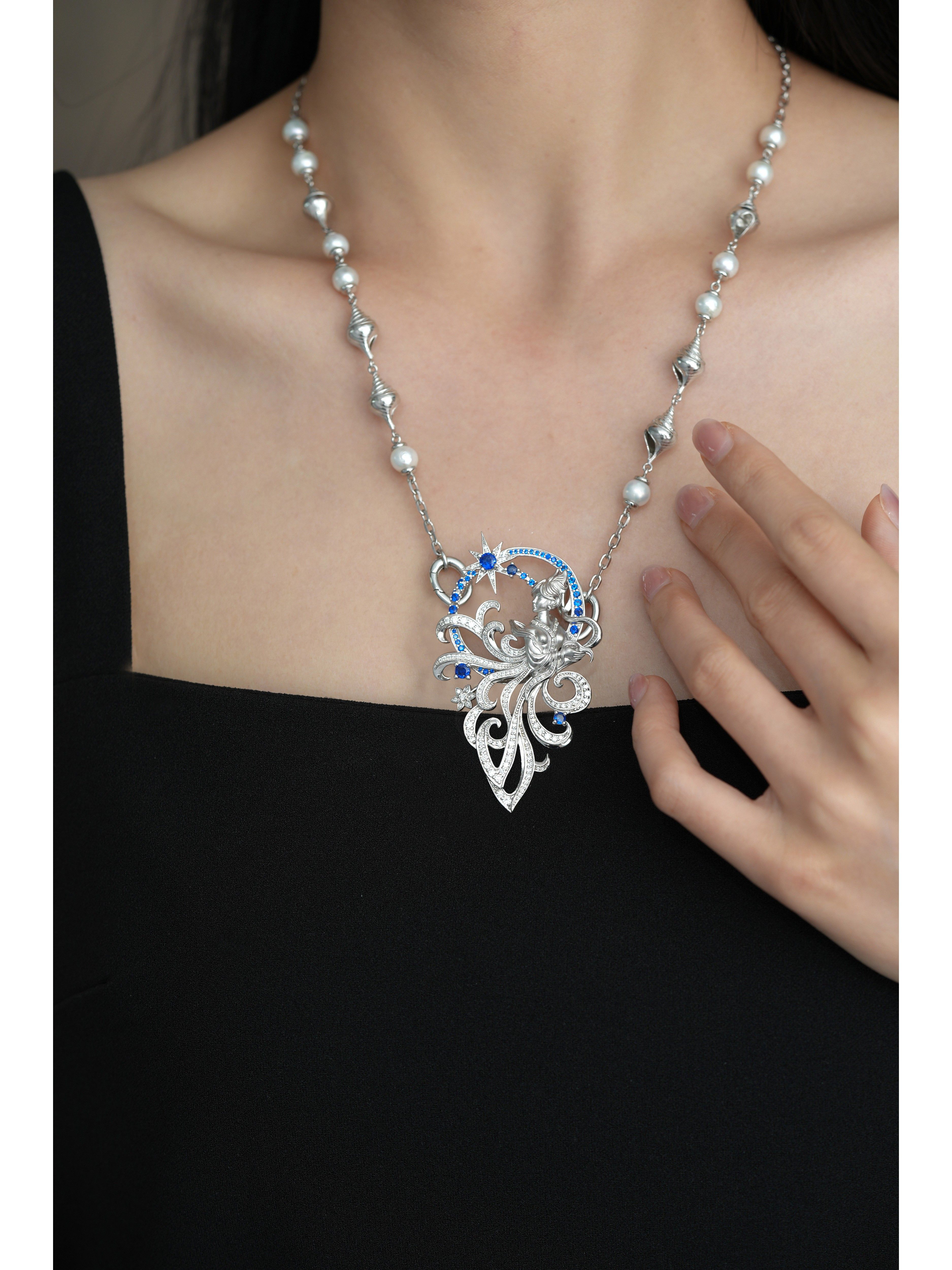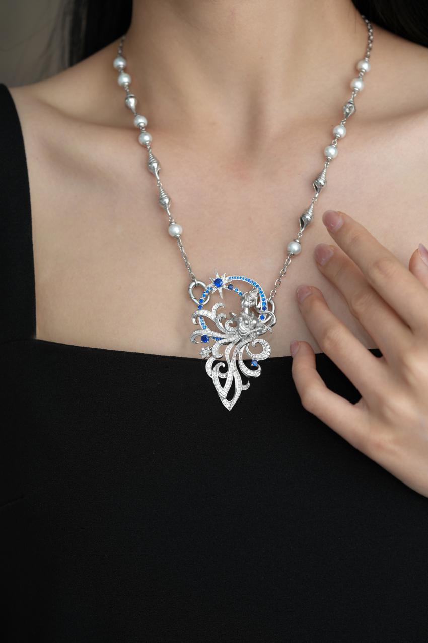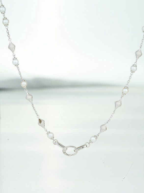 Conch Pearl Double Buckle Universal Chain 925 Silver Dreamy Design Pure Silver Plated with Real Gold [Chain Only]