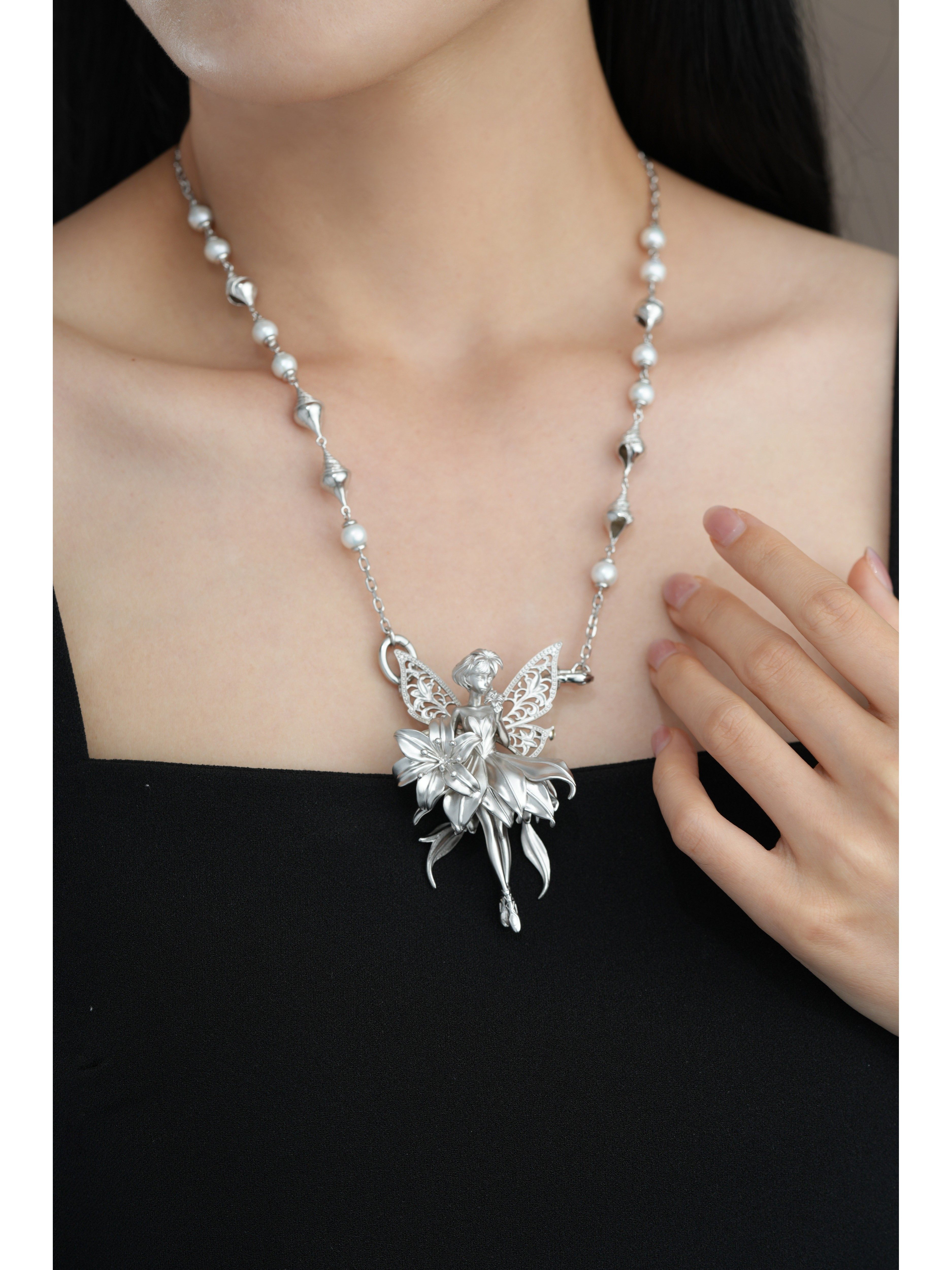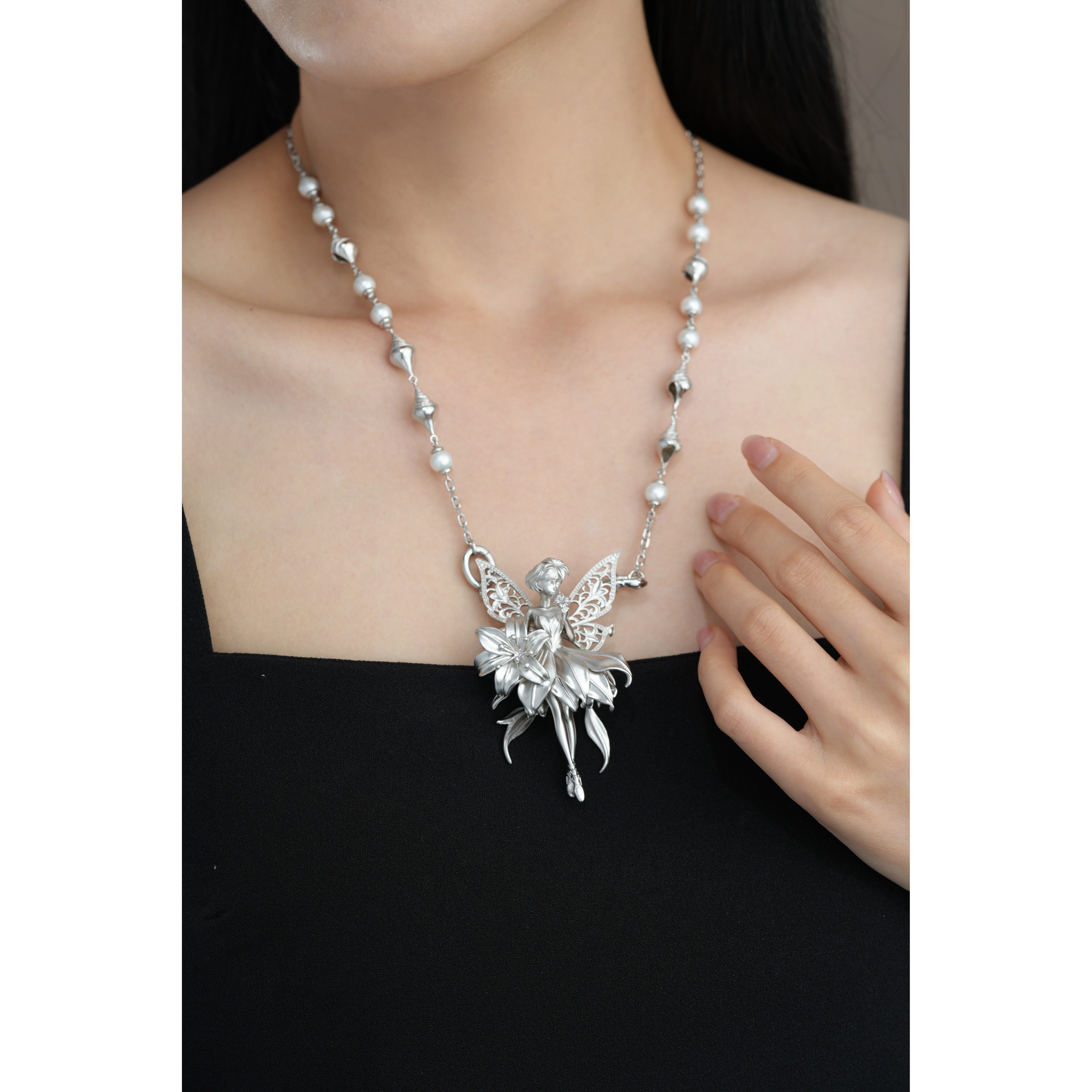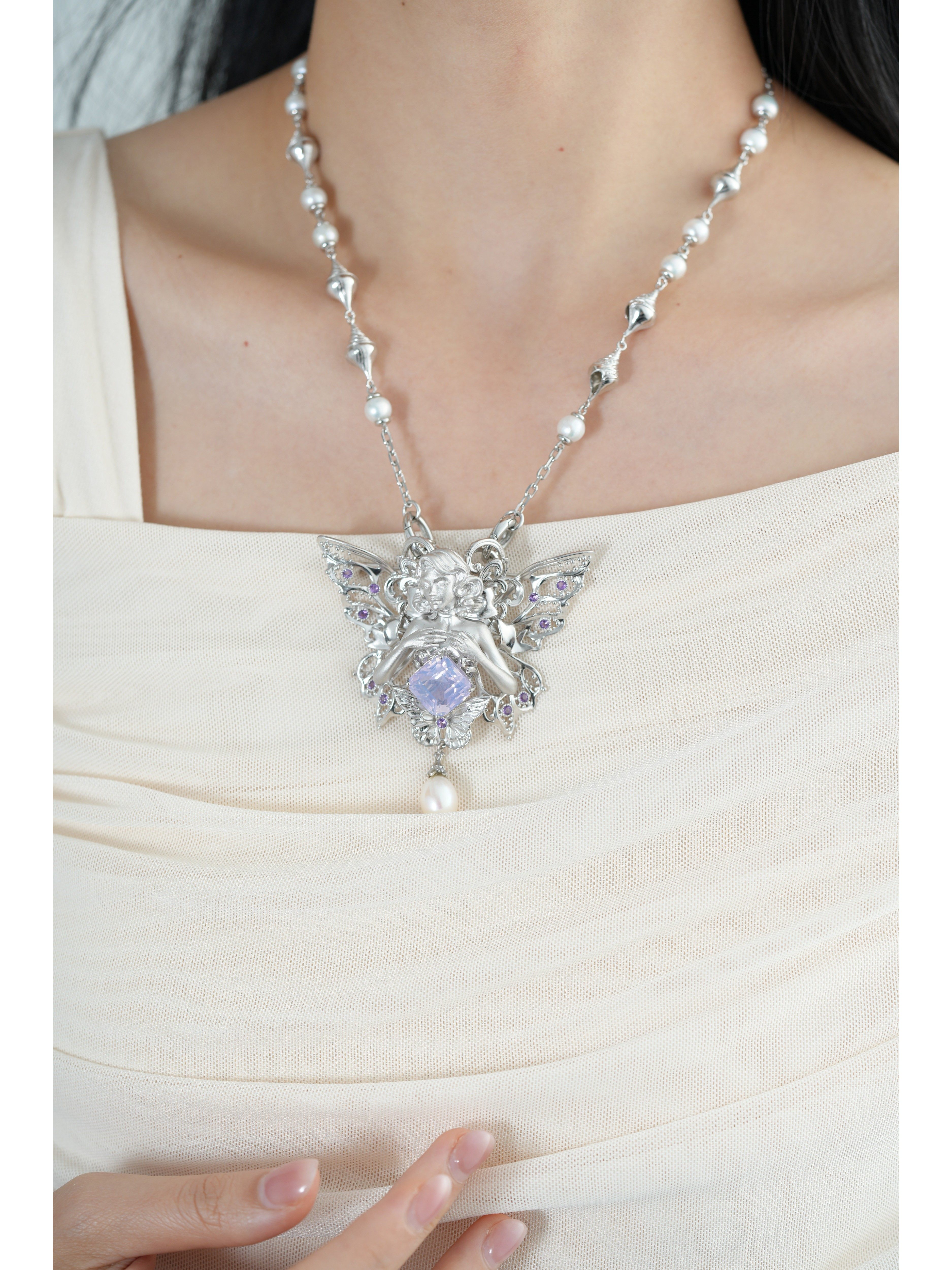 Conch Pearl Double Buckle Universal Chain 925 Silver Dreamy Design Pure Silver Plated with Real Gold [Chain Only]