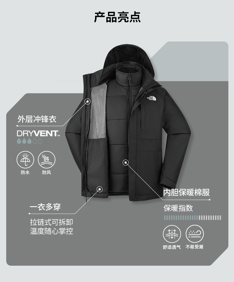 [Classic Model] the North Face Men's Cotton Jacket 3-in-1 Waterproof and Warm Thenorthface | 8Gjx