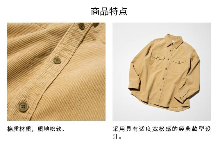 Uniqlo Men's and Women's Corduroy Work Shirts Long-Sleeved Shirts Casual Retro 25 Autumn and Winter New Style 480295