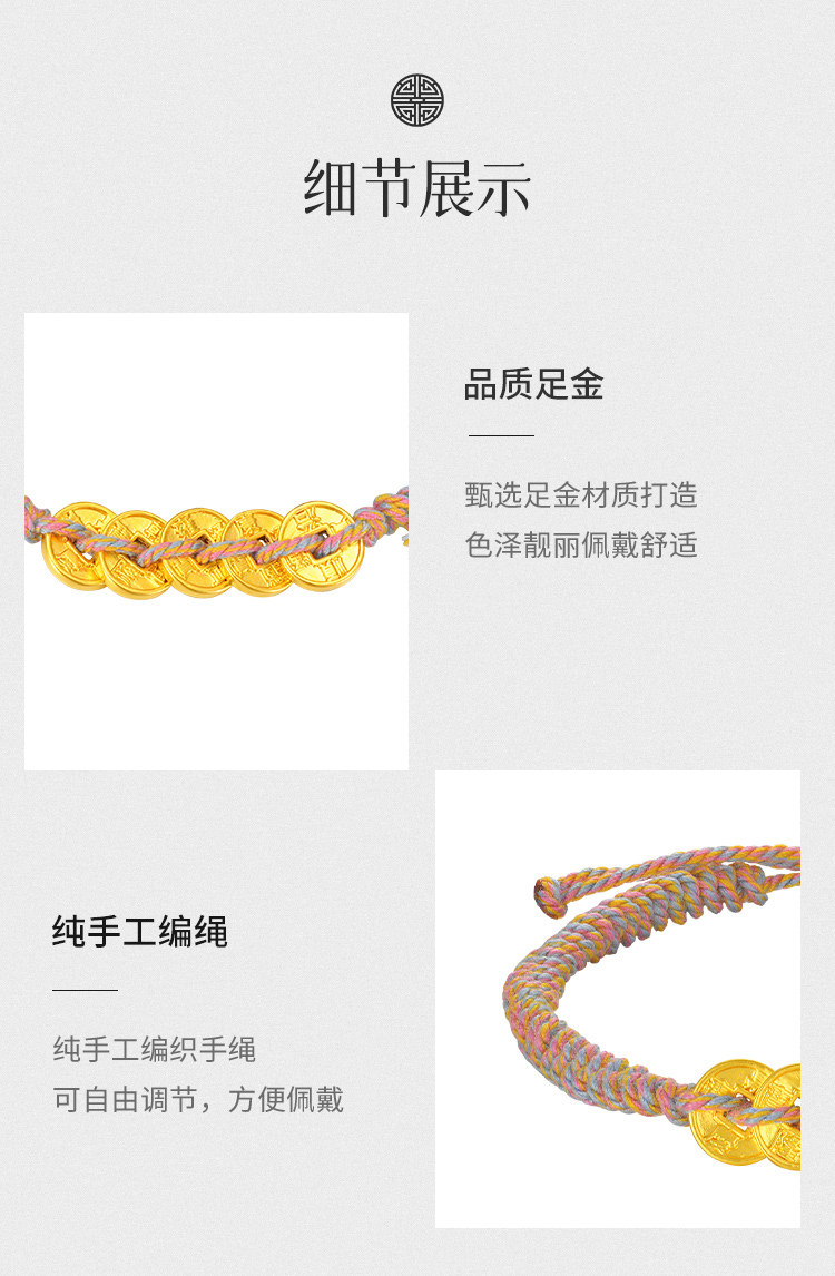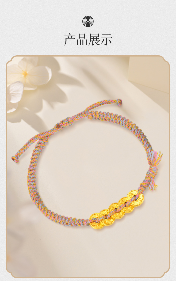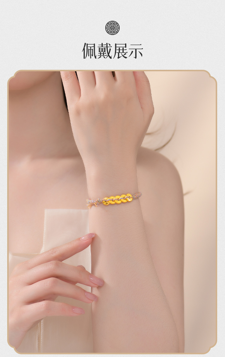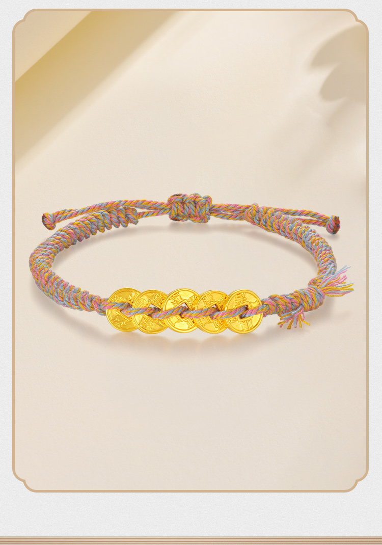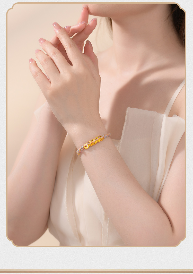 Pure Gold Five Emperors Coin Bracelet, Five Emperors Money Gold Bracelet, Coin Woven Bracelet, Pure Gold Copper Coin Fortune Bead Bracelet