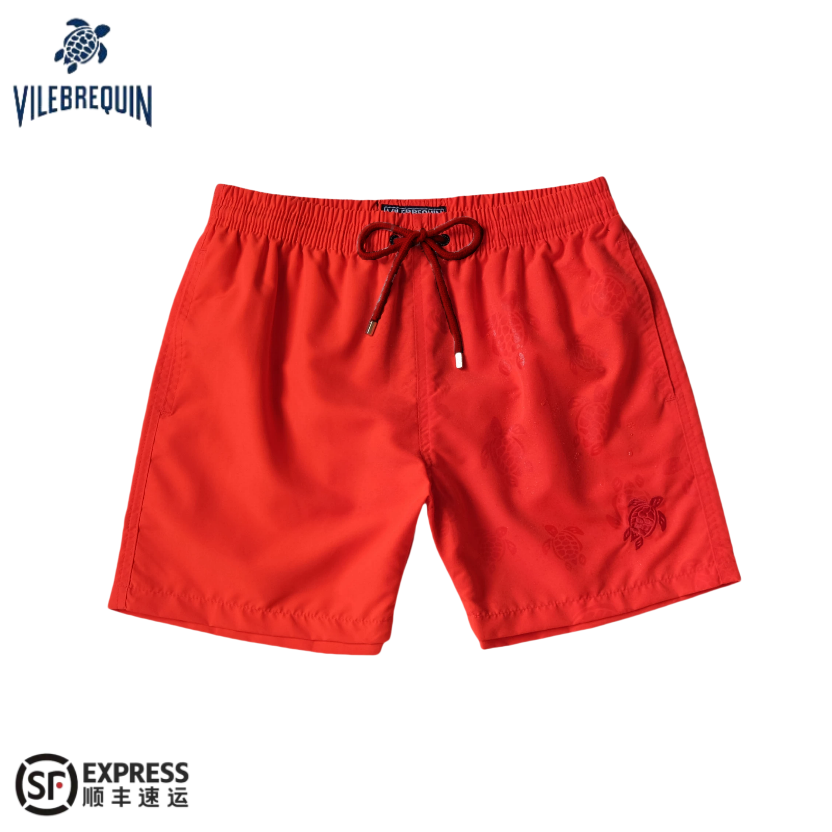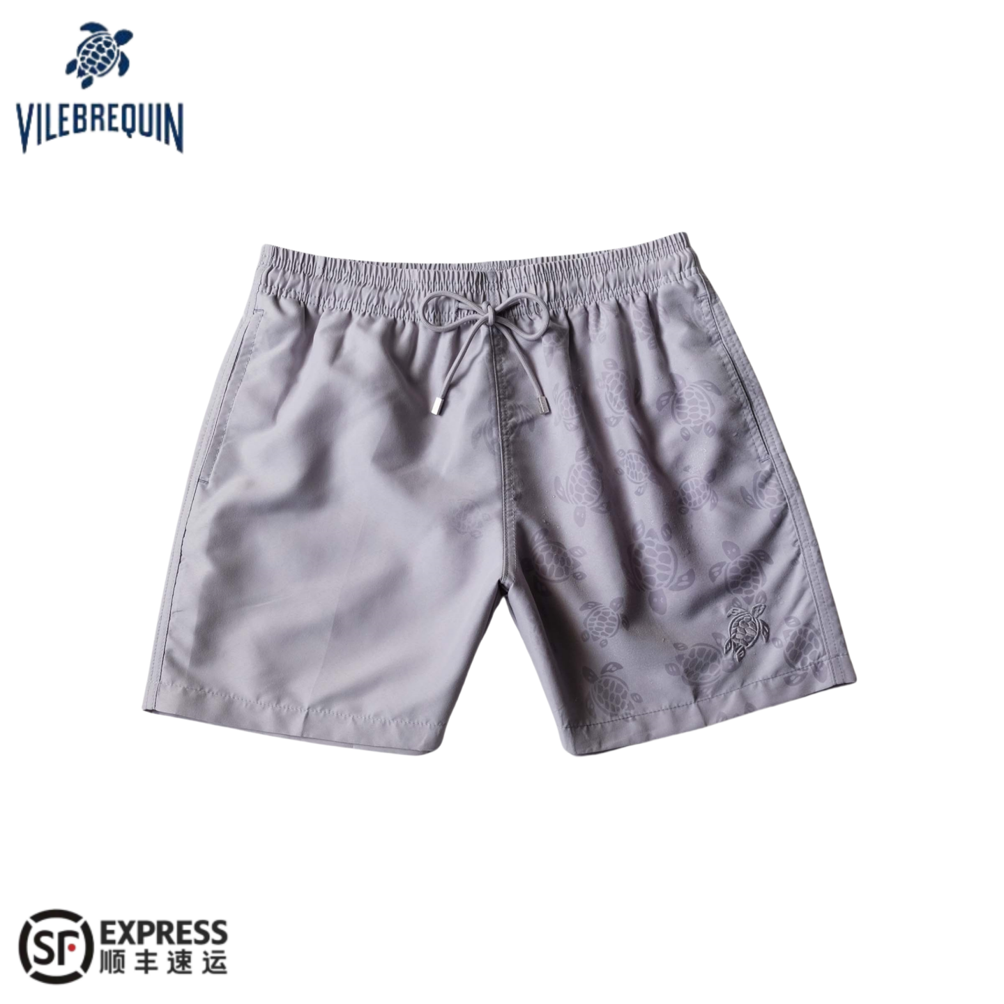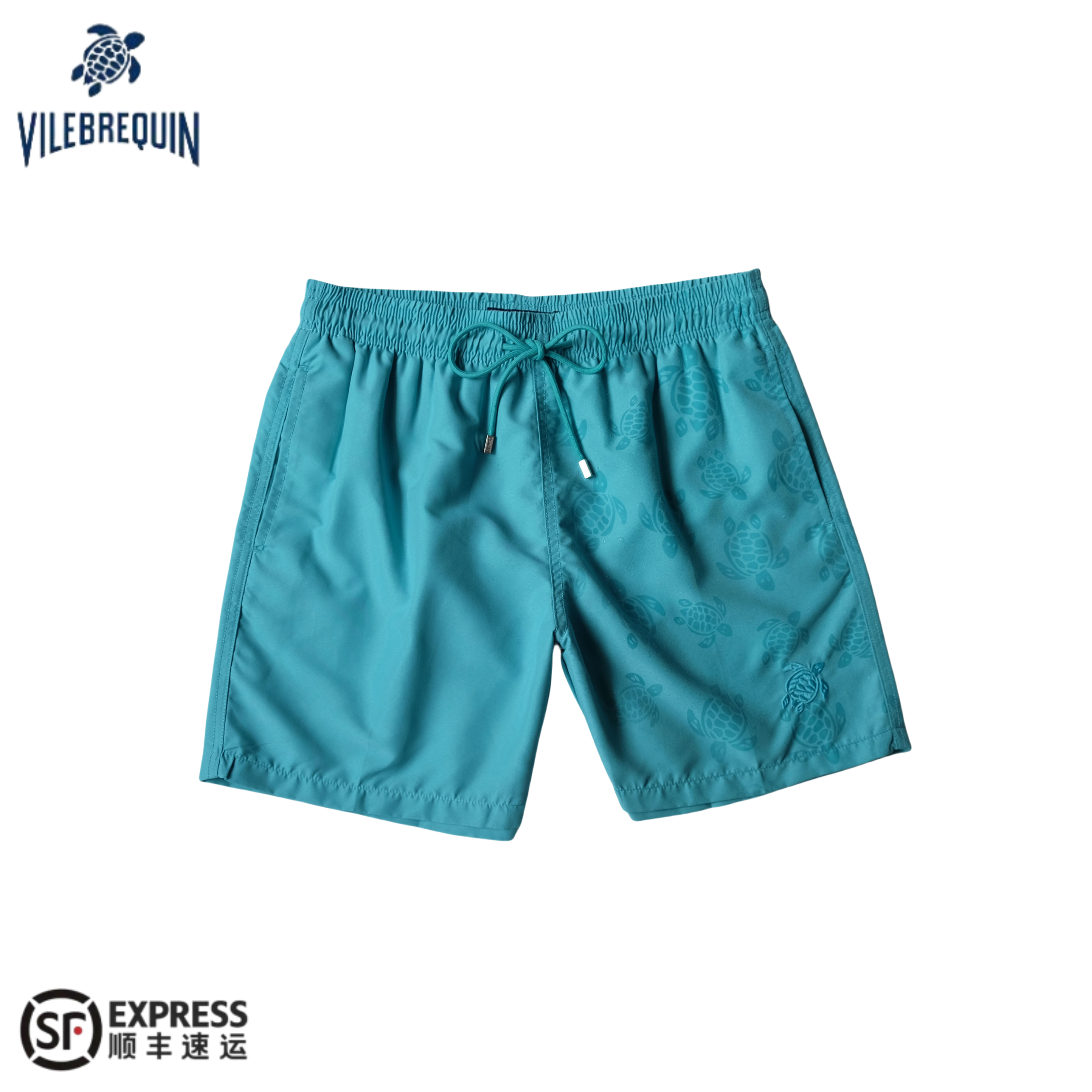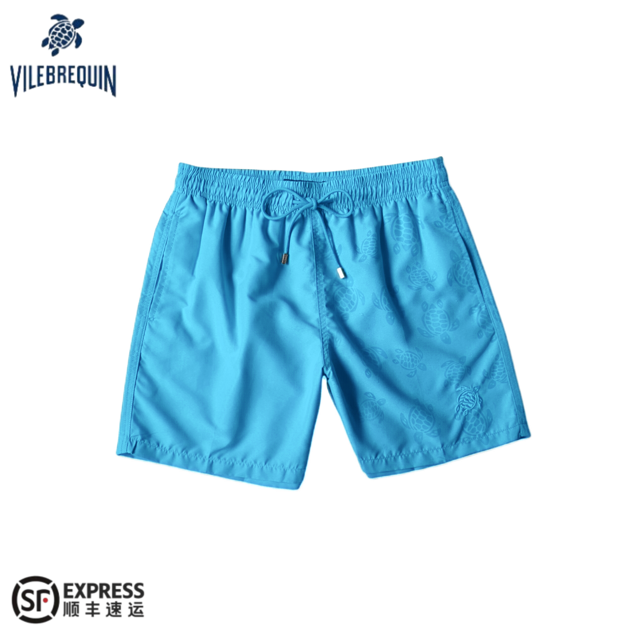 Vilebrequin Genuine Beach Shorts for Men, Turtle Solid Color Swim Trunks with Lining, Vacation Seaside Embroidered Hot Spring Shorts