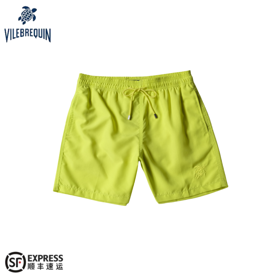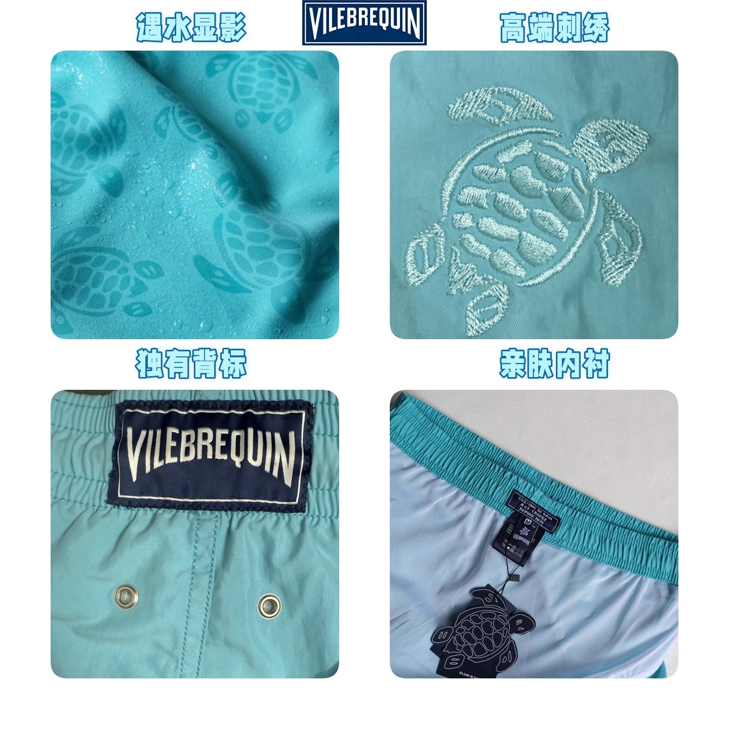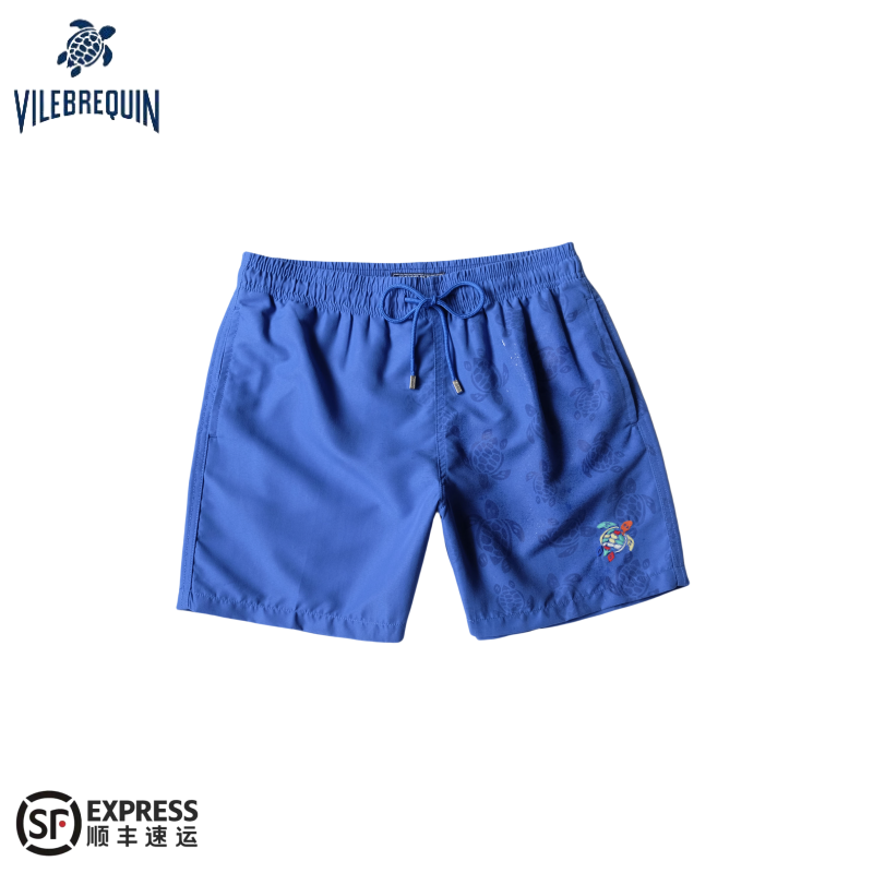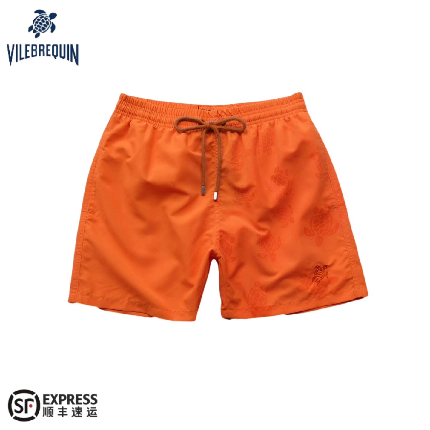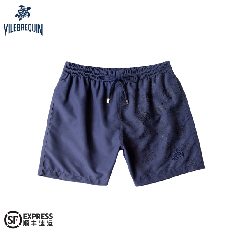 Vilebrequin Genuine Beach Shorts for Men, Turtle Solid Color Swim Trunks with Lining, Vacation Seaside Embroidered Hot Spring Shorts