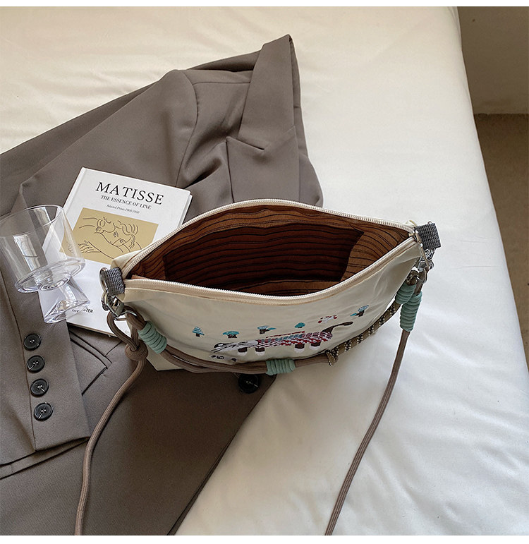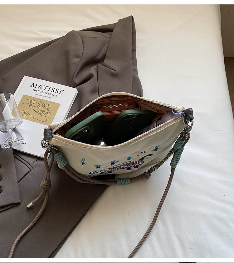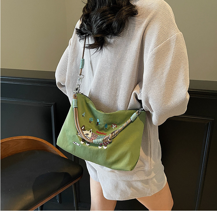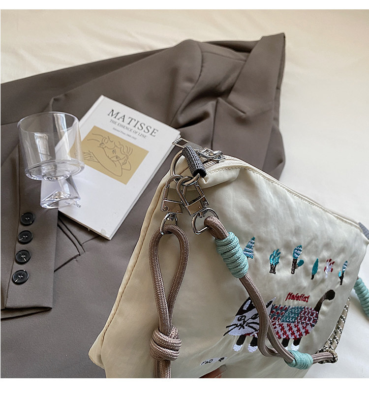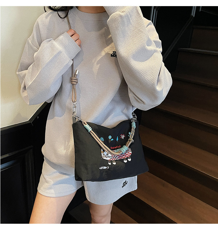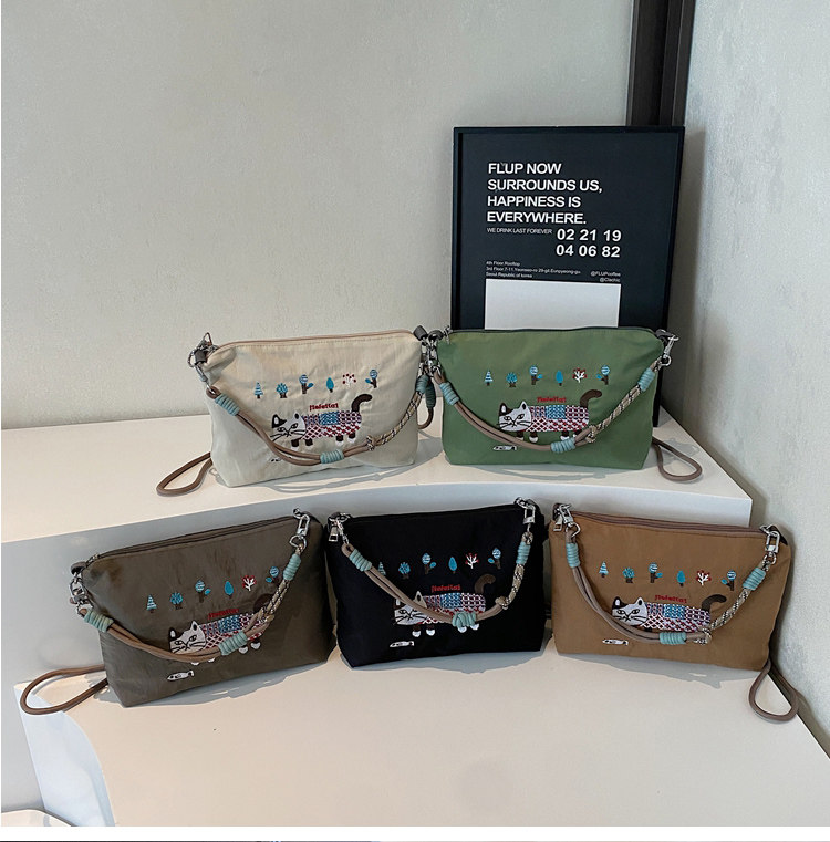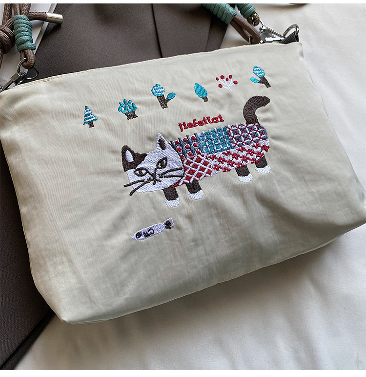 Japanese Authentic Ball Chain Embroidered Cat Nylon Tote Bag, Versatile Crossbody Bag for Commuting, Shoulder Bag