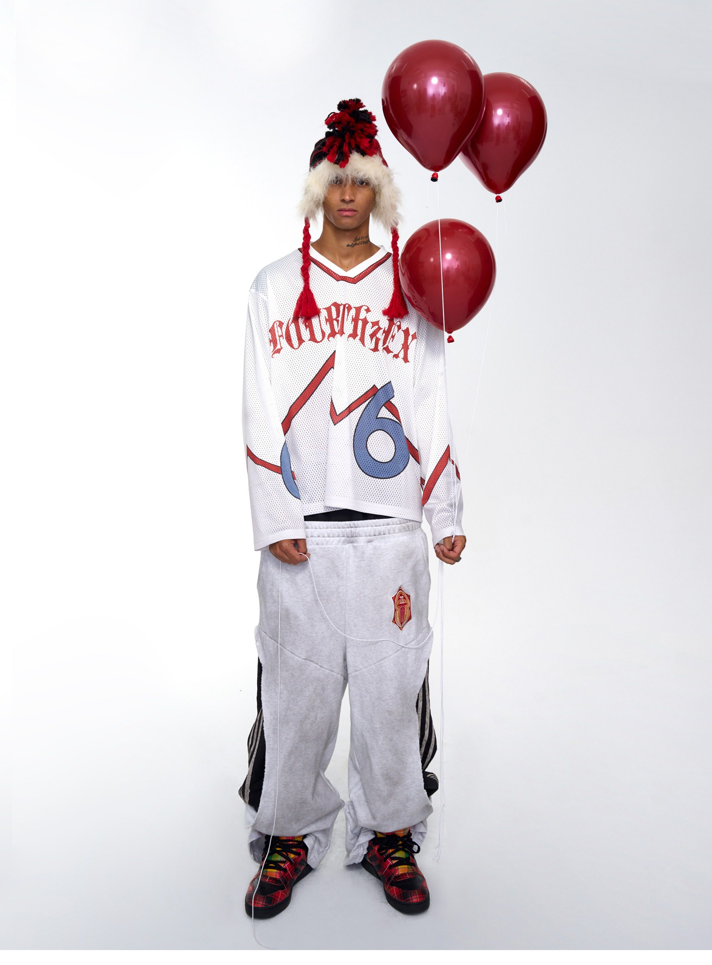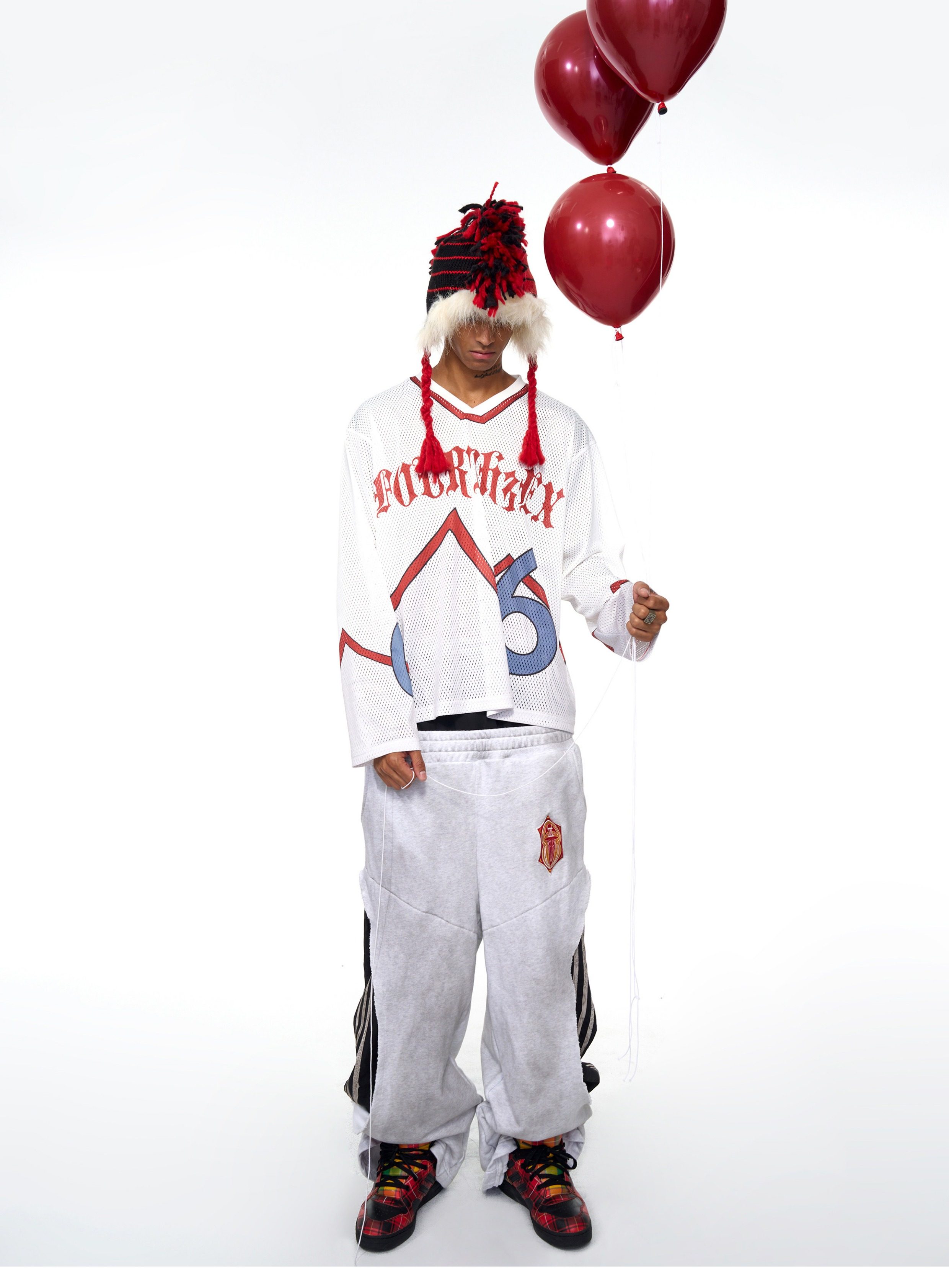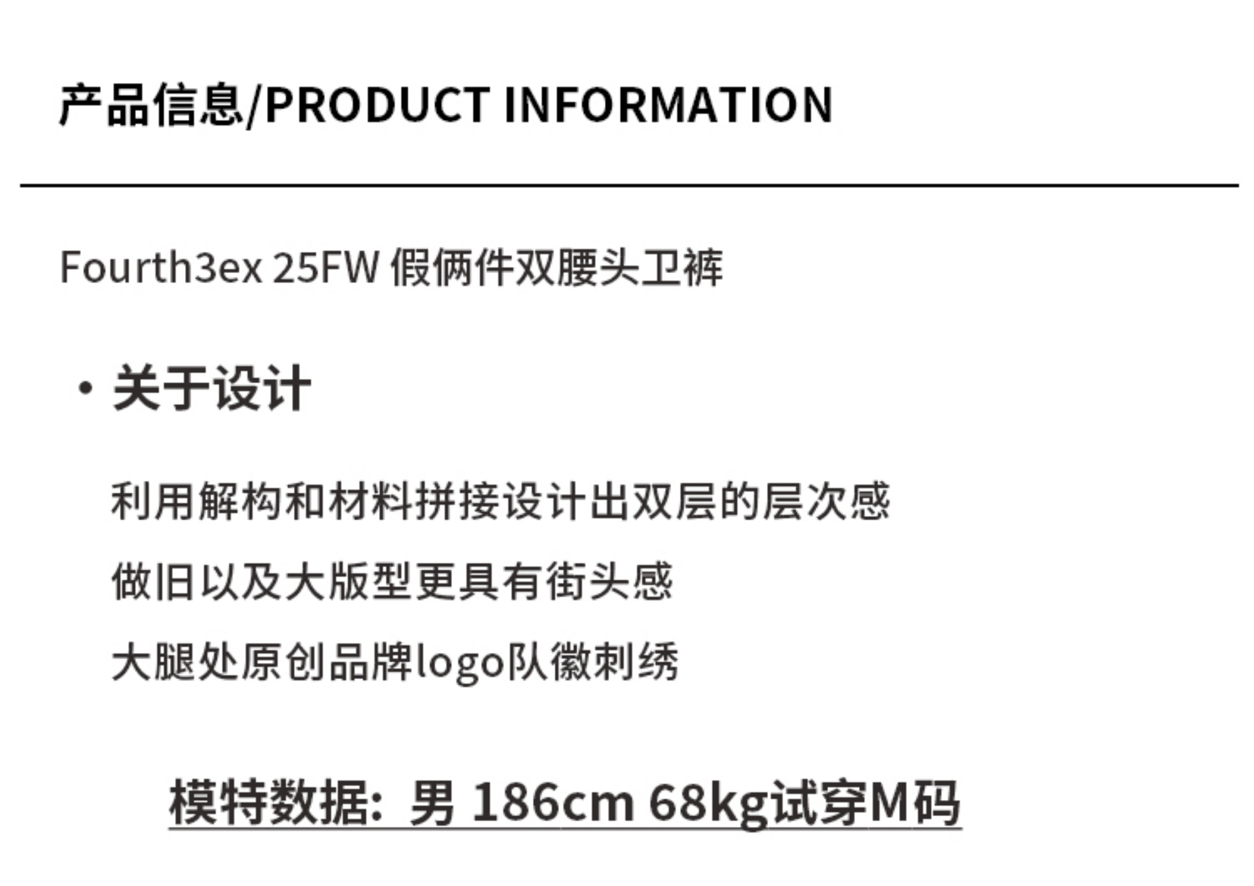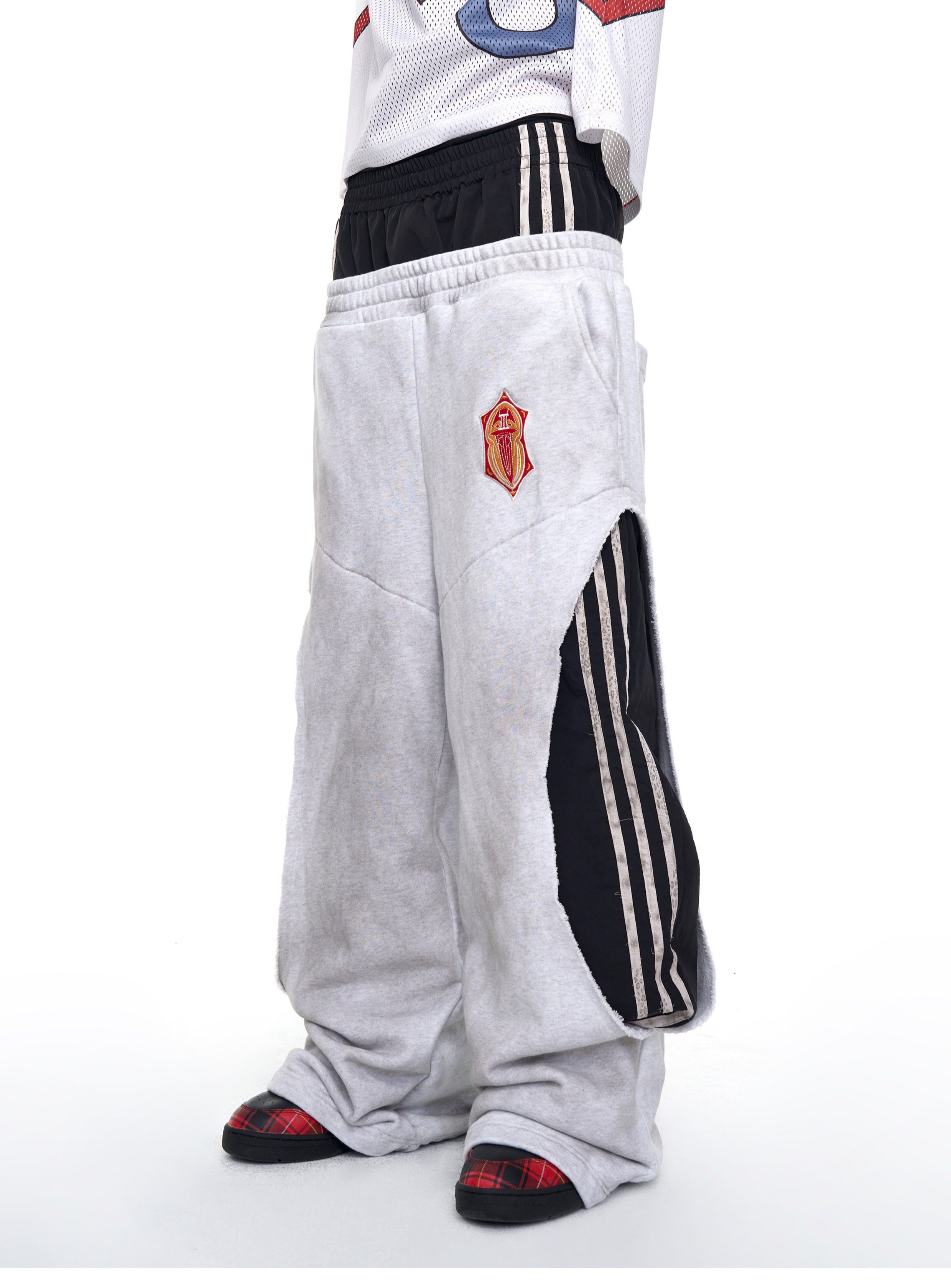 Fourth3Ex 25Fw Fake Two-Piece Double Waistband Sweatpants for Men, Autumn Three-Stripe Patchwork Color-Block Wide-Leg Pants