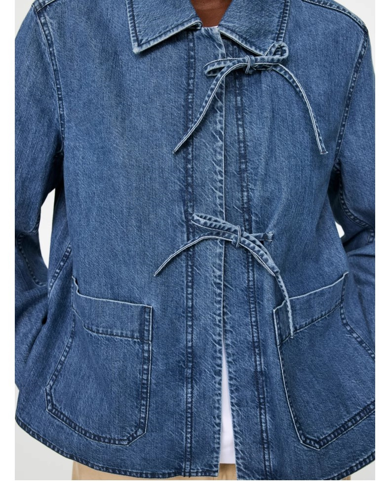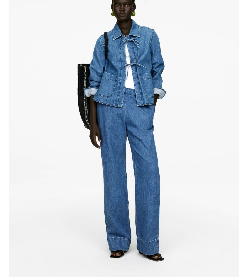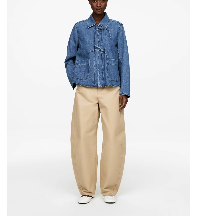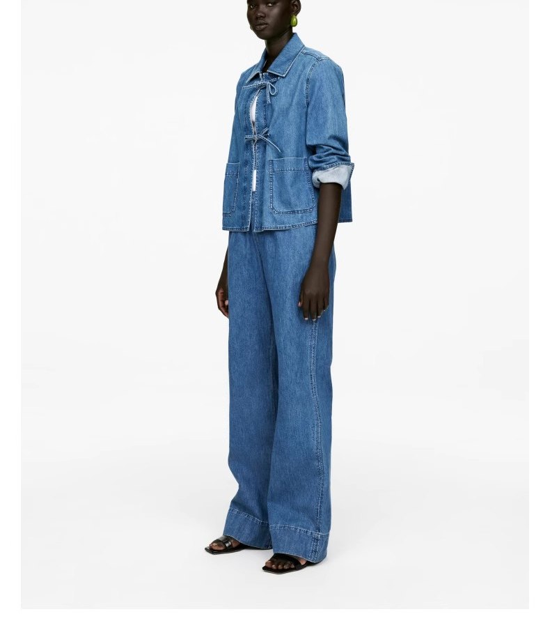 Autumn Loose Lace-Up Denim Jacket 1268488 Mid-Waist Straight Wide-Leg Pants 1268300