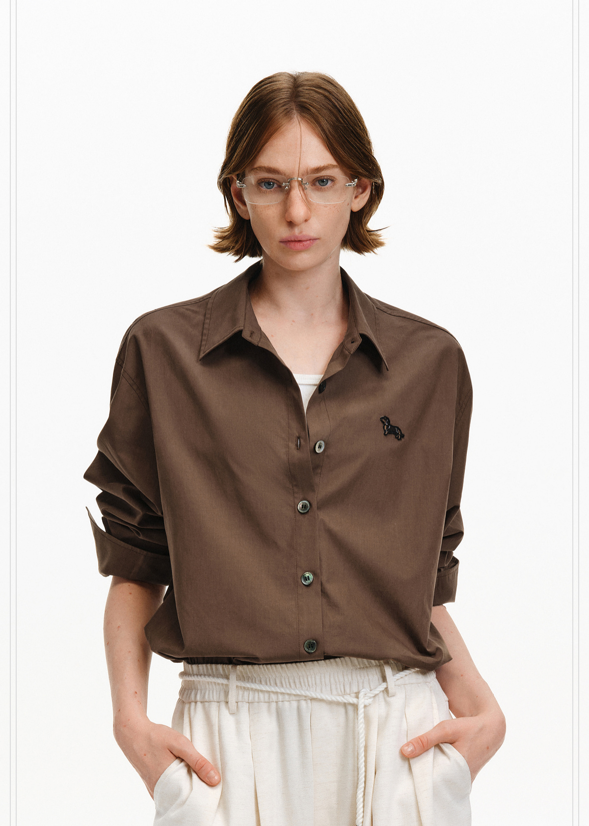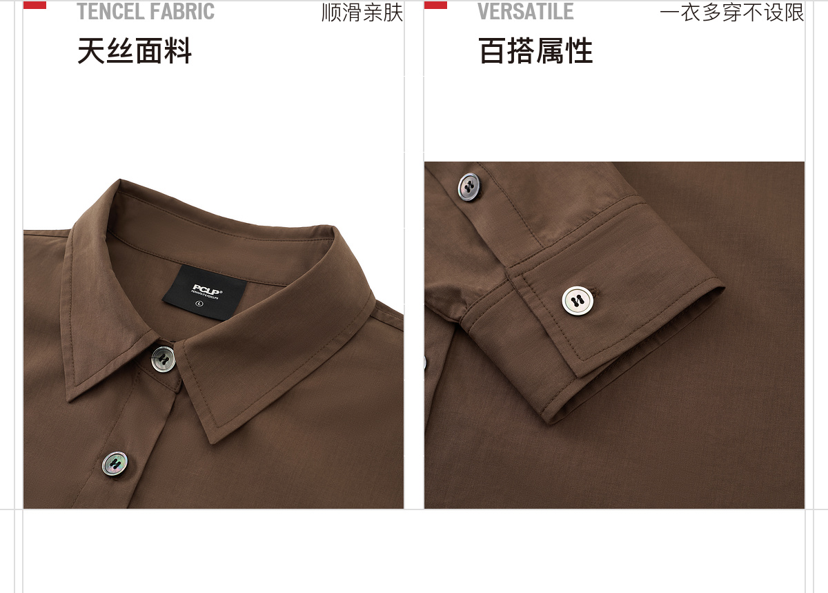 Pclp Tencel Cotton Long-Sleeved Shirt, Trendy Brand with Unique Design, Loose Casual Versatile Long-Sleeved Shirt for Autumn and Winter