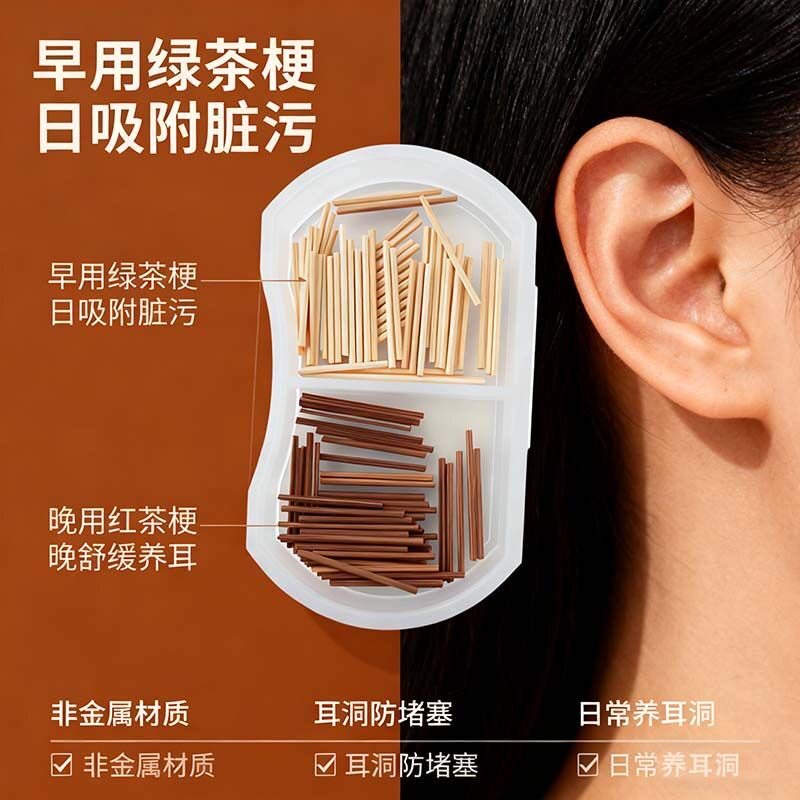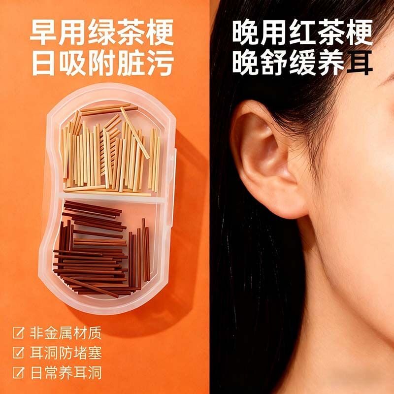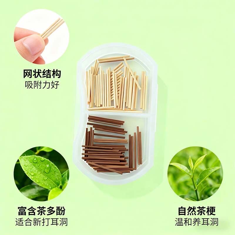 Tea Leaf Ear Sticks for Ear Care, Natural Green Tea Ear Studs, Gentle for Sleeping, No Need to Remove, Prevents Ear Blockage, Plant-Based Ear Rods for Students