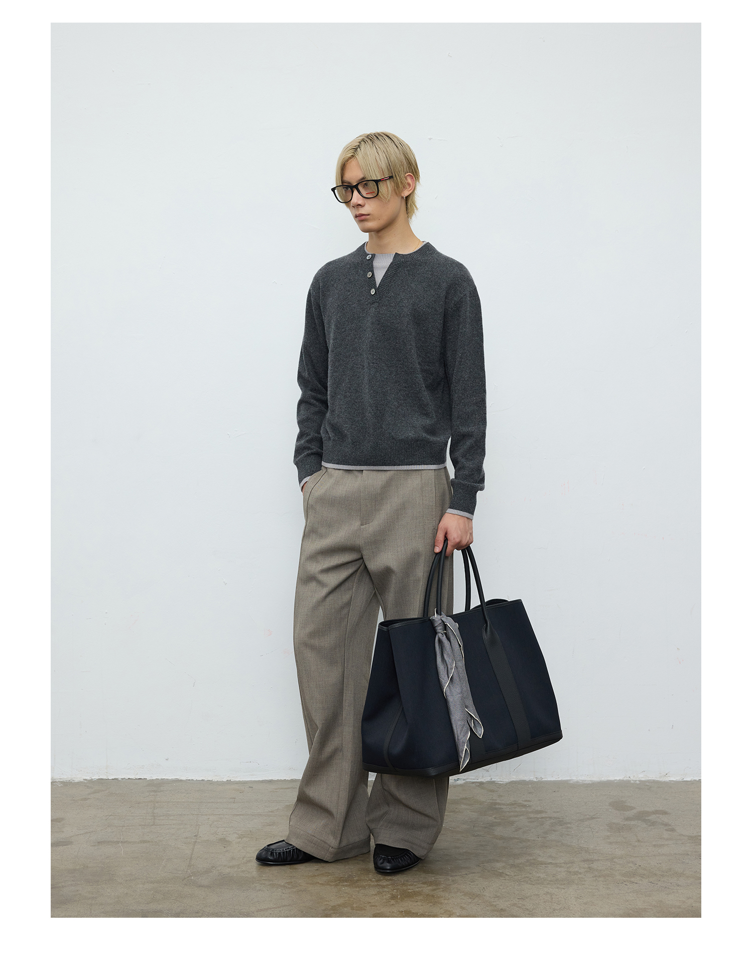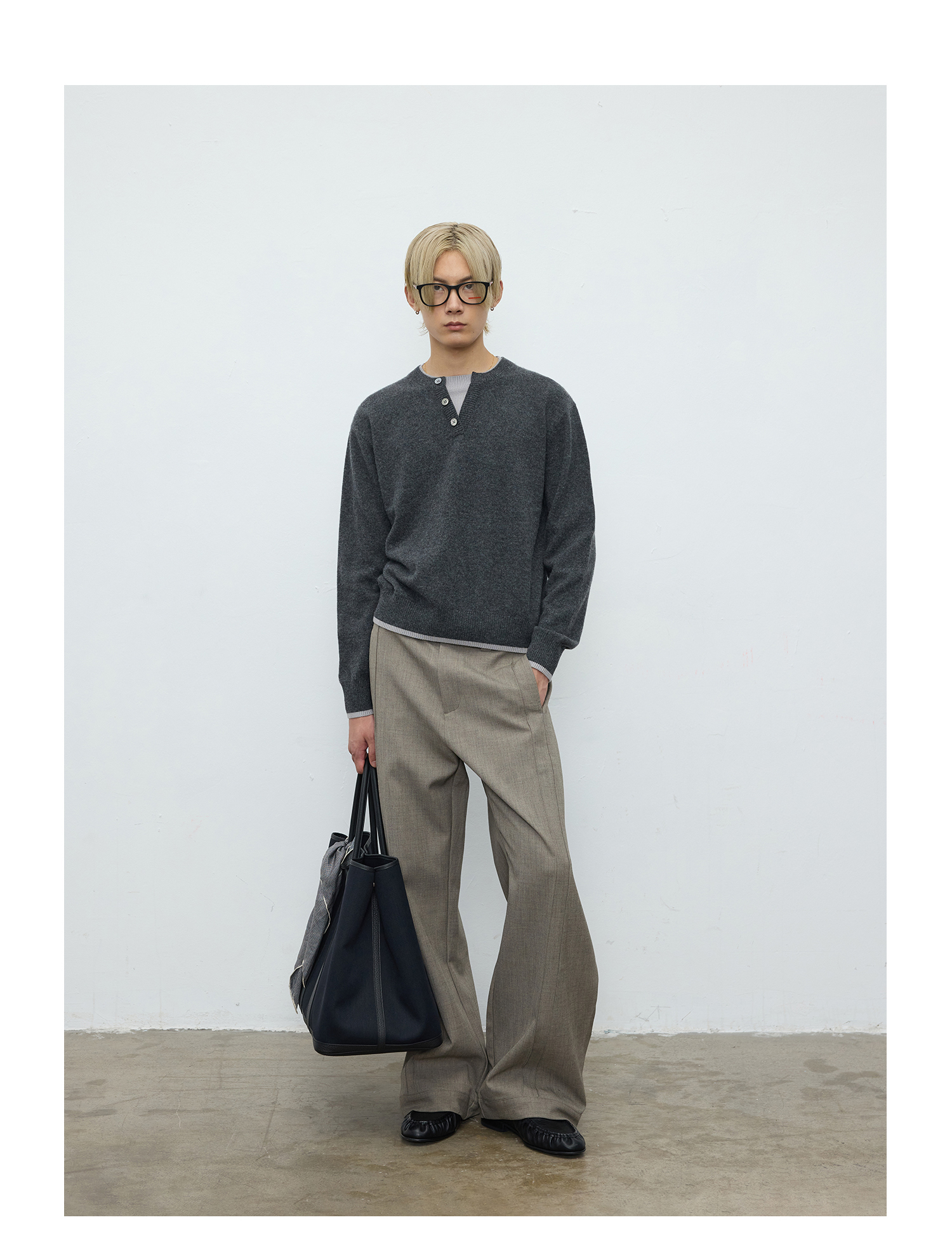 Fake Two-Piece Wool Sweater with Henry Collar, Versatile for Commuting, Terraincognita25Awnico Same Style