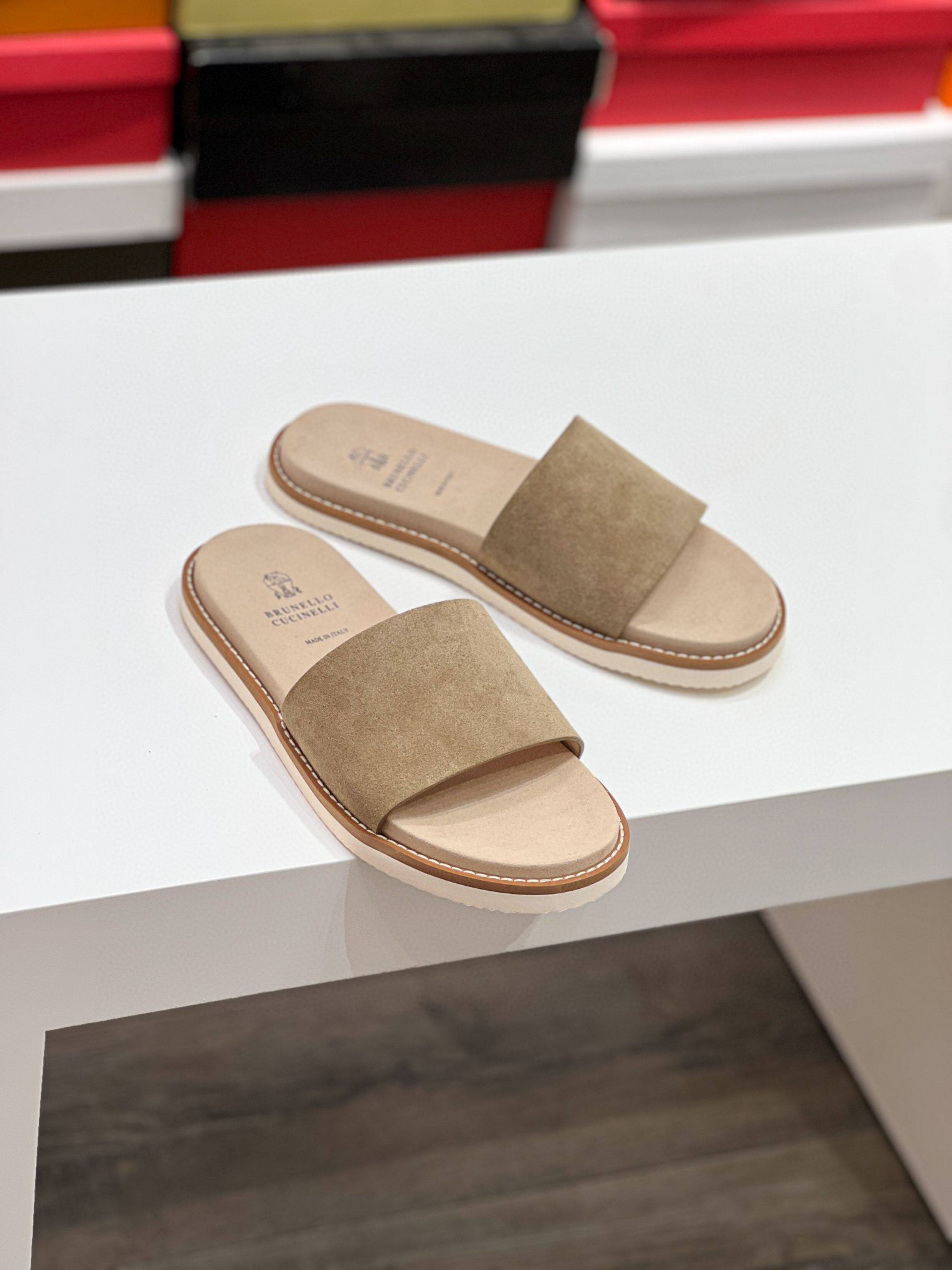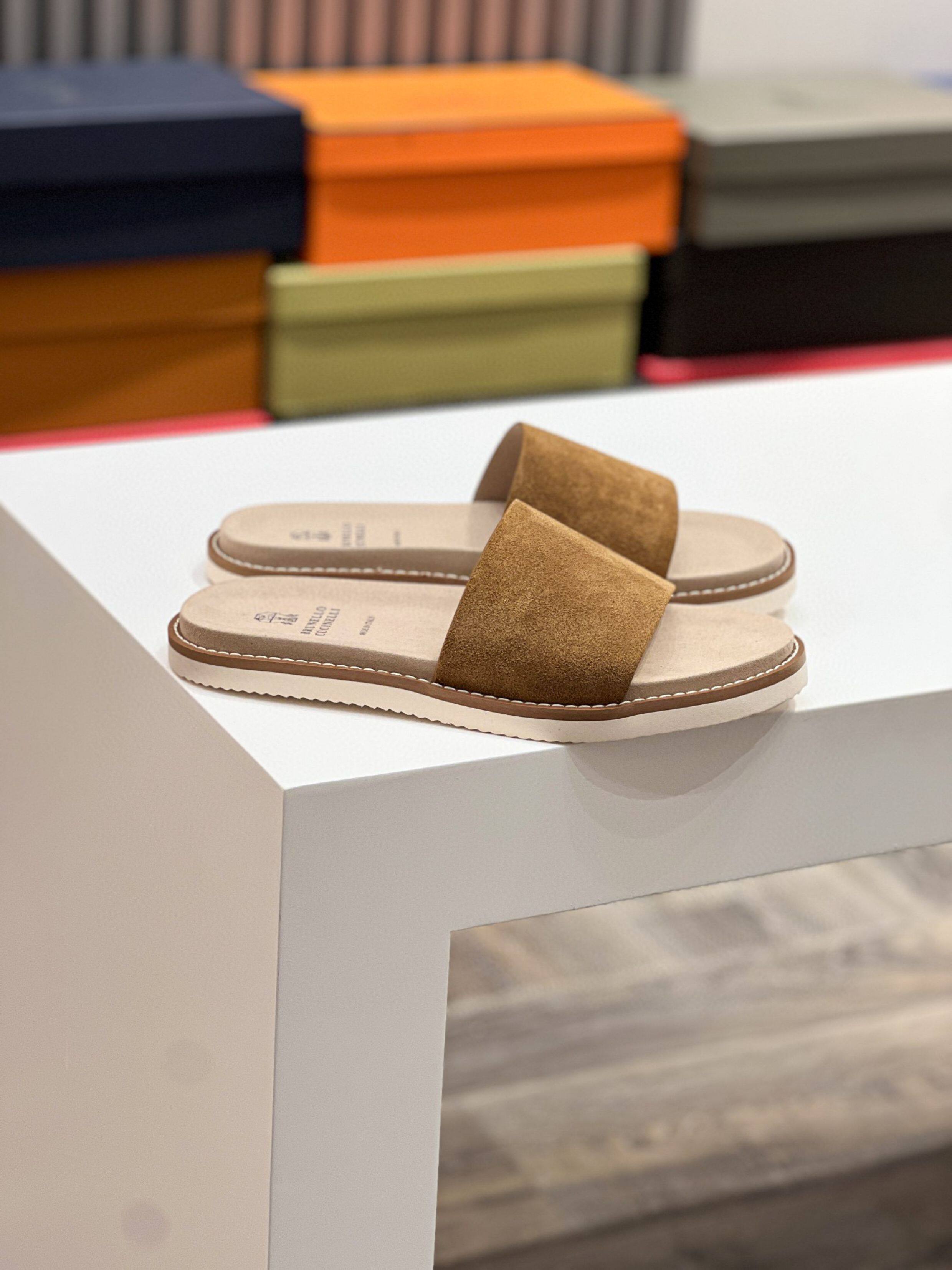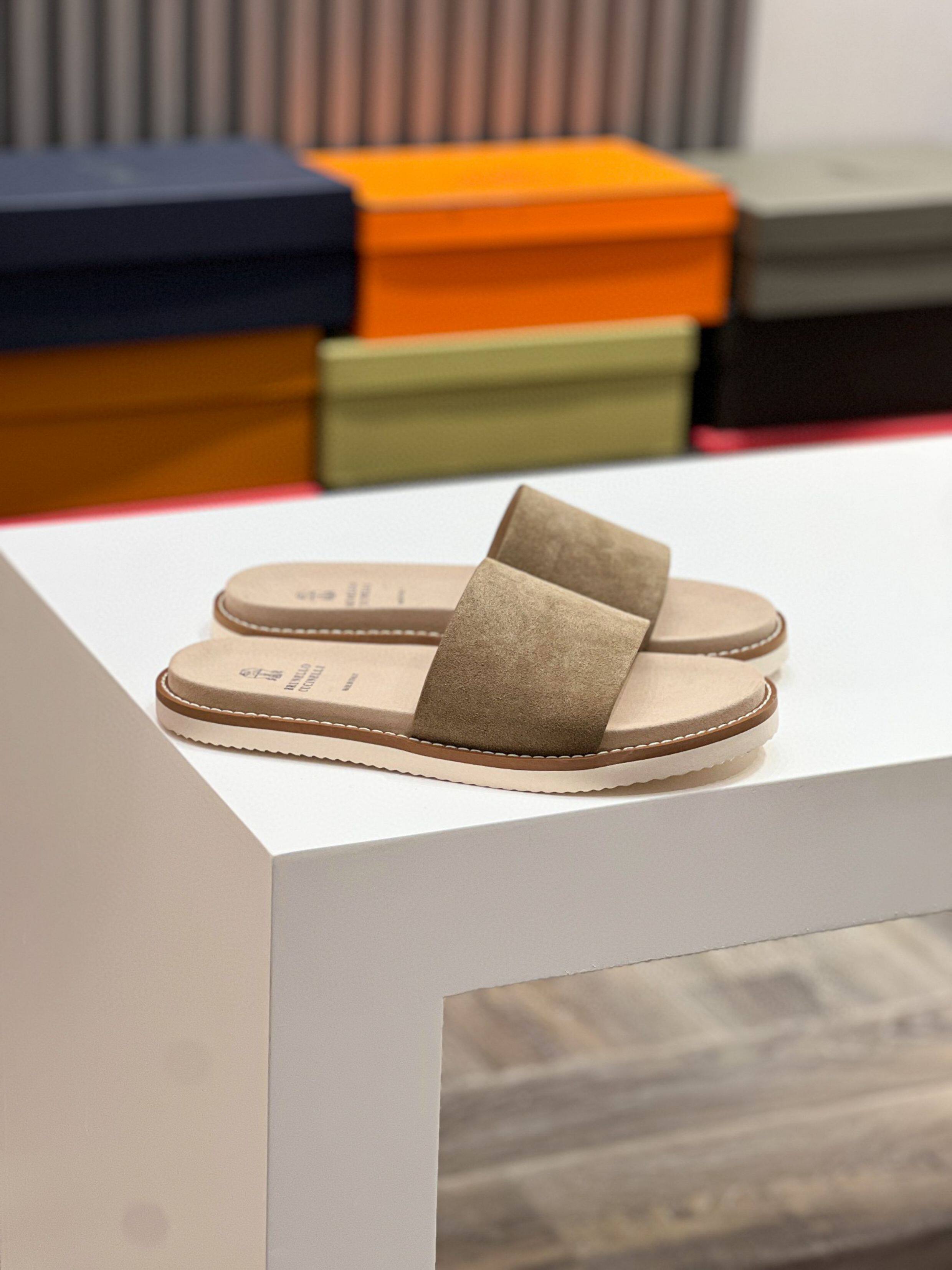 High-End Luxury European Bc Old Money Style Suede Cross Sandals Genuine Leather Versatile Casual Suede Non-Slip