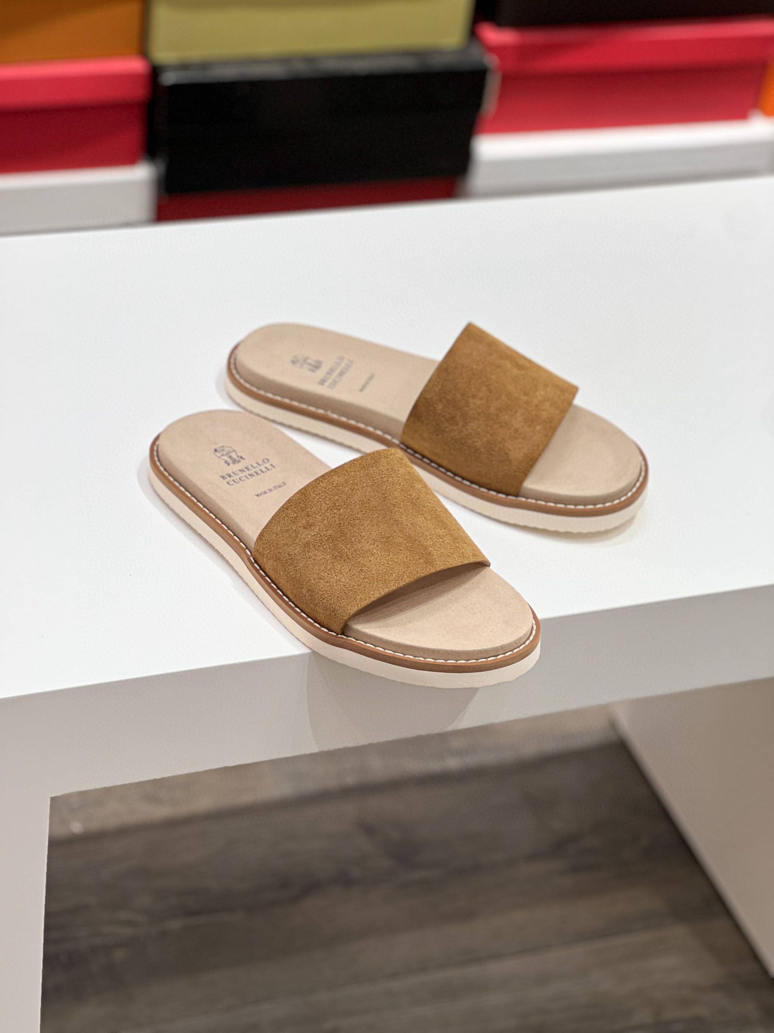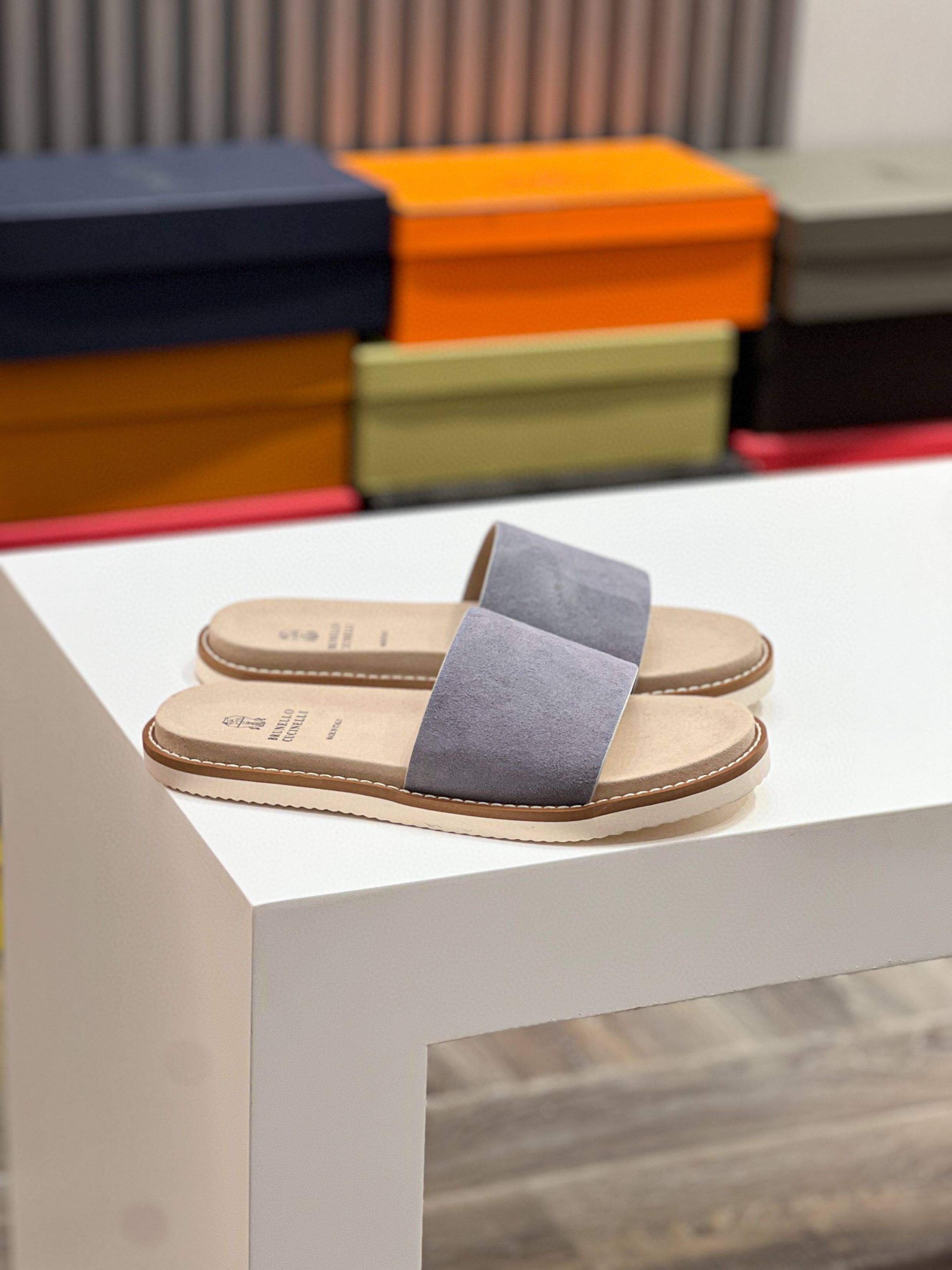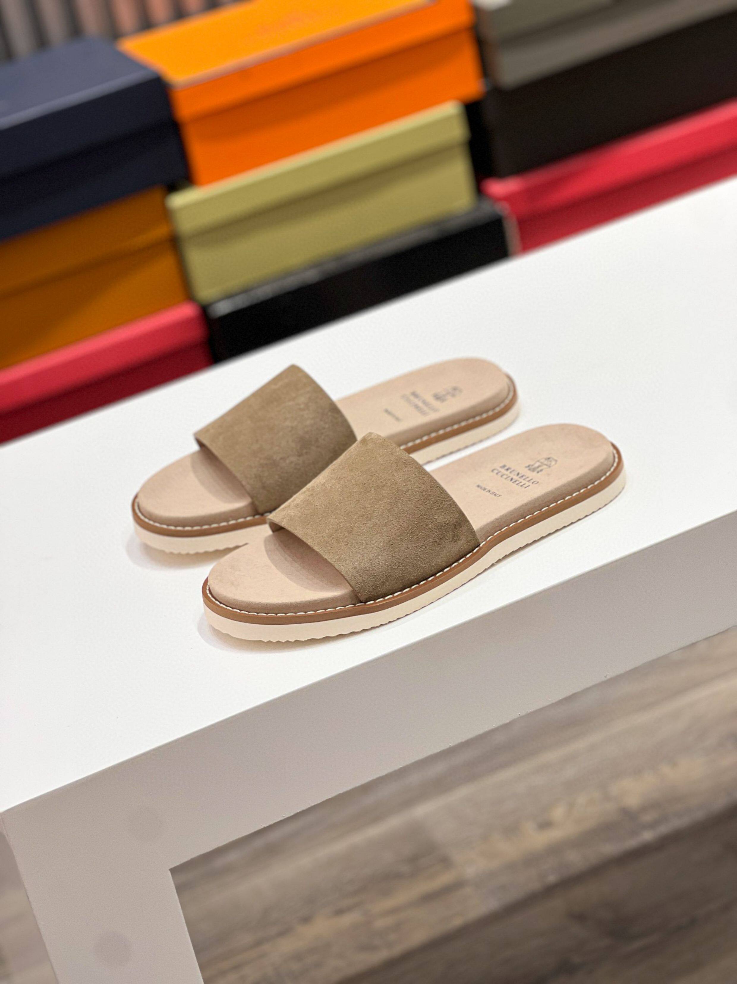 High-End Luxury European Bc Old Money Style Suede Cross Sandals Genuine Leather Versatile Casual Suede Non-Slip
