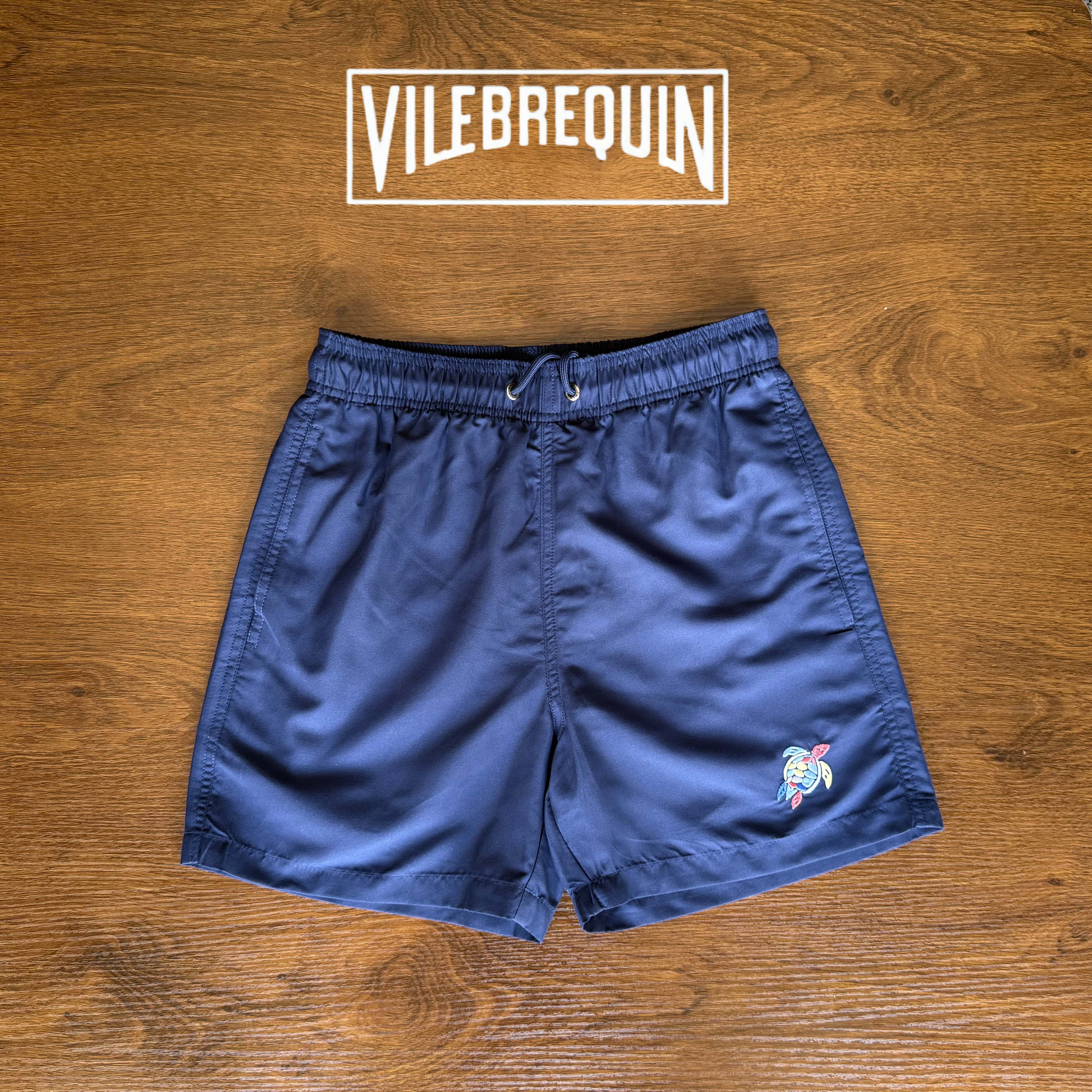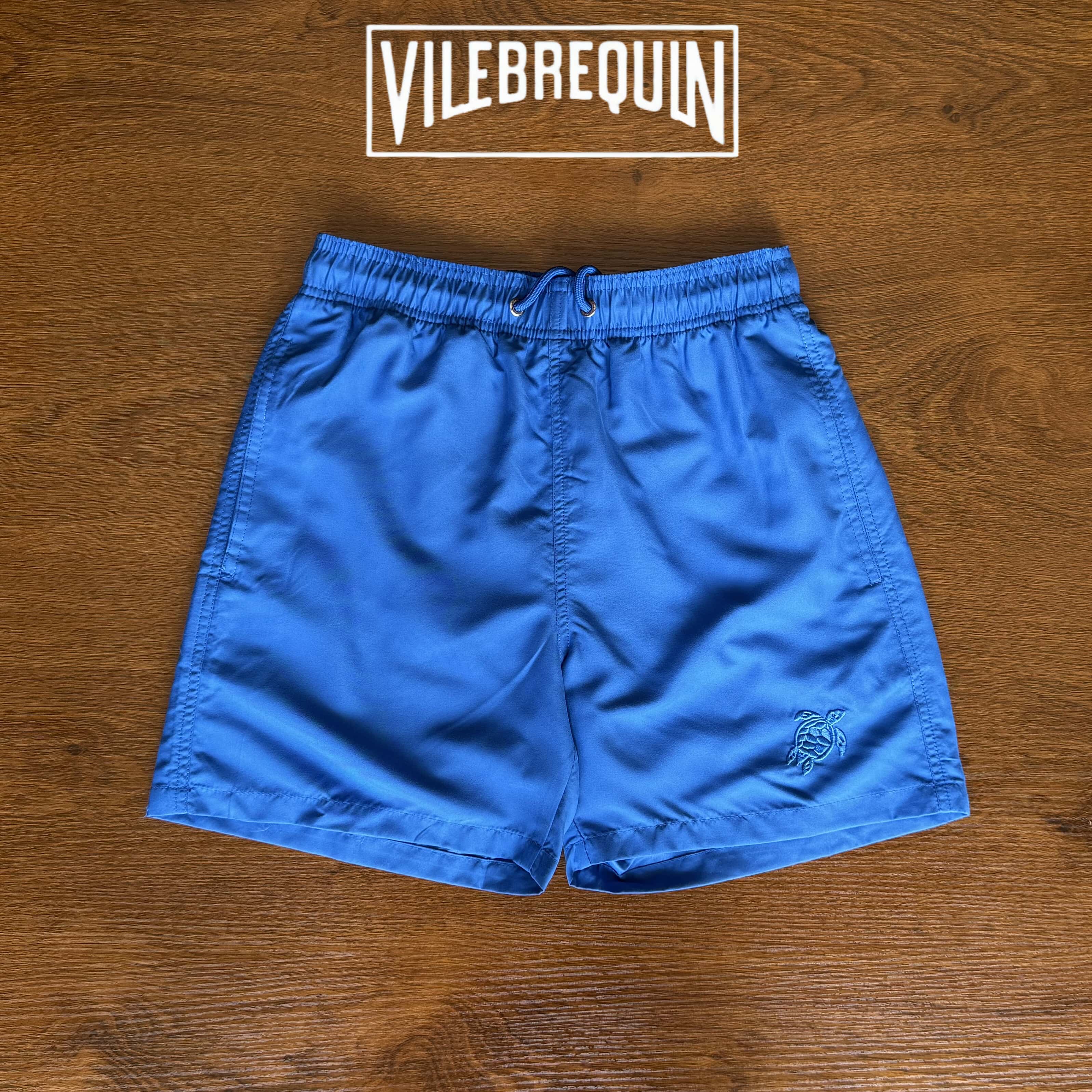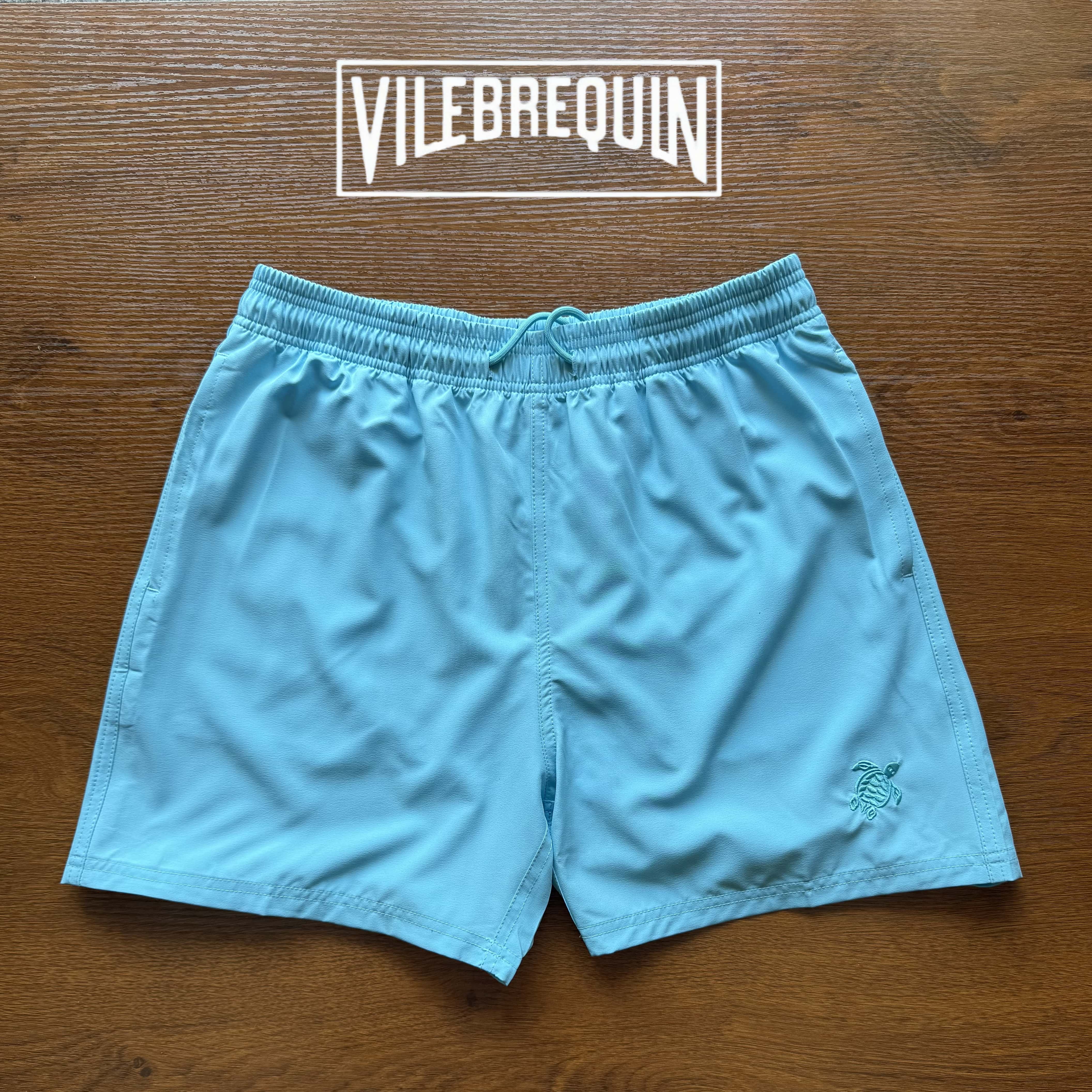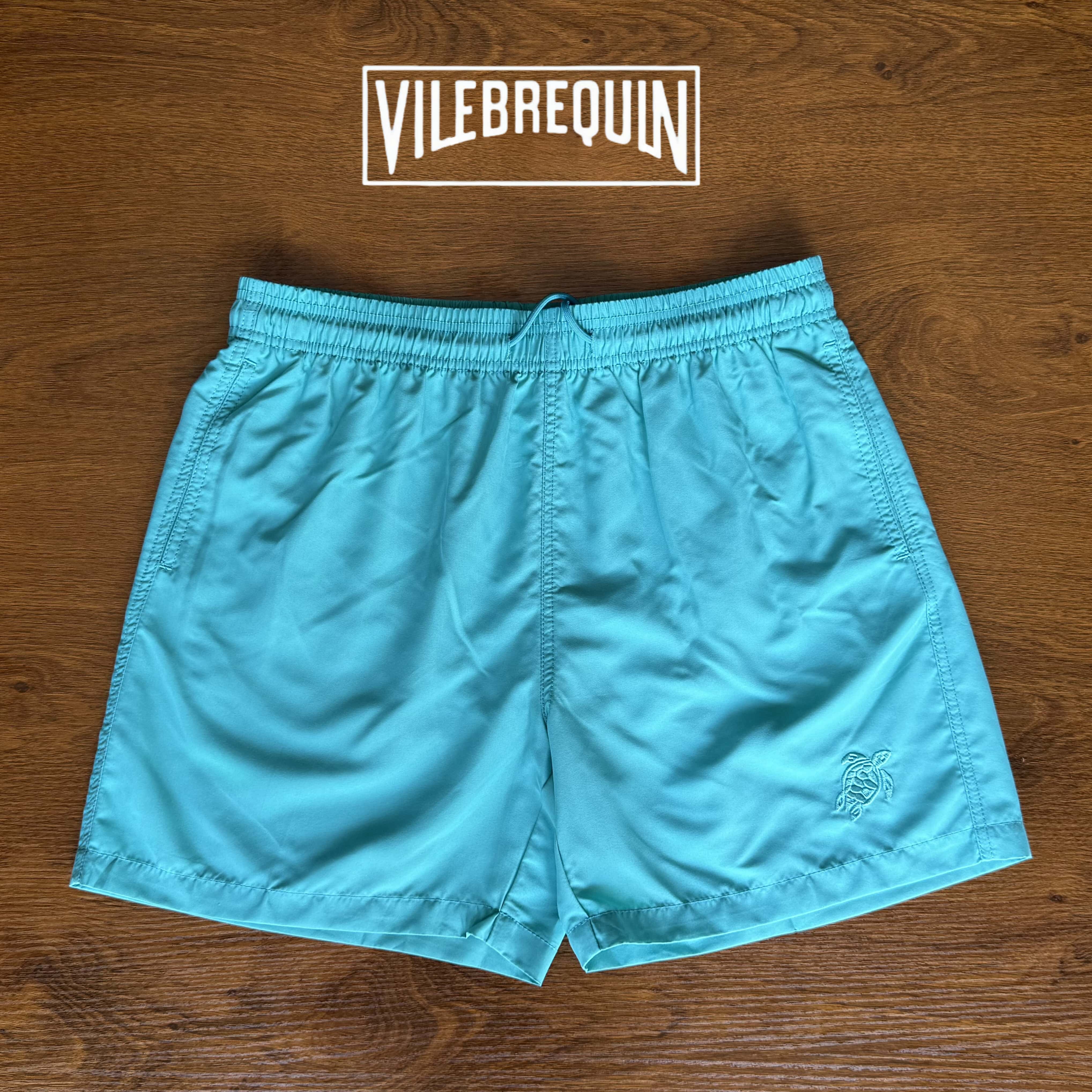 Vilebrequin Beach Shorts for Women, Couple's Beach Vacation, Turtle Solid Color Embroidered Shorts, Lined Loose Swim Trunks