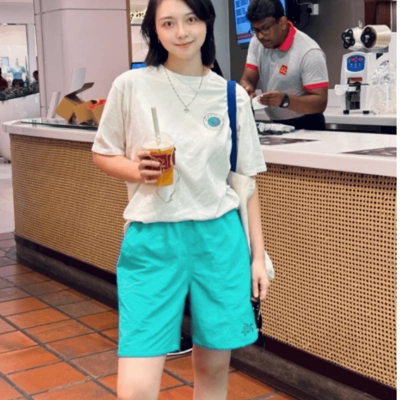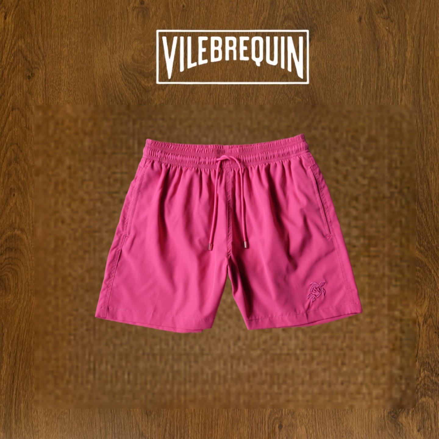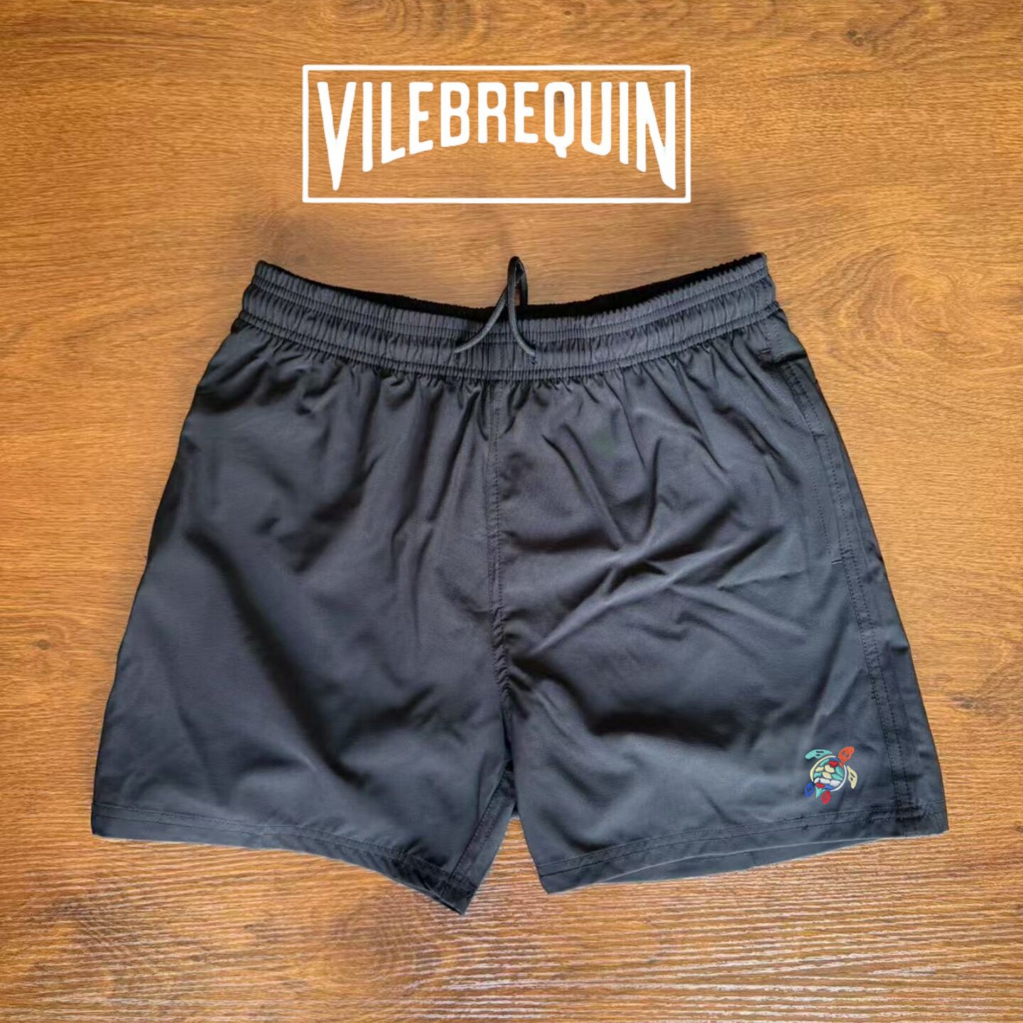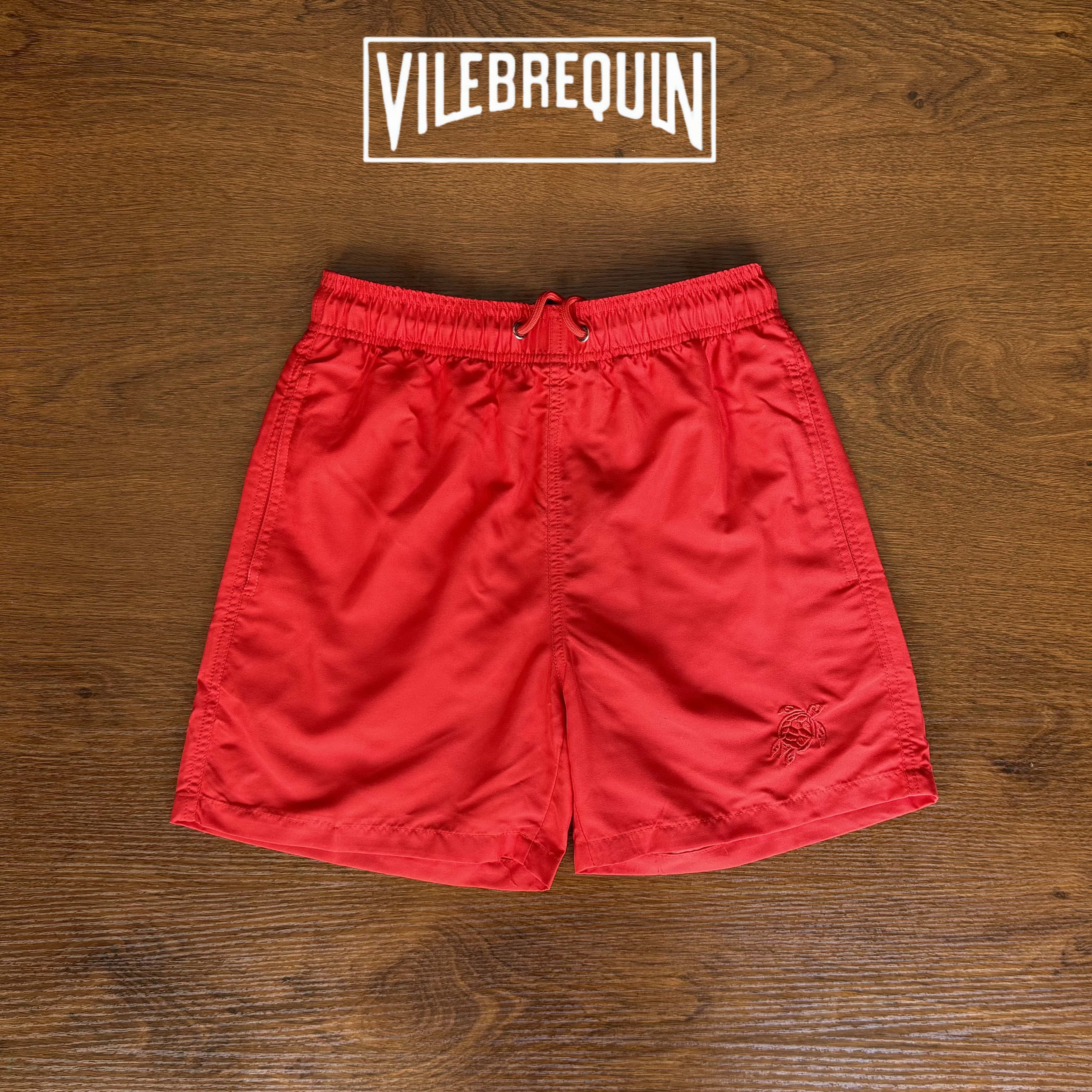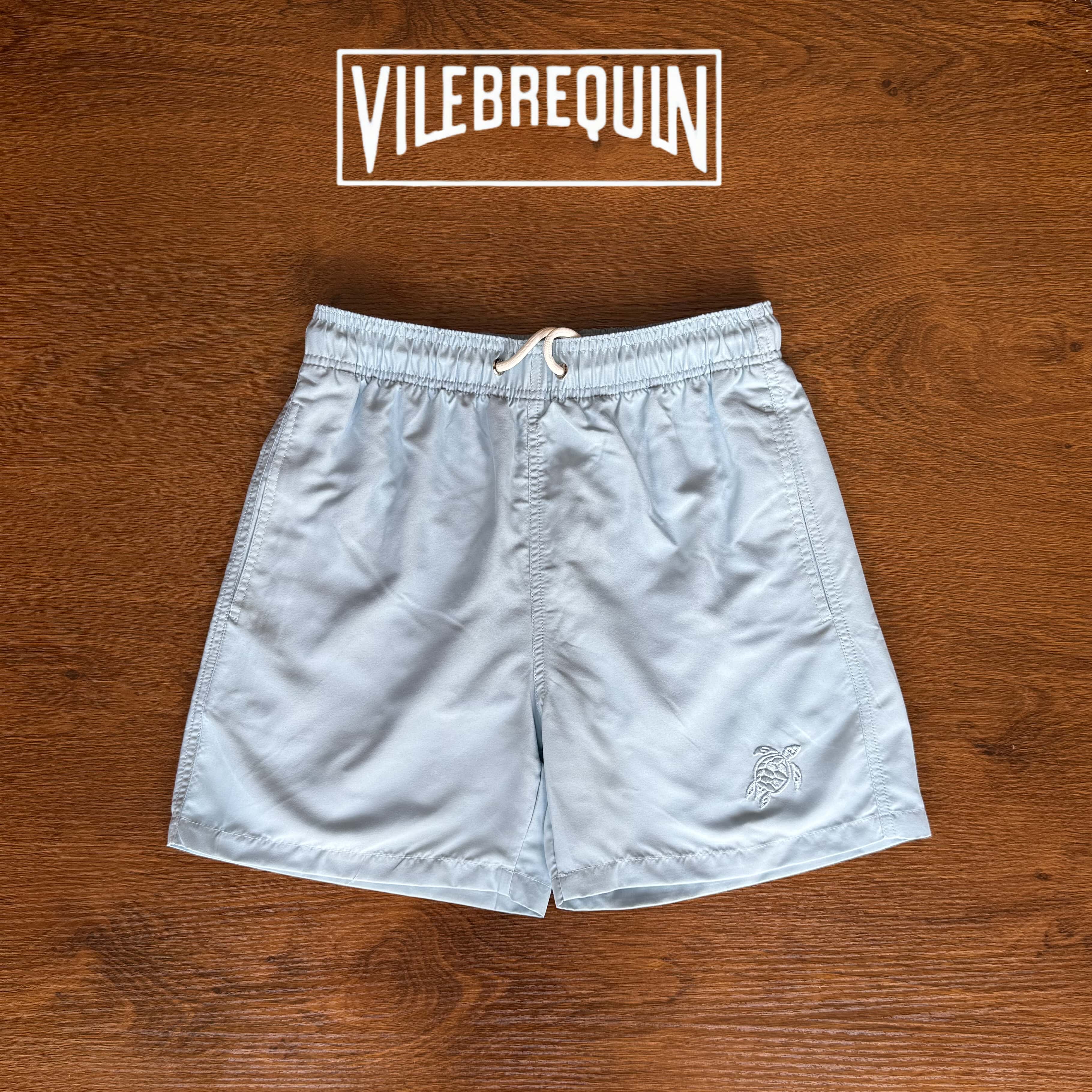 Vilebrequin Beach Shorts for Women, Couple's Beach Vacation, Turtle Solid Color Embroidered Shorts, Lined Loose Swim Trunks
