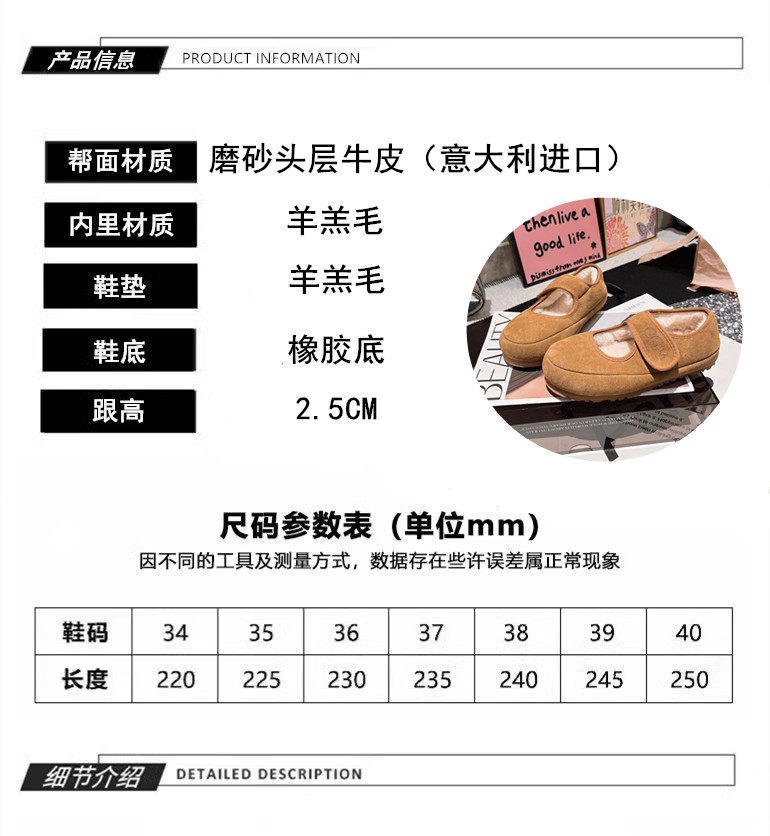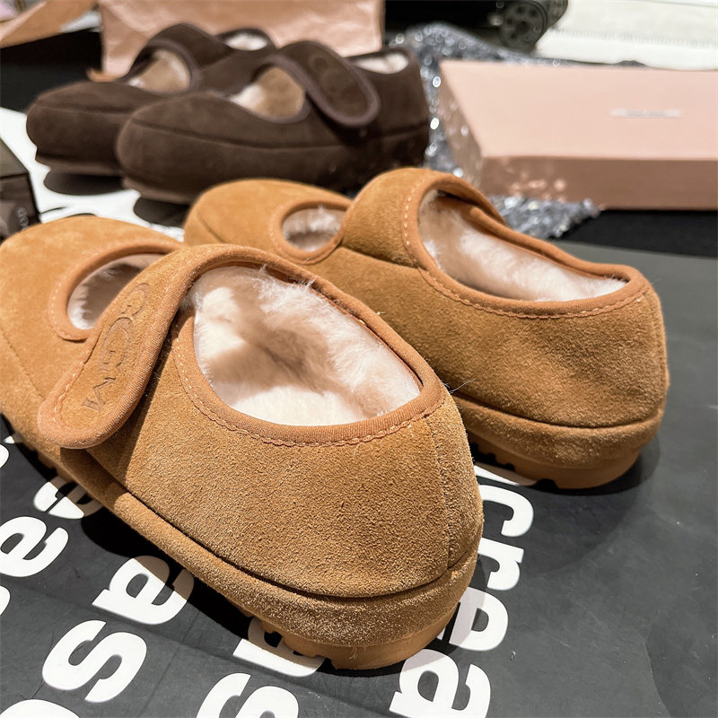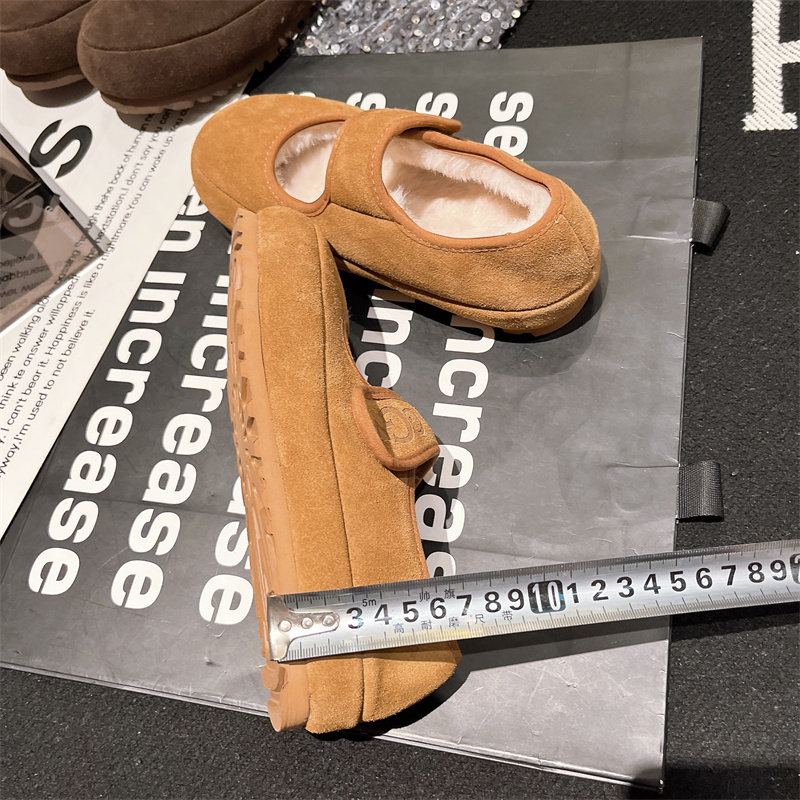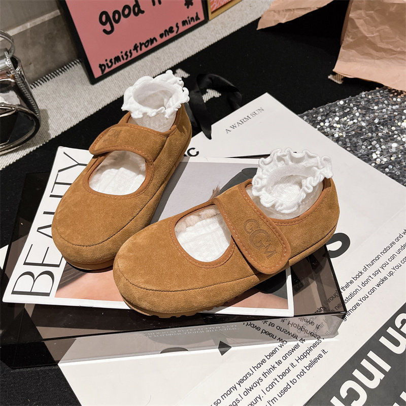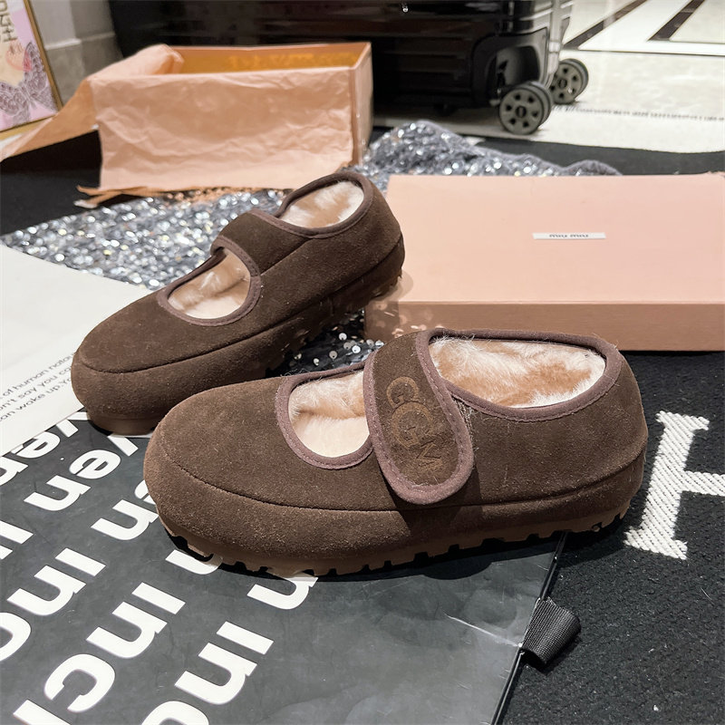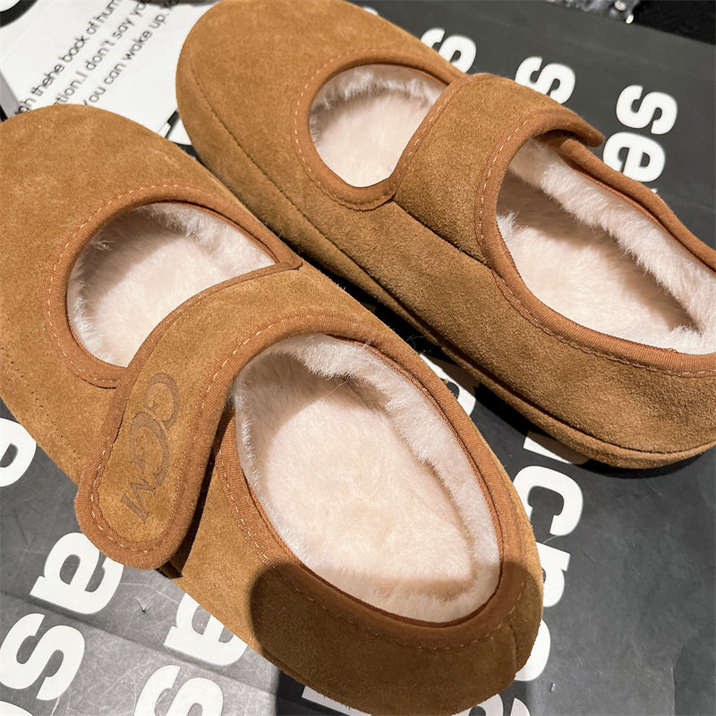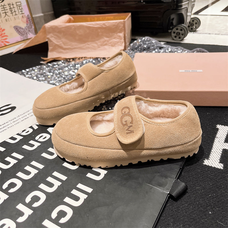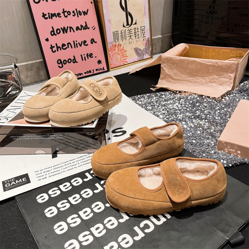Hong Kong Genuine Leather Flat Mary Jane Birkenstock Shoes, Furry Cotton Shoes for Women, 2025 Winter, Velcro Lazy Slip-On Casual Shoes