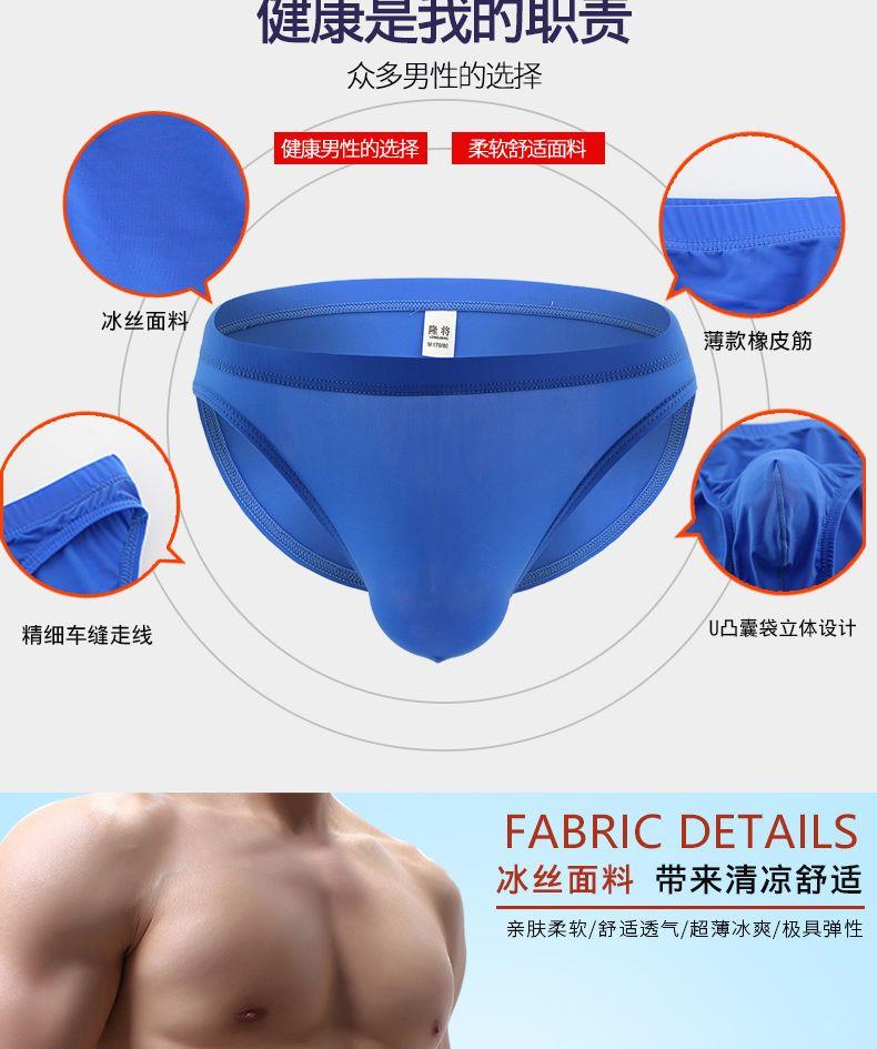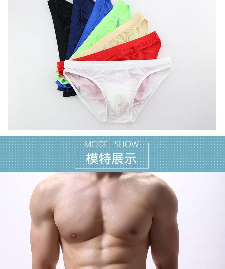 Men's Underwear Sexy Underwear Men's Student Breathable Semi-Transparent Ultra-Thin U-Convex Youth Mid-Waist Men's Briefs