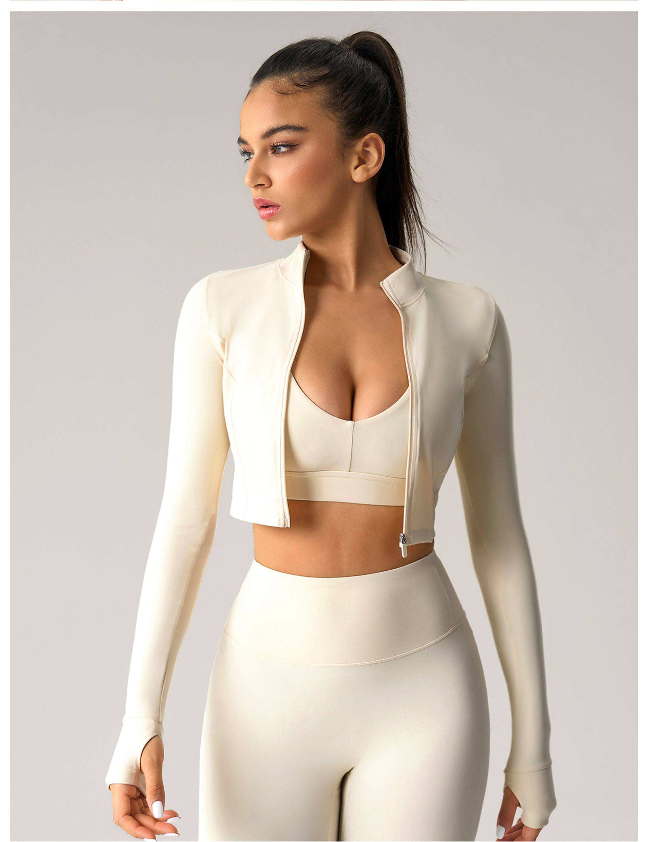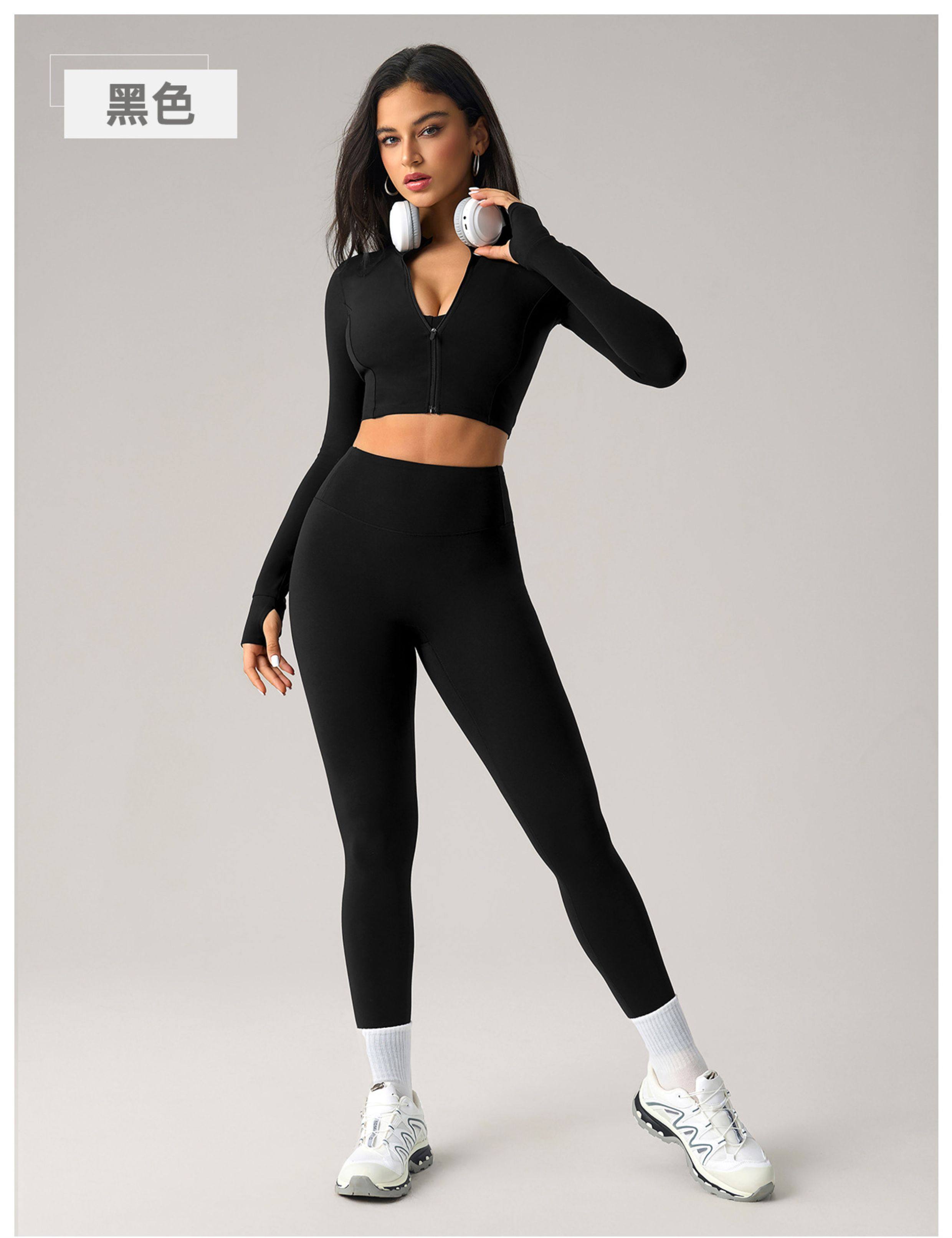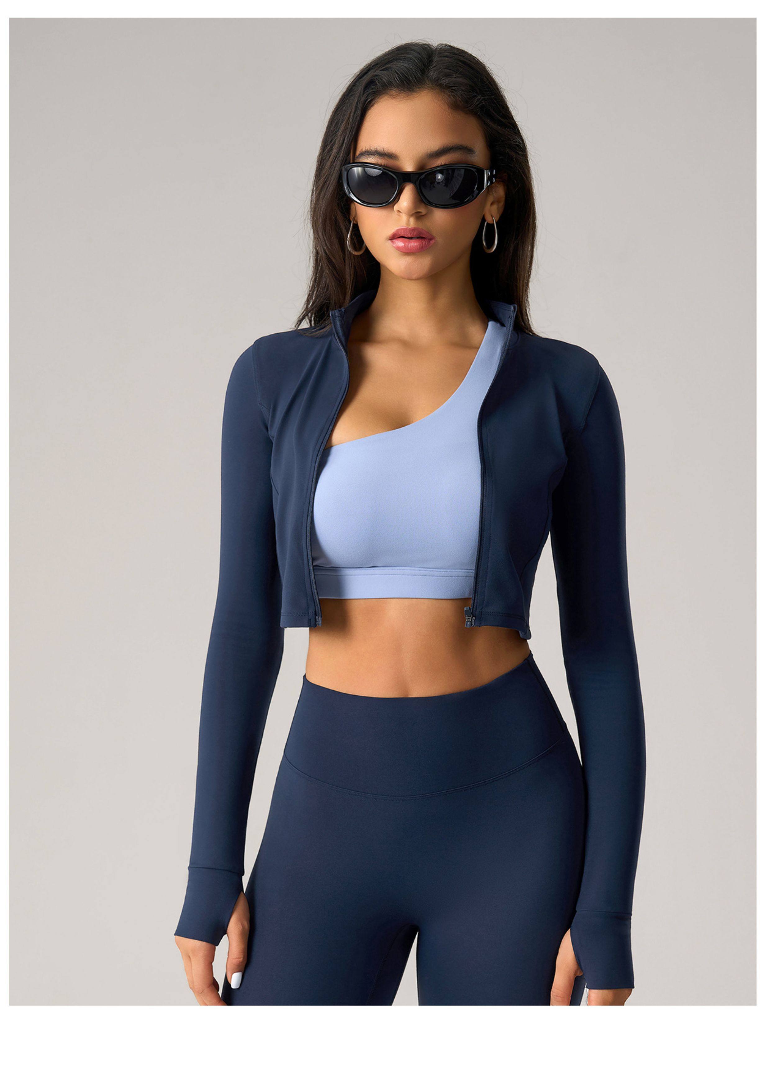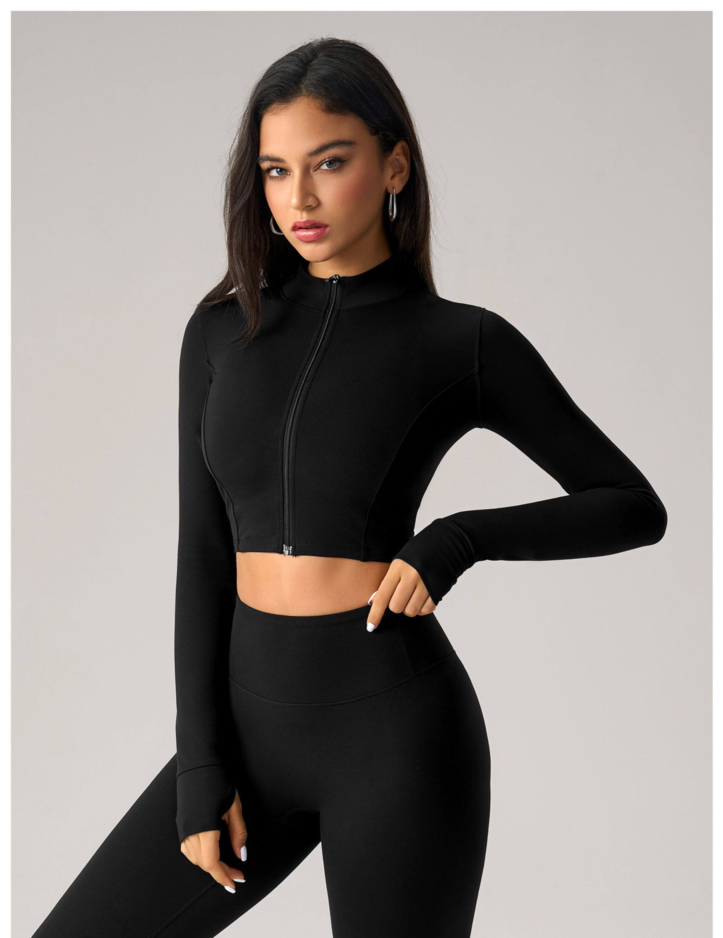 2025 Autumn and Winter European and American Tight-Fitting Short Zipper Sports Jacket for Women Outdoor Running Fitness Yoga Wear Long-Sleeved Top